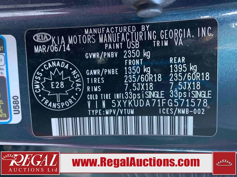 This 2015 KIA SORENTO EX 4D UTILITY AWD is powered by a 3.3L 6 cylinder gasoline engine and an automatic transmission. It is equipped with four wheel drive. The SUV has seats for 5 people. The vehicle has high value options including a sunroof, power seats, and heated seats. The odometer does not light up. The kms cannot ber verified The vehicle has some mechanical problems. The engine doesn't start and the vehicle is not drivable. It will have to be towed. (See Footnote 1) The body looks to be in fair condition overall. There are incidental chips on the front bumper, hood, left front fender, and right front fender. There is rust on the hood. There are minor scratches on the left front door, left rear door, left rear fender, rear bumper, right rear fender, right rear door, and right front door. There are very minor scratches on the left front fender. There are very minor chips in many areas around the body. The interior looks to be in good condition overall. The rear seats are dirty. The carpet is dirty. The windshield is cracked. All of the tires have lots of tread remaining. This SUV is being sold by a franchise dealership. The vehicle will be sold with the following declarations: Claims Total $5000 - $9999 (See Footnote 2), Dealership Trade-In (See Footnote 3), and Mechanical Problems (See Footnote 1). Footnotes: 1) We've identified some mechanical problems with the vehicle. However, the vehicle has not undergone a mechanical inspection and our findings are not to be considered a complete evaluation of the vehicle's mechanical condition. Review our Buyer Protection Policy to see how Regal Auctions protects you from undisclosed mechanical problems. 2) The vehicle's total recorded insurance claims history is between $5,000 - $9,999. This is the amount of money that was paid out by an insurance company for repairs to cover claims against the vehicle's insurance policy. This information is provided by CarFax. 3) This vehicle is being sold on behalf of a franchise dealership. Franchise Dealerships are automotive sales companies who are directly connected to an automotive manufacturer like Ford, Tesla, Honda, BMW, or similar. Regal Auctions Ltd. makes no guarantee or warranty, either express or implied, with respect to the data provided in this report. The information has been provided from the consignor and from sources generally believed to be reliable, however the accuracy of this information cannot be guaranteed by Regal Auctions.