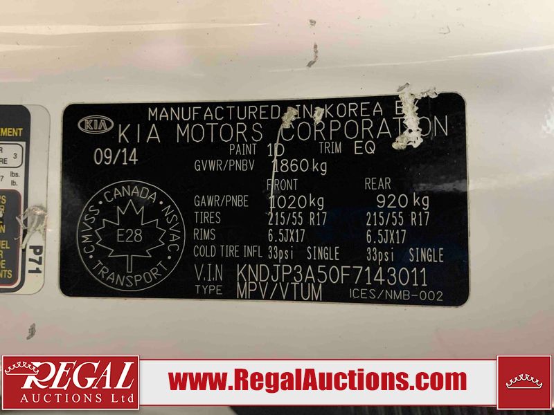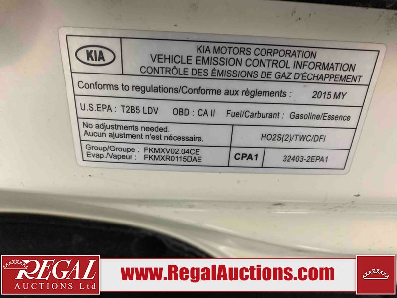 This 2015 KIA SOUL EX40 4D WAGON is powered by a 2.0 liter 4-cylinder gasoline engine and an automatic transmission. It is a two-wheel drive model. The SUV has seats for 5 people. The mileage is average considering the SUV's age. The vehicle has high-value options, including heated seats and a backup camera. The body looks to be in fair condition overall. The front bumper is cracked. There are incidental chips on the front bumper, hood, left rear door, and right rear door. There is dent damage on the left front door and right front fender. There are scratches on the left rear fender, rear bumper, and right front door. There are chips in many areas around the body. There is dent damage on the left rear door. The interior looks to be in good condition overall. There are some stains on the driver and passenger seats. The windshield looks to be in good condition. All of the tires have lots of tread remaining. This SUV is being sold by an automotive broker. The vehicle will be sold with the following declarations: Out of Province (See Footnote 1), Out of Province - AB OVERRIDE (See Footnote 2), and Out of Province - BC (See Footnote 3). Footnotes: 1) The vehicle's last jurisdiction of registration is not Alberta. The purchaser must have the vehicle undergo and pass an Out of Province inspection before it can be registered in Alberta. 2) Out of province inspection for registering the vehicle in Alberta has been completed. 3) The vehicle's last registered jurisdiction is British Columbia. The purchaser must have the vehicle undergo and pass an Out of Province inspection before it can be registered in Alberta. Regal Auctions Ltd. makes no guarantee or warranty, either express or implied, with respect to the data provided in this report. The information has been provided from the consignor and from sources generally believed to be reliable, however the accuracy of this information cannot be guaranteed by Regal Auctions.