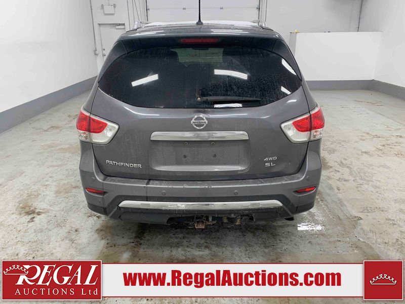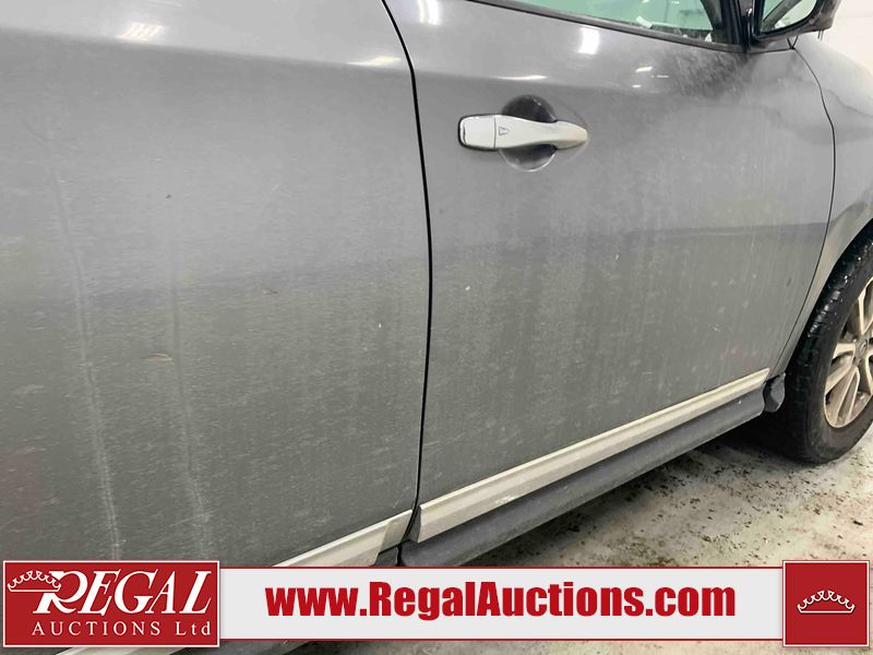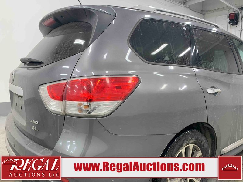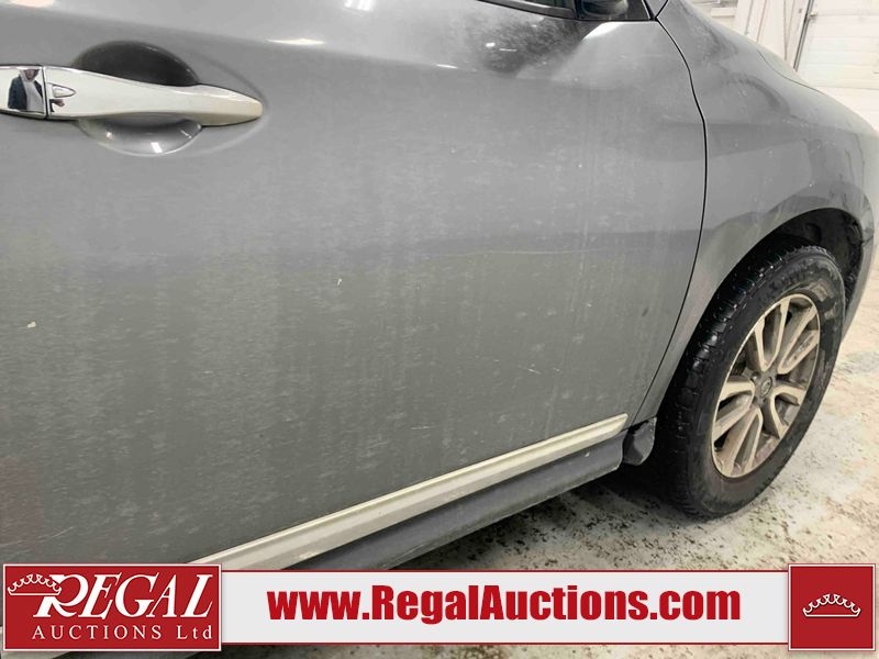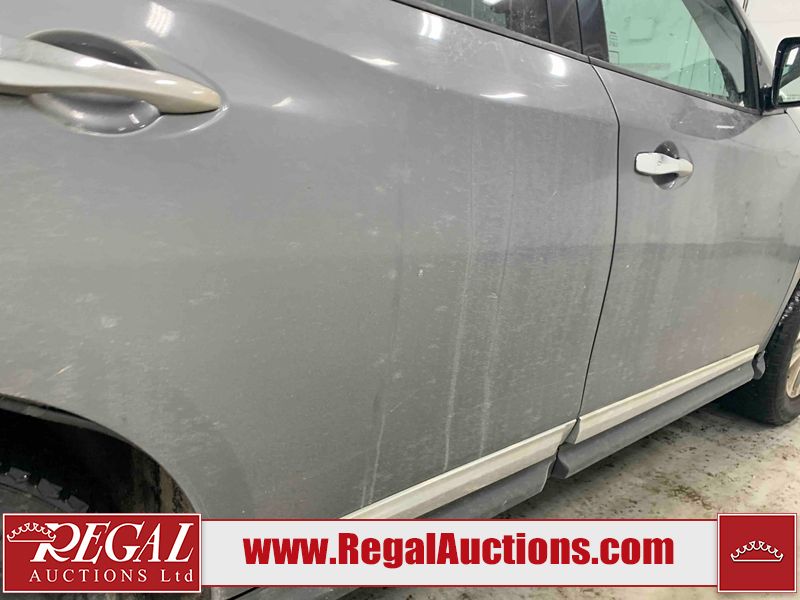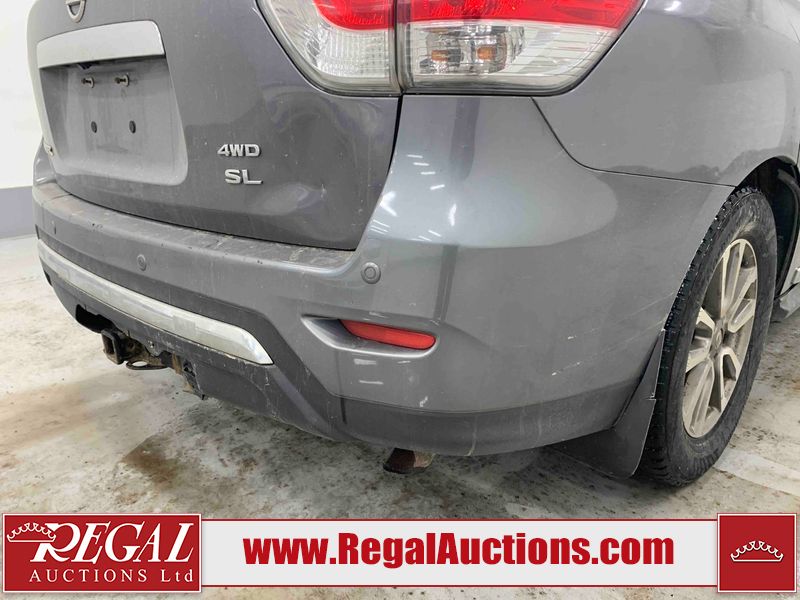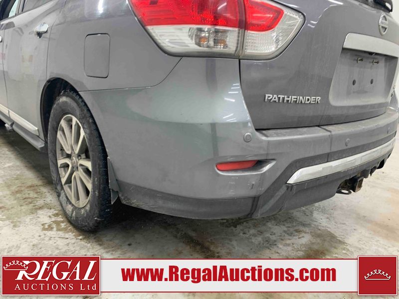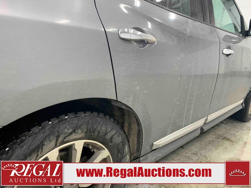 This 2015 NISSAN PATHFINDER 4D UTILITY is powered by a 3.5L V6 gasoline engine and an automatic transmission. It is equipped with four-wheel drive. The SUV has seats for 5 people. The SUV has high mileage for its age. The vehicle has high-value options including a sunroof, leather upholstery, power seats, heated seats, navigation, a backup camera, and a power liftgate. The Check Engine and Stability Control lights are on. The body looks to be in rough condition overall. There are minor chips on the front bumper, grille, hood, roof, left front fender, left front door, left rear door, left rear fender, rear bumper, rear door, right rear fender, right rear door, right front door, and right front fender. There are minor scratches on the front bumper, hood, roof, left front fender, left front door, left rear door, left rear fender, rear bumper, rear door, right rear fender, right rear door, right front door, and right front fender. There is dent damage on the left front door, left rear fender, rear door, and right rear fender. The headlight lenses are hazy. The interior looks to be in fair condition overall. The driver seat is torn. The dashboard, passenger seat, rear seats, and doors are worn. The roofliner is dirty. The windshield is damaged. The front tires are nearly bald and should be replaced. The rear tires are worn. This SUV is being sold by an automotive broker. The vehicle will be sold with the following declarations: Out of Province (See Footnote 1) and Out of Province - BC (See Footnote 2). Footnotes: 1) The vehicle's last jurisdiction of registration is not Alberta. The purchaser must have the vehicle undergo and pass an Out of Province inspection before it can be registered in Alberta. 2) The vehicle's last registered jurisdiction is British Columbia. The purchaser must have the vehicle undergo and pass an Out of Province inspection before it can be registered in Alberta. Regal Auctions Ltd. makes no guarantee or warranty, either express or implied, with respect to the data provided in this report. The information has been provided from the consignor and from sources generally believed to be reliable, however the accuracy of this information cannot be guaranteed by Regal Auctions.
