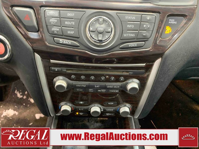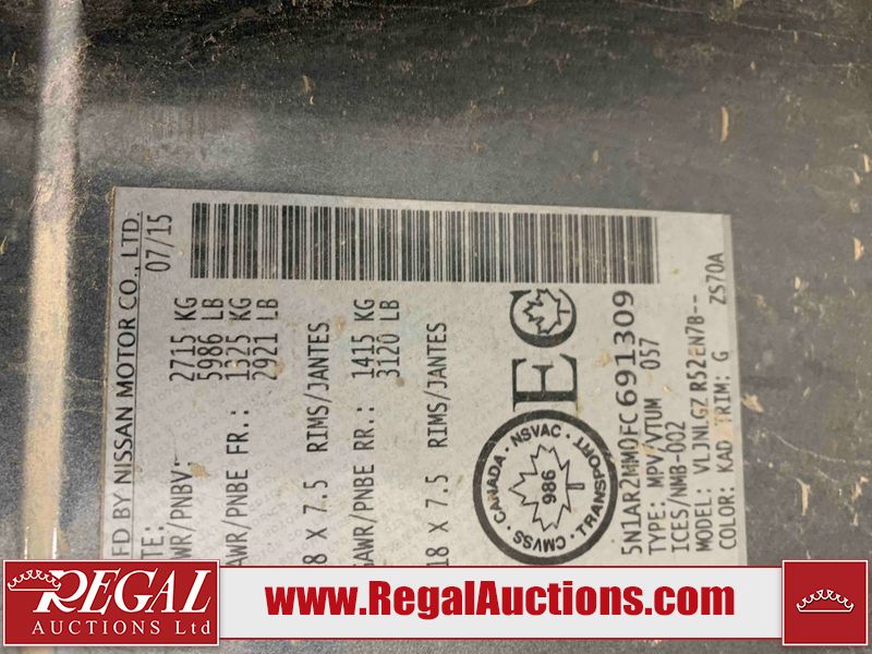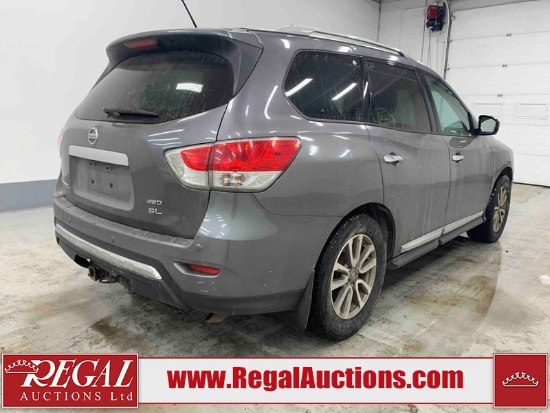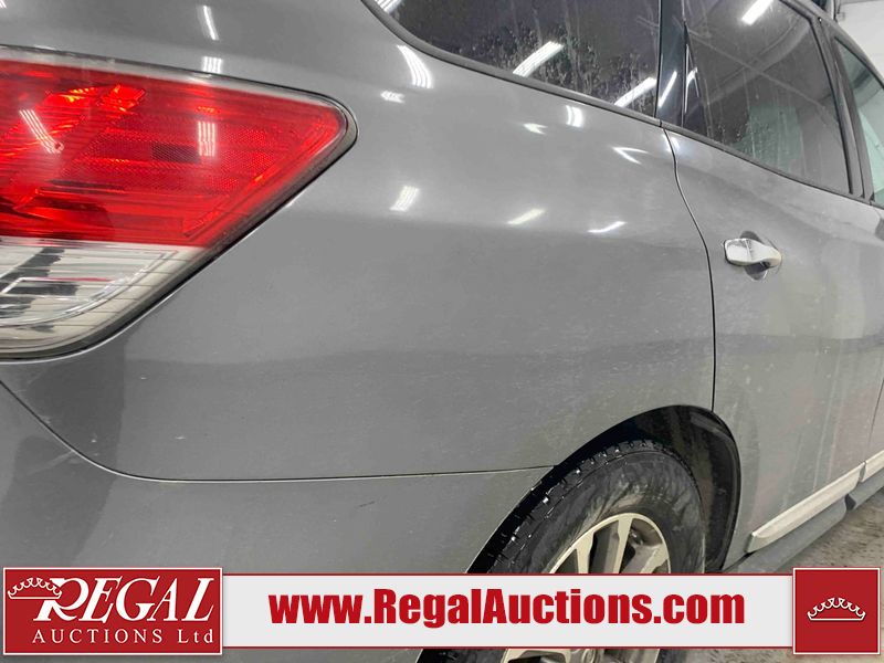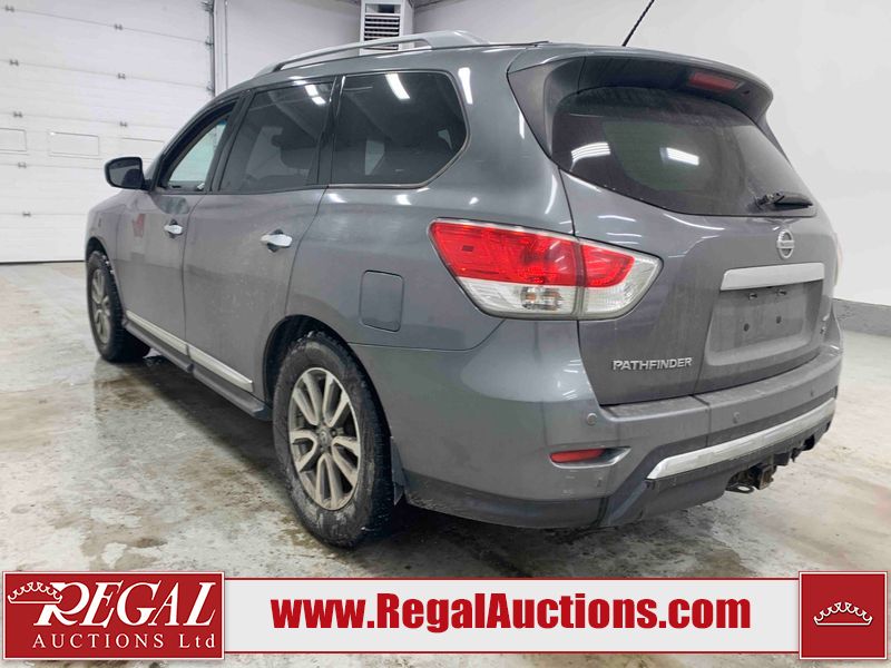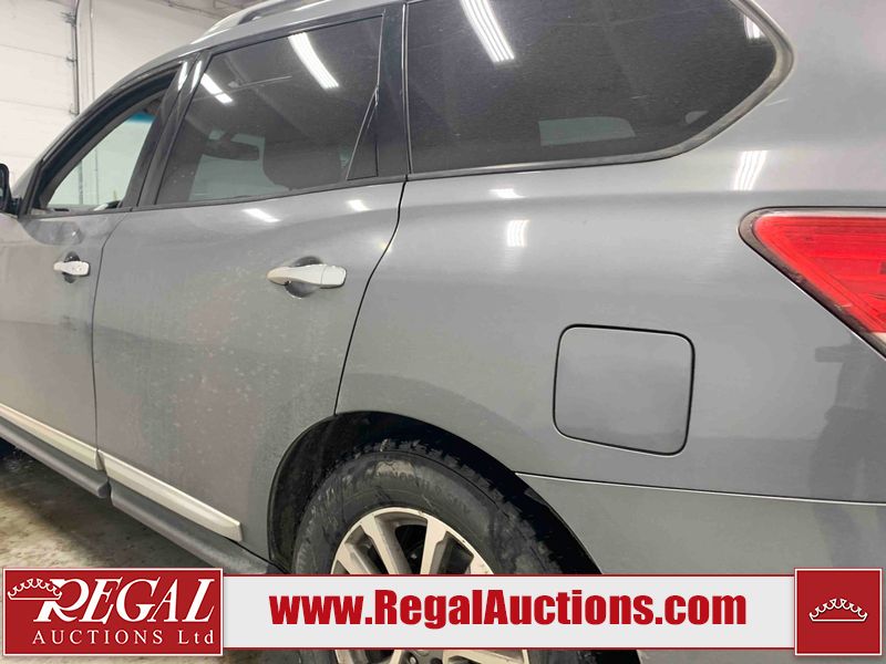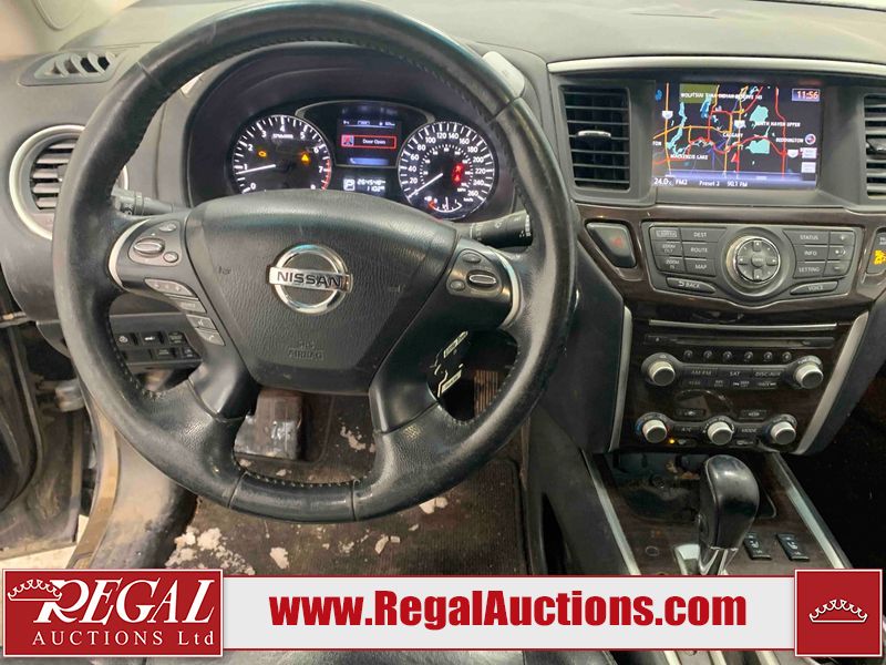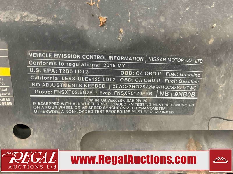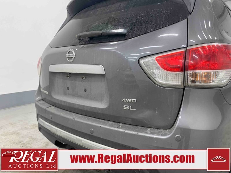 This 2015 NISSAN PATHFINDER 4D UTILITY is powered by a 3.5L V6 gasoline engine and an automatic transmission. It is equipped with four-wheel drive. The SUV has seats for 5 people. The SUV has high mileage for its age. The vehicle has high-value options including a sunroof, leather upholstery, power seats, heated seats, navigation, a backup camera, and a power liftgate. The Check Engine and Stability Control lights are on. The body looks to be in rough condition overall. There are minor chips on the front bumper, grille, hood, roof, left front fender, left front door, left rear door, left rear fender, rear bumper, rear door, right rear fender, right rear door, right front door, and right front fender. There are minor scratches on the front bumper, hood, roof, left front fender, left front door, left rear door, left rear fender, rear bumper, rear door, right rear fender, right rear door, right front door, and right front fender. There is dent damage on the left front door, left rear fender, rear door, and right rear fender. The headlight lenses are hazy. The interior looks to be in fair condition overall. The driver seat is torn. The dashboard, passenger seat, rear seats, and doors are worn. The roofliner is dirty. The windshield is damaged. The front tires are nearly bald and should be replaced. The rear tires are worn. This SUV is being sold by an automotive broker. The vehicle will be sold with the following declarations: Out of Province (See Footnote 1) and Out of Province - BC (See Footnote 2). Footnotes: 1) The vehicle's last jurisdiction of registration is not Alberta. The purchaser must have the vehicle undergo and pass an Out of Province inspection before it can be registered in Alberta. 2) The vehicle's last registered jurisdiction is British Columbia. The purchaser must have the vehicle undergo and pass an Out of Province inspection before it can be registered in Alberta. Regal Auctions Ltd. makes no guarantee or warranty, either express or implied, with respect to the data provided in this report. The information has been provided from the consignor and from sources generally believed to be reliable, however the accuracy of this information cannot be guaranteed by Regal Auctions.