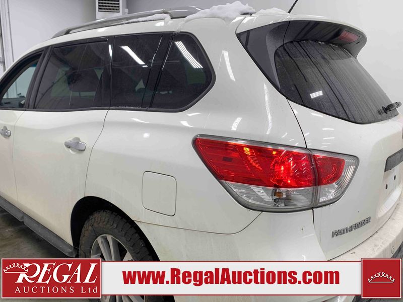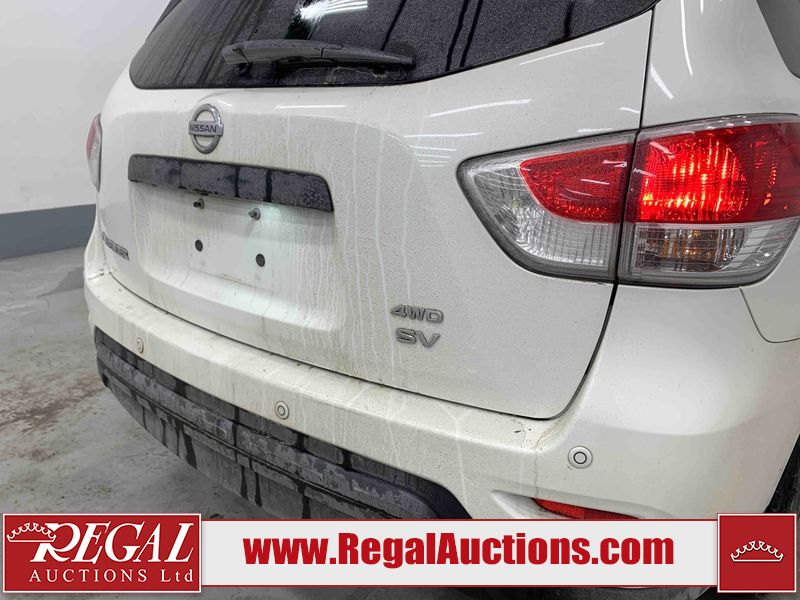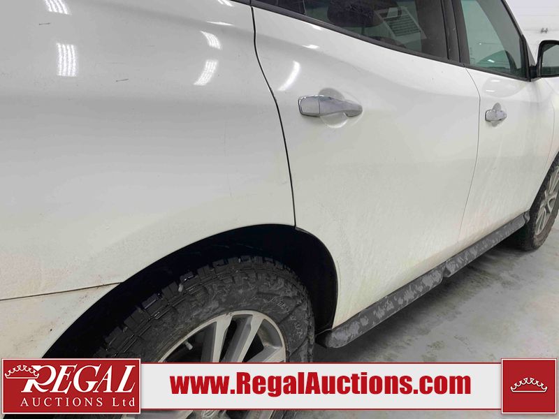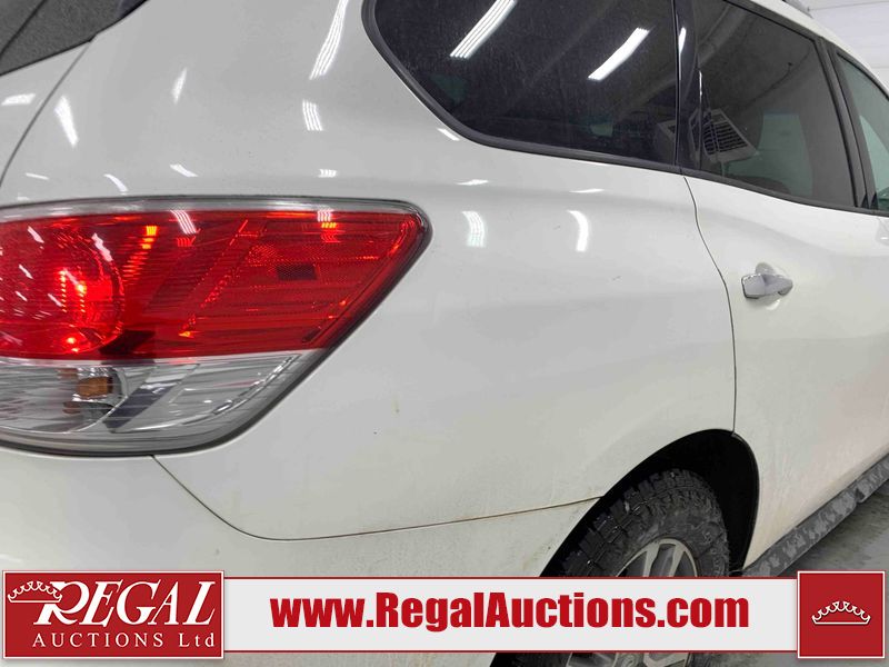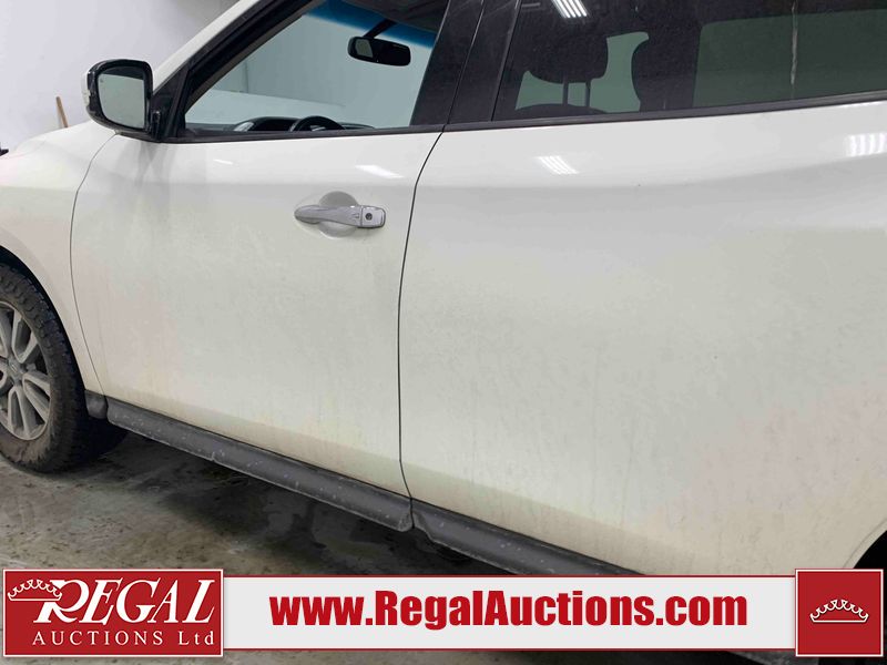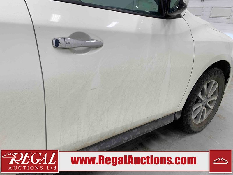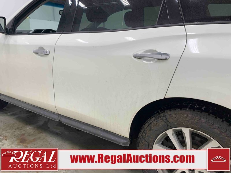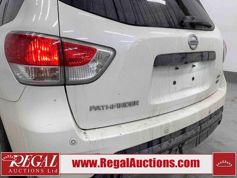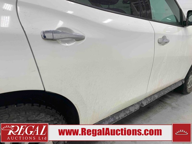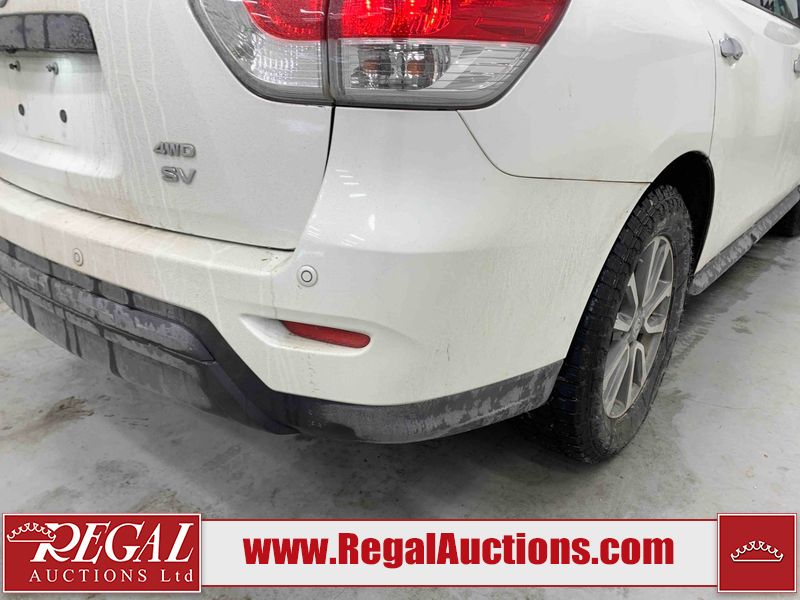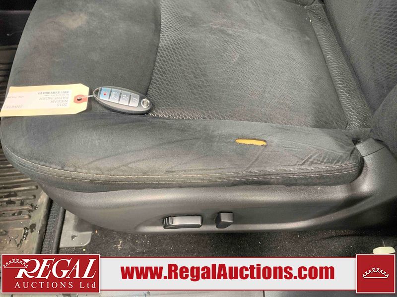 This 2015 NISSAN PATHFINDER SV 4D UTILITY 4WD is powered by a 3.5L V6 gasoline engine and an automatic transmission. It is equipped with four-wheel drive. The SUV has seats for 7 people. The SUV has low mileage for its age. The vehicle has high-value options including power seats, heated seats, navigation, a backup camera, and a power liftgate. The Stability Control light is on. The body looks to be in fair condition overall. There are slight chips on the front bumper and rear bumper. There are scratches on the front bumper, hood, roof, left front fender, left front door, left rear door, left rear fender, rear bumper, rear door, right rear fender, right rear door, right front door, and right front fender. There is incidental dent damage on the right rear fender. There are very minor chips in many areas around the body. The interior looks to be in fair condition overall. The driver's seat is torn. The passenger seat and rear seats are stained. The dashboard and doors are dirty. The roofliner is dirty. The carpet is dirty. The windshield looks to be in good condition. All of the tires have lots of tread remaining. This SUV is being sold by an automotive broker. The vehicle will be sold with the following declarations: Claims Total $3000 - $4999 (See Footnote 1) and Out of Province - BC (See Footnote 2). Footnotes: 1) The vehicle's total recorded insurance claims history is between $3,000 - $4,999. This is the amount of money that was paid out by an insurance company for repairs to cover claims against the vehicle's insurance policy. This information is provided by CarFax. 2) The vehicle's last registered jurisdiction is British Columbia. The purchaser must have the vehicle undergo and pass an Out of Province inspection before it can be registered in Alberta. Regal Auctions Ltd. makes no guarantee or warranty, either express or implied, with respect to the data provided in this report. The information has been provided from the consignor and from sources generally believed to be reliable, however the accuracy of this information cannot be guaranteed by Regal Auctions.