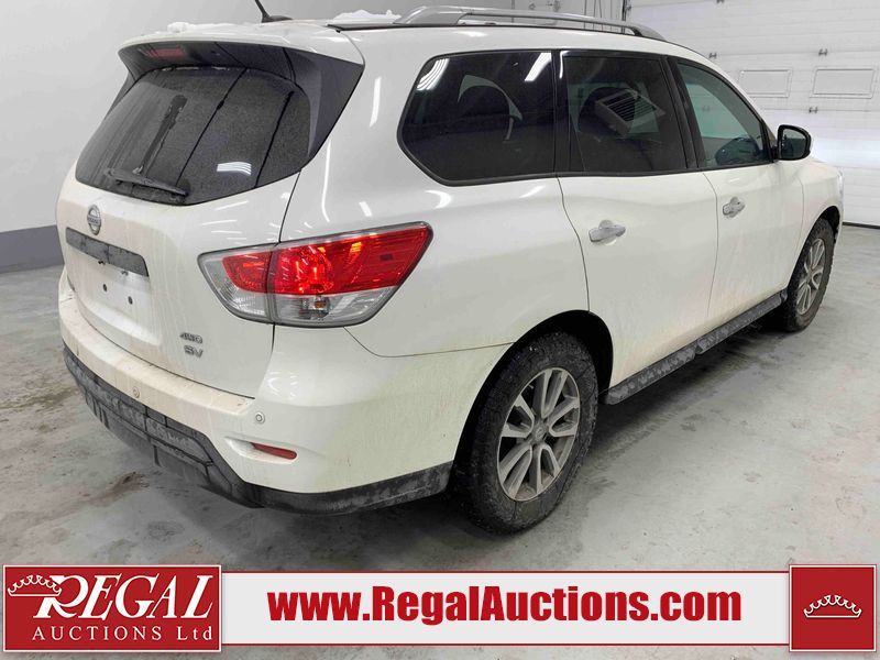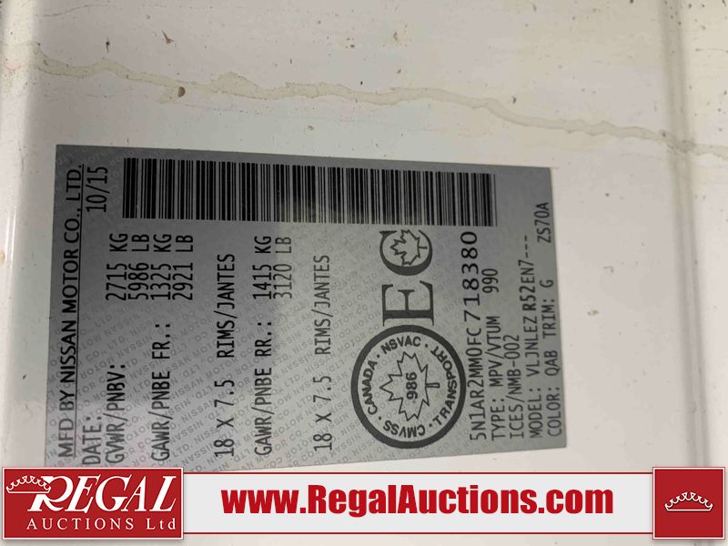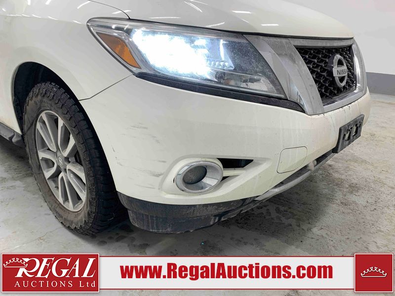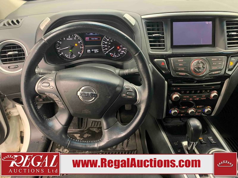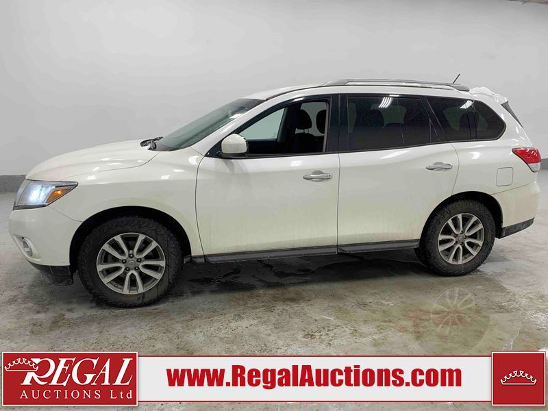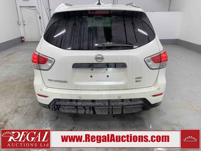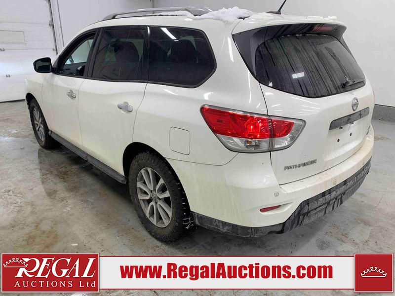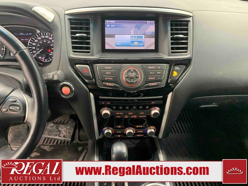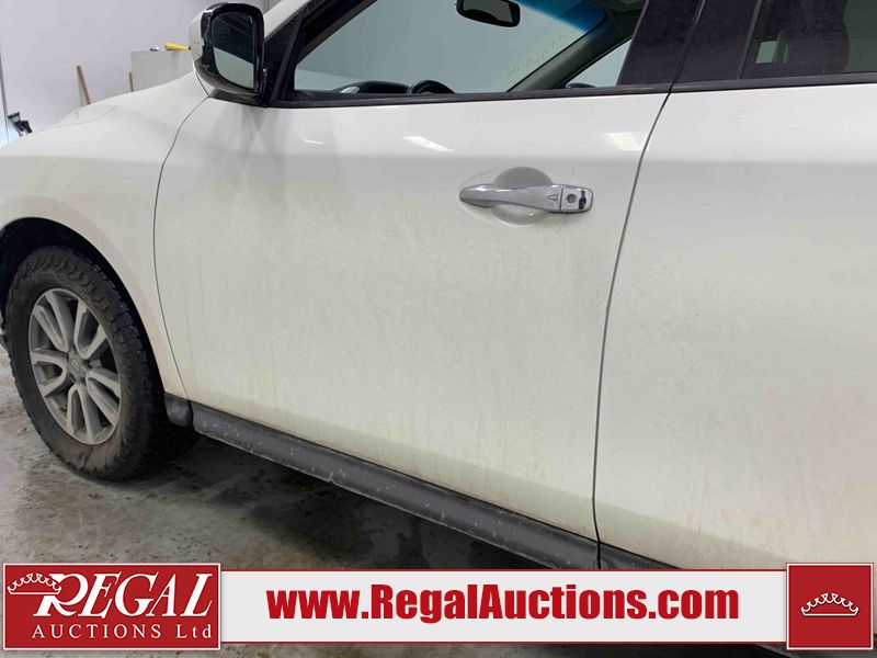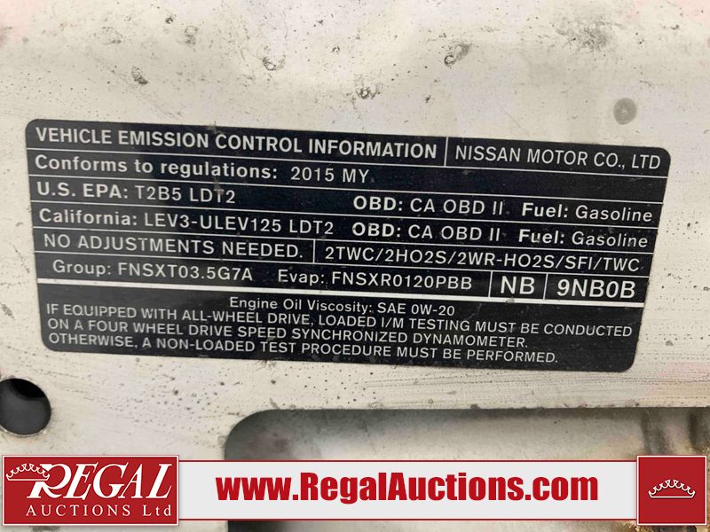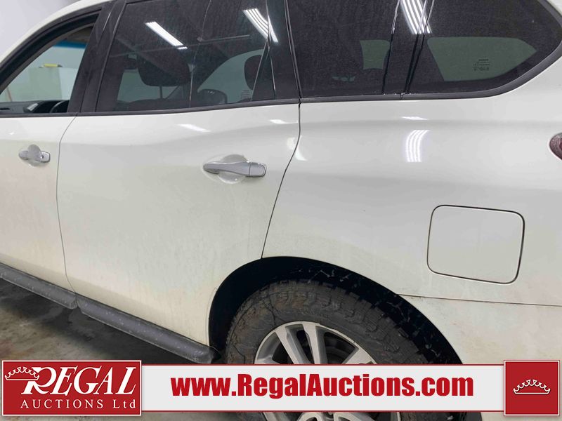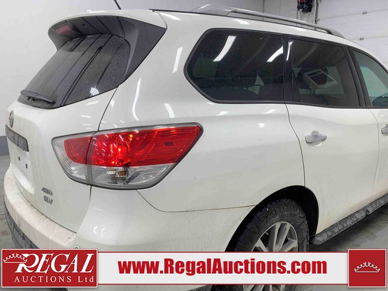 This 2015 NISSAN PATHFINDER SV 4D UTILITY 4WD is powered by a 3.5L V6 gasoline engine and an automatic transmission. It is equipped with four-wheel drive. The SUV has seats for 7 people. The SUV has low mileage for its age. The vehicle has high-value options including power seats, heated seats, navigation, a backup camera, and a power liftgate. The Stability Control light is on. The body looks to be in fair condition overall. There are slight chips on the front bumper and rear bumper. There are scratches on the front bumper, hood, roof, left front fender, left front door, left rear door, left rear fender, rear bumper, rear door, right rear fender, right rear door, right front door, and right front fender. There is incidental dent damage on the right rear fender. There are very minor chips in many areas around the body. The interior looks to be in fair condition overall. The driver's seat is torn. The passenger seat and rear seats are stained. The dashboard and doors are dirty. The roofliner is dirty. The carpet is dirty. The windshield looks to be in good condition. All of the tires have lots of tread remaining. This SUV is being sold by an automotive broker. The vehicle will be sold with the following declarations: Claims Total $3000 - $4999 (See Footnote 1) and Out of Province - BC (See Footnote 2). Footnotes: 1) The vehicle's total recorded insurance claims history is between $3,000 - $4,999. This is the amount of money that was paid out by an insurance company for repairs to cover claims against the vehicle's insurance policy. This information is provided by CarFax. 2) The vehicle's last registered jurisdiction is British Columbia. The purchaser must have the vehicle undergo and pass an Out of Province inspection before it can be registered in Alberta. Regal Auctions Ltd. makes no guarantee or warranty, either express or implied, with respect to the data provided in this report. The information has been provided from the consignor and from sources generally believed to be reliable, however the accuracy of this information cannot be guaranteed by Regal Auctions.