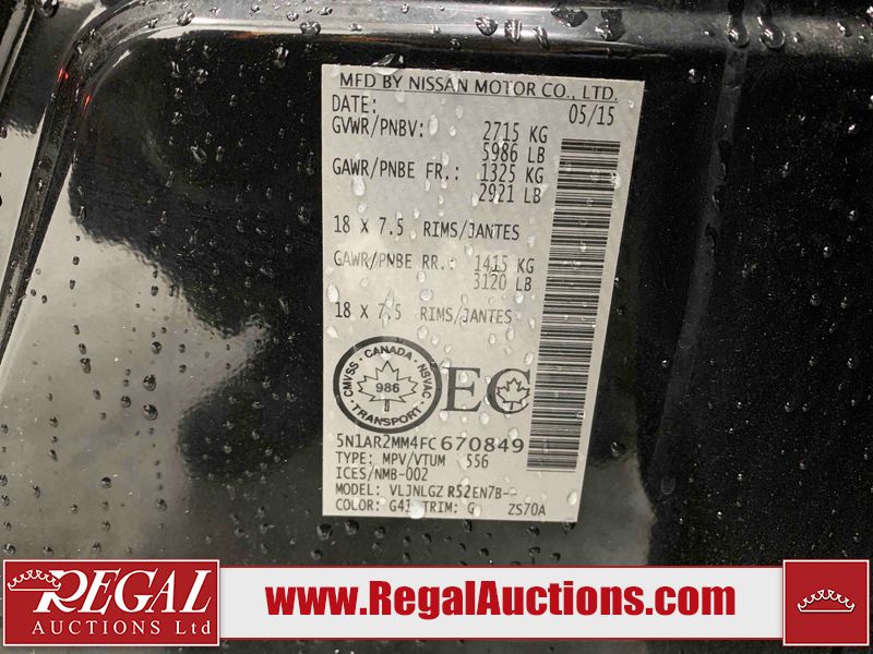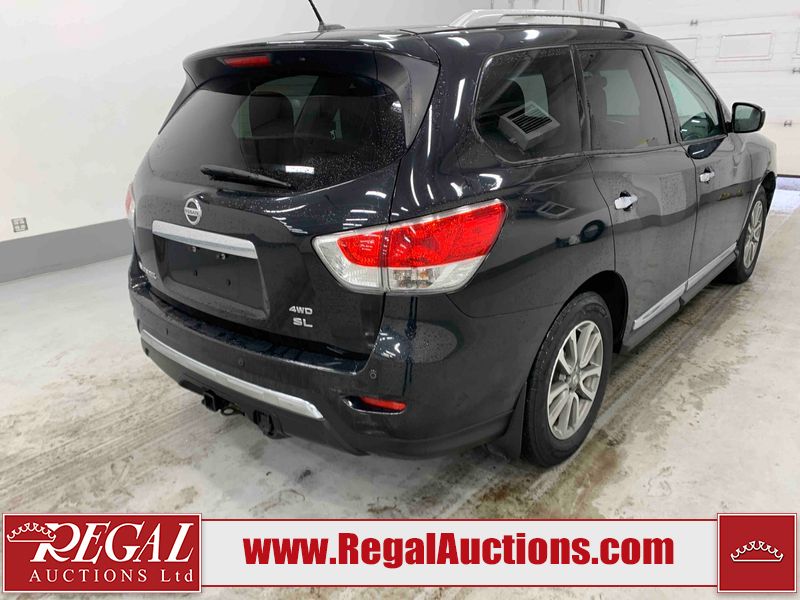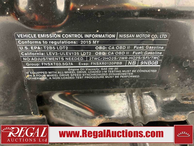 This 2015 NISSAN PATHFINDER SL 4D UTILITY 4WD is powered by a 3.5L V6gasoline engine and an automatic transmission. It is equipped with four-wheel drive. The SUV has seats for 7 people. The SUV has low mileage for its age. The vehicle has high-value options including a sunroof, leather upholstery, power seats, heated seats, navigation, a backup camera, and a power lift gate. The body looks to be in good condition overall. There are chips on the front bumper, hood, and left front fender. There are incidental scratches on the left front door, left rear door, left rear fender, rear bumper, right rear fender, right rear door, and right front door. There are very minor chips on the right front fender. There are very minor scratches on the right front fender. The interior looks to be in good condition overall. The driver's seat is torn. The windshield looks to be in good condition. All of the tires have lots of tread remaining. This SUV is being sold by an automotive broker. Regal Auctions Ltd. makes no guarantee or warranty, either express or implied, with respect to the data provided in this report. The information has been provided from the consignor and from sources generally believed to be reliable, however the accuracy of this information cannot be guaranteed by Regal Auctions.
