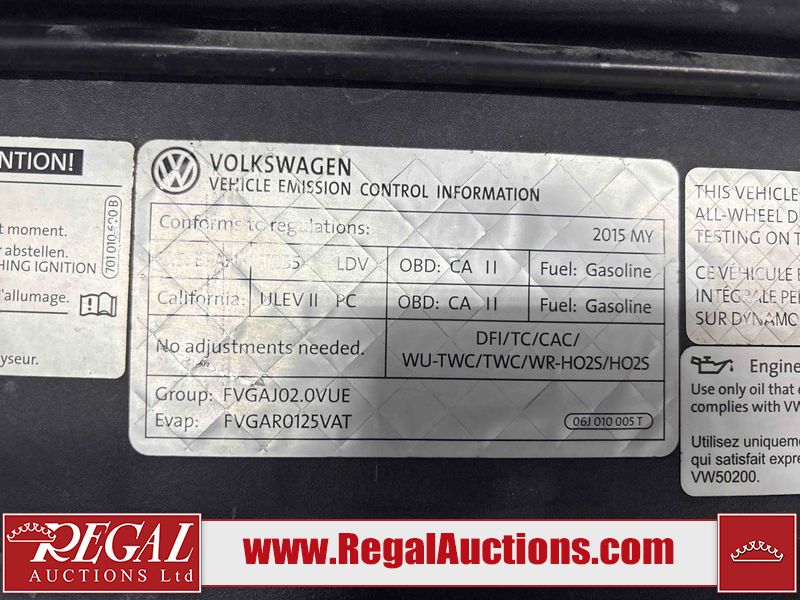 This 2015 VOLKSWAGEN TIGUAN 4D UTILITY is powered by a 200HP 1.9L 4 cylinder gasoline engine and an automatic transmission. It is equipped with four wheel drive. The SUV has seats for 5 people. The SUV has low mileage for its age. The vehicle has high value options including a sunroof, leather upholstery, and a backup camera. The body looks to be in good condition overall. There is rust on the roof. There are minimal scratches on the rear bumper. There are very minor chips in many areas around the body. There are very minor scratches in many areas around the body. There is very minor dent damage in a few areas around the body. The fog lights are broken. The interior looks to be in good condition overall. The windshield is chipped. All of the tires have lots of tread remaining. This SUV is being sold by a franchise dealership. The vehicle will be sold with the following declarations: Dealership Trade-In (See Footnote 1) and Claims Total $5000 - $9999 (See Footnote 2). Footnotes: 1) This vehicle is being sold on behalf of a franchise dealership. Franchise Dealerships are automotive sales companies who are directly connected to an automotive manufacturer like Ford, Tesla, Honda, BMW, or similar. 2) The vehicle's total recorded insurance claims history is between $5,000 - $9,999. This is the amount of money that was paid out by an insurance company for repairs to cover claims against the vehicle's insurance policy. This information is provided by CarFax. Regal Auctions Ltd. makes no guarantee or warranty, either express or implied, with respect to the data provided in this report. The information has been provided from the consignor and from sources generally believed to be reliable, however the accuracy of this information cannot be guaranteed by Regal Auctions.