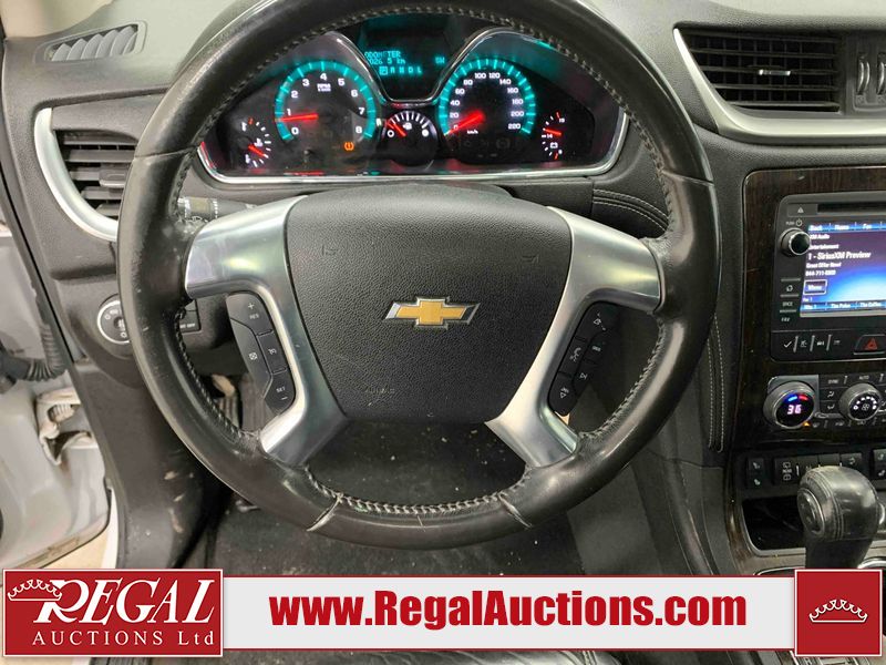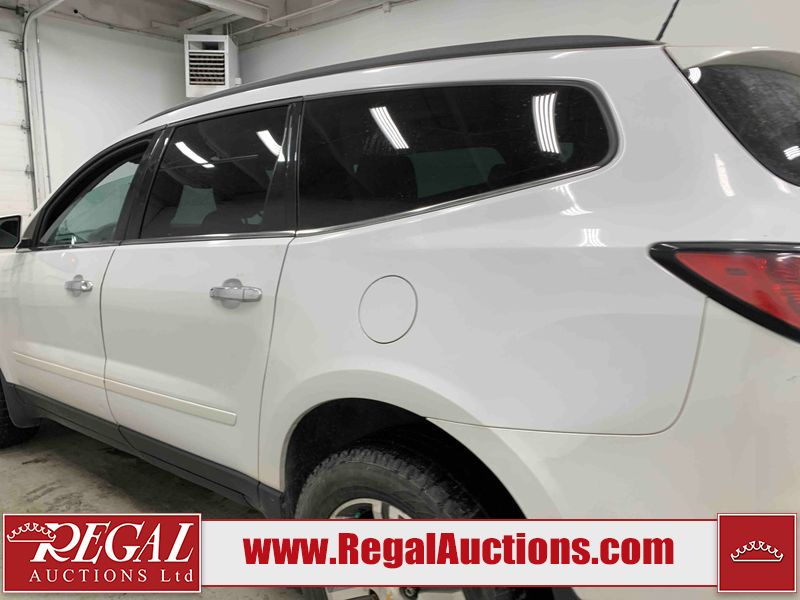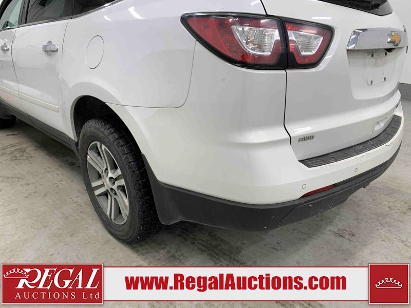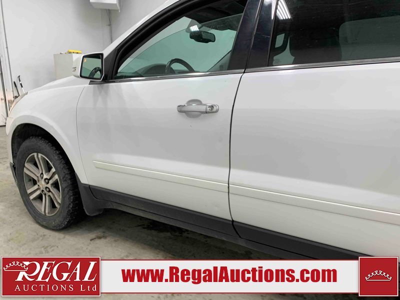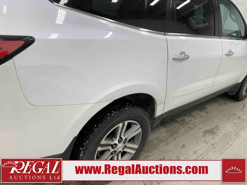 This 2016 CHEVROLET TRAVERSE 4D UTILITY AWD is powered by a 3.6L V6 gasoline engine and an automatic transmission. It is equipped with all-wheel drive. The SUV has seats for 7 people. The mileage is average considering the SUV's age. The vehicle has high-value options including a sunroof, leather upholstery, power seats, heated seats, navigation, and a backup camera. The Tire Pressure light is on. The body looks to be in rough condition overall. The front bumper is cracked. There are minor chips on the front bumper, hood, roof, rear bumper, and rear door. There are incidental scratches on the front bumper, roof, left front door, rear bumper, rear door, right rear fender, and right rear door. There is minimal rust on the roof and right rear fender. There is dent damage on the left front fender, left front door, and right rear door. There are very minor chips in many areas around the body. There are very minor scratches in many areas around the body. The interior looks to be in good condition overall. The driver seat is torn. The windshield looks to be in good condition. All of the tires have lots of tread remaining. This SUV is being sold by an automotive broker. The vehicle will be sold with the following declarations: Out of Province - BC (See Footnote 2) and Claims Total $5000 - $9999 (See Footnote 3). Footnotes: 1) We've identified some mechanical problems with the vehicle. However, the vehicle has not undergone a mechanical inspection and our findings are not to be considered a complete evaluation of the vehicle's mechanical condition. Review our Buyer Protection Policy to see how Regal Auctions protects you from undisclosed mechanical problems. 2) The vehicle's last registered jurisdiction is British Columbia. The purchaser must have the vehicle undergo and pass an Out of Province inspection before it can be registered in Alberta. 3) The vehicle's total recorded insurance claims history is between $5,000 - $9,999. This is the amount of money that was paid out by an insurance company for repairs to cover claims against the vehicle's insurance policy. This information is provided by CarFax. Regal Auctions Ltd. makes no guarantee or warranty, either express or implied, with respect to the data provided in this report. The information has been provided from the consignor and from sources generally believed to be reliable, however the accuracy of this information cannot be guaranteed by Regal Auctions.