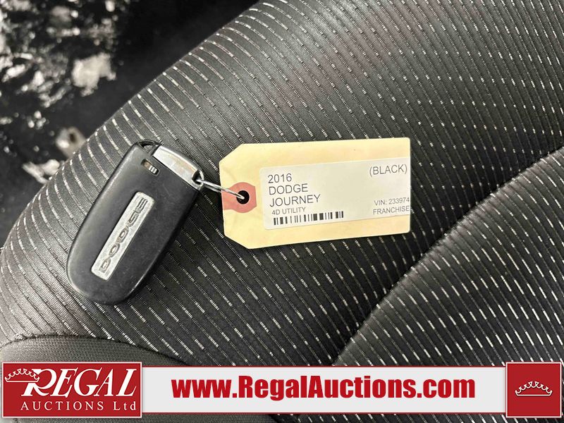 This 2016 DODGE JOURNEY 4D UTILITY is powered by a 4-cylinder gasoline engine and an automatic transmission. It is a two-wheel drive model. The SUV has seats for 5 people. The SUV has high mileage for its age. The body looks to be in fair condition overall. The rear bumper is broken. There is minimal dent damage on the left front fender. There are scratches on the rear bumper. There are very minor chips in many areas around the body. There are very minor scratches in many areas around the body. There is very minor dent damage on the right front door. The interior looks to be in good condition overall. The windshield is chipped. The tires are all worn. This SUV is being sold by a franchise dealership. The vehicle will be sold with the following declarations: Claims Total $10,000 - $14,999 (See Footnote 1) and Dealership Trade-In (See Footnote 2). Footnotes: 1) The vehicle's total recorded insurance claims history is between $10,000 - $14,999. This is the amount of money that was paid out by an insurance company for repairs to cover claims against the vehicle's insurance policy. This information is provided by CarFax. 2) This vehicle is being sold on behalf of a franchise dealership. Franchise Dealerships are automotive sales companies who are directly connected to an automotive manufacturer like Ford, Tesla, Honda, BMW, or similar. Regal Auctions Ltd. makes no guarantee or warranty, either express or implied, with respect to the data provided in this report. The information has been provided from the consignor and from sources generally believed to be reliable, however the accuracy of this information cannot be guaranteed by Regal Auctions.