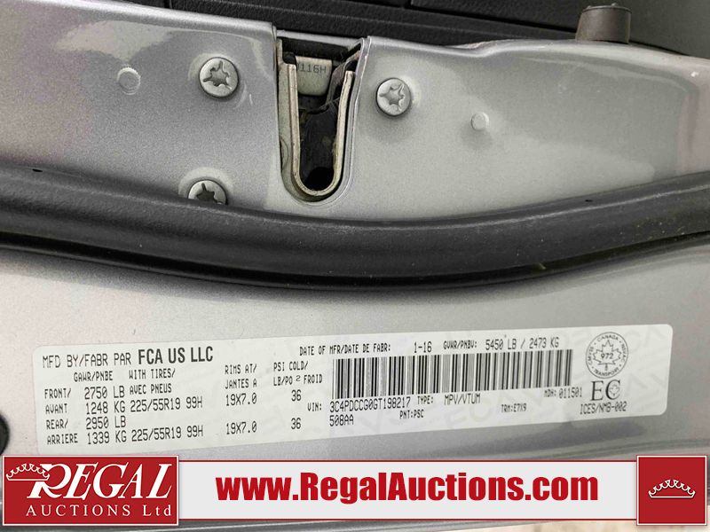 This 2016 DODGE JOURNEY SXT 4D UTILITY is powered by a 3.6L V6 gasoline engine and an automatic transmission. The SUV has seats for 7 people. The SUV has low mileage for its age. The vehicle has some mechanical problems. The engine has a top end tick. (See Footnote 1) The body looks to be in fair condition overall. There is a fair amount of paint overspray on the right rear fender and right rear door. There are minimal chips on the front bumper, hood, and roof. There are scratches on the front bumper and right rear door. There are very minor chips in many areas around the body. There are very minor scratches in many areas around the body. The headlight lenses are hazy. The interior looks to be in good condition overall. The driver's seat, passenger seat, and rear seats are dirty. The windshield is chipped. All of the tires have lots of tread remaining. This SUV is being sold by an automotive broker. The vehicle will be sold with the following declarations: Mechanical Problems (See Footnote 1). Footnotes: 1) We've identified some mechanical problems with the vehicle. However, the vehicle has not undergone a mechanical inspection and our findings are not to be considered a complete evaluation of the vehicle's mechanical condition. Review our Buyer Protection Policy to see how Regal Auctions protects you from undisclosed mechanical problems. Regal Auctions Ltd. makes no guarantee or warranty, either express or implied, with respect to the data provided in this report. The information has been provided from the consignor and from sources generally believed to be reliable, however the accuracy of this information cannot be guaranteed by Regal Auctions.