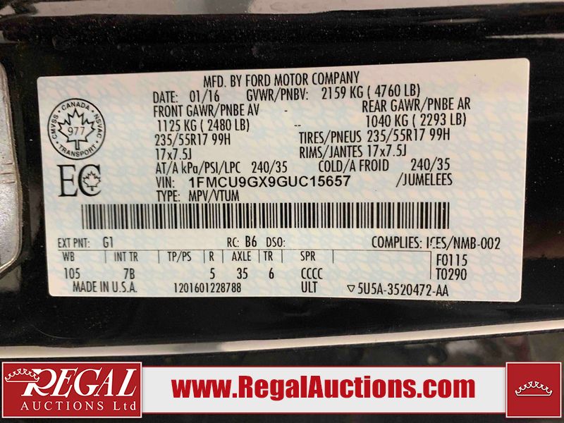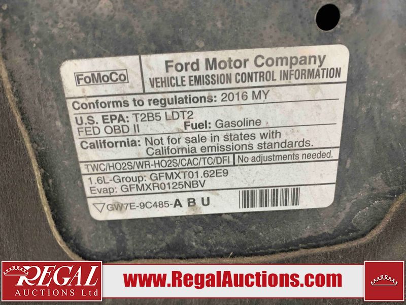 This 2016 FORD ESCAPE 4D SPORT UTILITY 4WD is powered by a turbocharged 1.6L 4-cylinder gasoline engine and an automatic transmission. It is equipped with four-wheel drive. The SUV has seats for 5 people. The SUV has low mileage for its age. The vehicle has high-value options including power seats, heated seats, navigation, and a backup camera. The Tire Pressure light is on. The body looks to be in fair condition overall. There are chips on the front bumper and hood. There are slight scratches on the hood. There is rust on the hood and roof. There is slight hail on the roof, left rear fender, and right rear fender. There are very minor scratches in many areas around the body. There are very minor chips in many areas around the body. The interior looks to be in fair condition overall. The dashboard is worn. The driver's seat, passenger seat, and rear seats are stained. The windshield looks to be in good condition. All of the tires have lots of tread remaining. This SUV is being sold by an automotive broker. The vehicle will be sold with the following declarations: Claims Total $5000 - $9999 (See Footnote 1) and Hail Damage (See Footnote 2). Footnotes: 1) The vehicle's total recorded insurance claims history is between $5,000 - $9,999. This is the amount of money that was paid out by an insurance company for repairs to cover claims against the vehicle's insurance policy. This information is provided by CarFax. 2) This vehicle shows signs of damage from a hail storm. Hail damage is not always clearly visible in photographs. Regal Auctions Ltd. makes no guarantee or warranty, either express or implied, with respect to the data provided in this report. The information has been provided from the consignor and from sources generally believed to be reliable, however the accuracy of this information cannot be guaranteed by Regal Auctions.