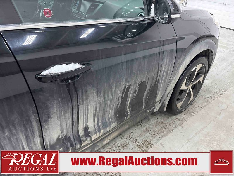 This 2016 HYUNDAI TUCSON LIMITED 4D UTILITY is powered by a 1.6L 4-cylinder gasoline engine and an automatic transmission. It is equipped with all-wheel drive. The SUV has seats for people. The mileage is average considering the SUV's age. LIMITED is a very popular trim level. The vehicle has high-value options including leather upholstery and power seats. The body looks to be in fair condition overall. There is hail on the hood, roof, left rear door, and left rear fender. There are very minor chips in many areas around the body. There are very minor scratches in many areas around the body. The interior looks to be in good condition overall. The windshield is chipped. The front tires are nearly bald and should be replaced. The rear tires have lots of tread. This SUV is being sold by a franchise dealership. The vehicle will be sold with the following declarations: Dealership Trade-In (See Footnote 1) and Hail Damage (See Footnote 2). Footnotes: 1) This vehicle is being sold on behalf of a franchise dealership. Franchise Dealerships are automotive sales companies who are directly connected to an automotive manufacturer like Ford, Tesla, Honda, BMW, or similar. 2) This vehicle shows signs of damage from a hail storm. Hail damage is not always clearly visible in photographs. Regal Auctions Ltd. makes no guarantee or warranty, either express or implied, with respect to the data provided in this report. The information has been provided from the consignor and from sources generally believed to be reliable, however the accuracy of this information cannot be guaranteed by Regal Auctions.