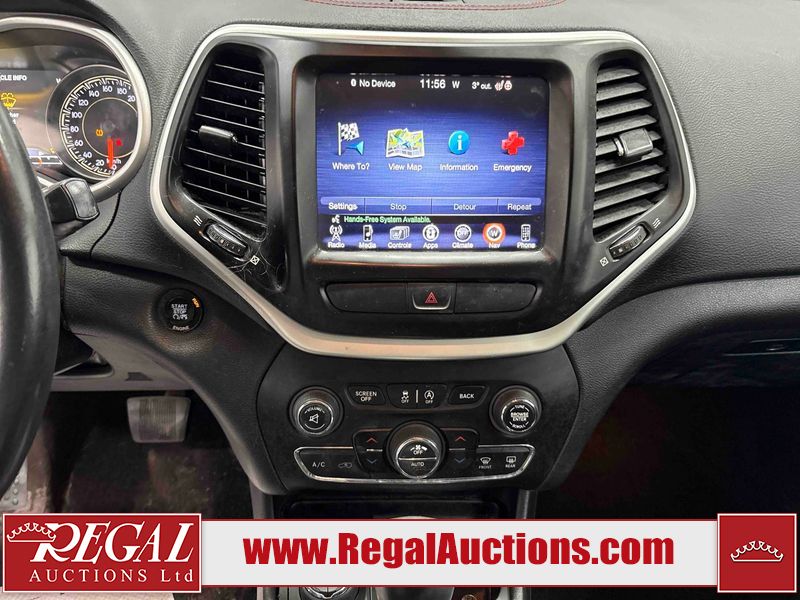 This 2016 JEEP CHEROKEE TRAILHAWK 4D UTILITY is powered by a 3.2 liter 6-cylinder gasoline engine and an automatic transmission. It is equipped with four-wheel drive. The SUV has seats for 5 people. The mileage is average considering the SUV's age. TRAILHAWK is a very popular trim level. The vehicle has high-value options, including leather upholstery and power seats. The Tire Pressure light is on. The body looks to be in good condition overall. There are very minor chips in many areas around the body. There are very minor scratches in many areas around the body. There is very minor dent damage on the roof. The interior looks to be in good condition overall. The windshield is cracked. All of the tires have lots of tread remaining. This SUV is being sold by a franchise dealership. The vehicle will be sold with the following declarations: Claims Total $15,000 - $19,999 (See Footnote 1) and Dealership Trade-In (See Footnote 2). Footnotes: 1) The vehicle's total recorded insurance claims history is between $15,000 - $19,999. This is the amount of money that was paid out by an insurance company for repairs to cover claims against the vehicle's insurance policy. This information is provided by CarFax. 2) This vehicle is being sold on behalf of a franchise dealership. Franchise Dealerships are automotive sales companies who are directly connected to an automotive manufacturer like Ford, Tesla, Honda, BMW, or similar. Regal Auctions Ltd. makes no guarantee or warranty, either express or implied, with respect to the data provided in this report. The information has been provided from the consignor and from sources generally believed to be reliable, however the accuracy of this information cannot be guaranteed by Regal Auctions.