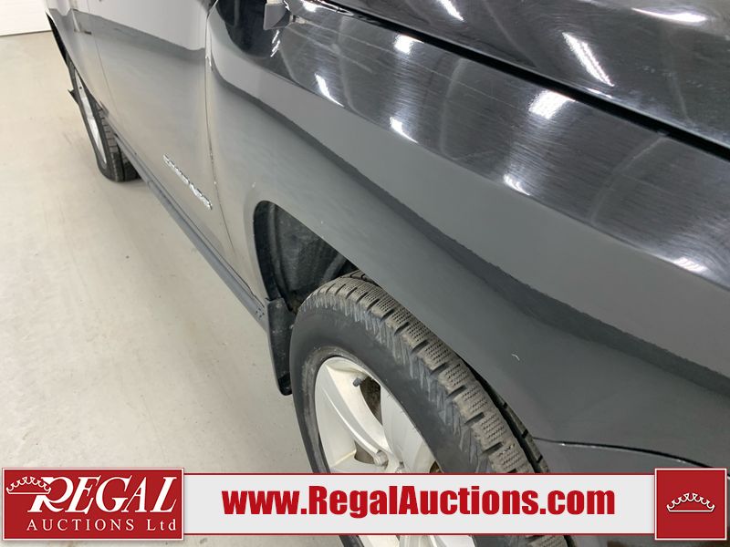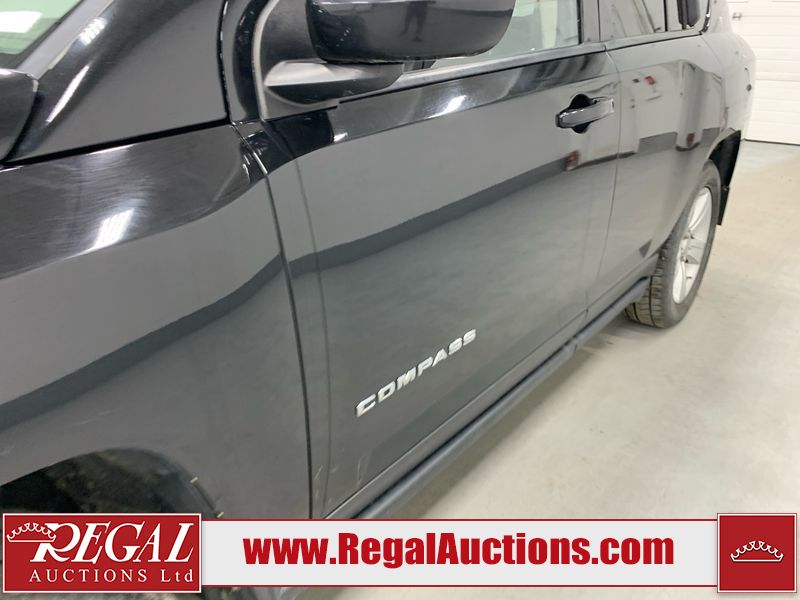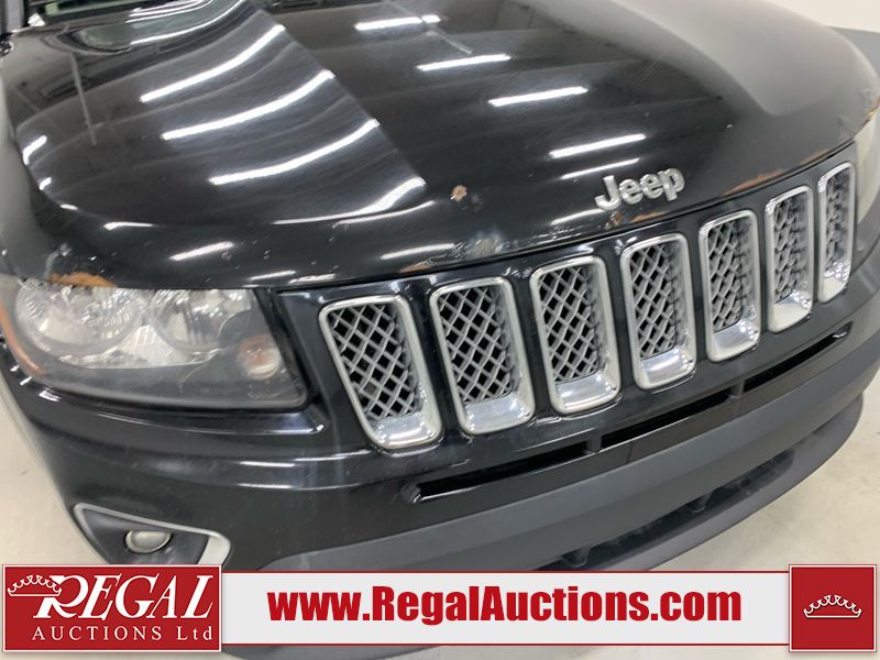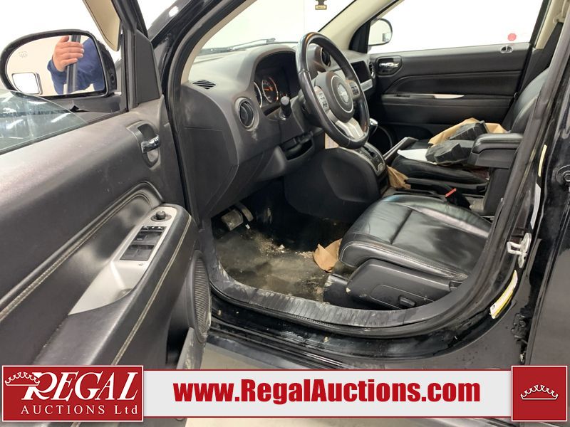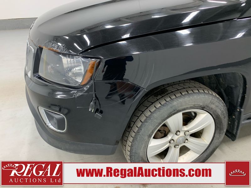 The battery will need to be replaced. There are chips across the front end and all side panels. Most panels are showing scratches and scuffs. The hood has surface rust. There are dents on the hood, roof, left front door, left rear door and right front door. The interior is dirty and will require a full detail. The windshield is cracked. This compact crossover is a 2016 Jeep Compass High Altitude four wheel drive model powered by a 2.4 Litre four cylinder engine and an automatic transmission. It is equipped with a powered to sunroof, back up camera, powered drivers seat, front heated leather seats, power windows and power door locks.