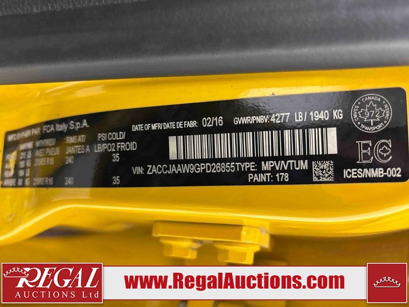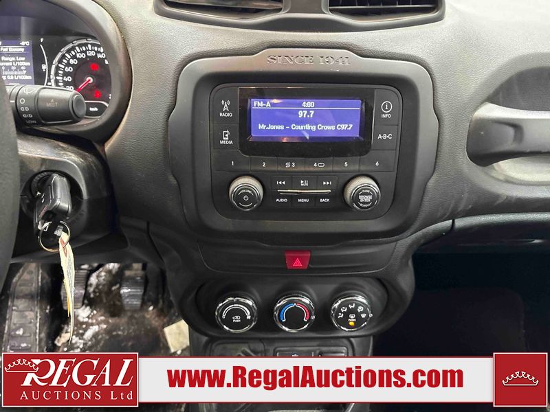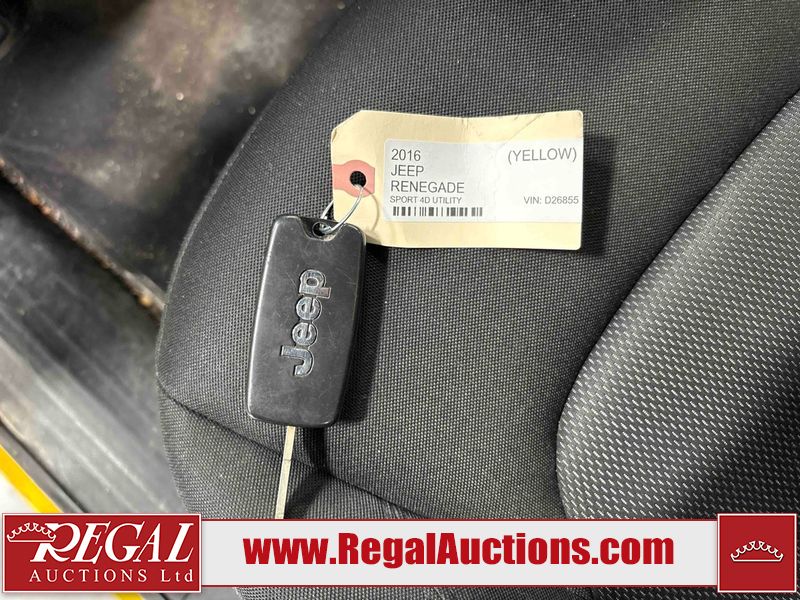 This 2016 JEEP RENEGADE SPORT 4D UTILITY is powered by a turbocharged 1.4L 4 cylinder gasoline engine and a 6 speed manual transmission. It is a two wheel drive model. The SUV has seats for 5 people. The SUV has low mileage for its age. The body looks to be in good condition overall. There are chips on the left front fender. There are very minor chips in many areas around the body. There are very minor scratches in many areas around the body. There is very minor dent damage in a few areas around the body. The interior looks to be in good condition overall. The windshield is cracked. All of the tires have lots of tread remaining. This SUV is being sold by an automotive broker. Regal Auctions Ltd. makes no guarantee or warranty, either express or implied, with respect to the data provided in this report. The information has been provided from the consignor and from sources generally believed to be reliable, however the accuracy of this information cannot be guaranteed by Regal Auctions.