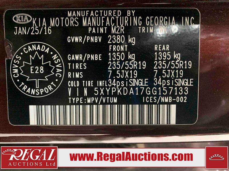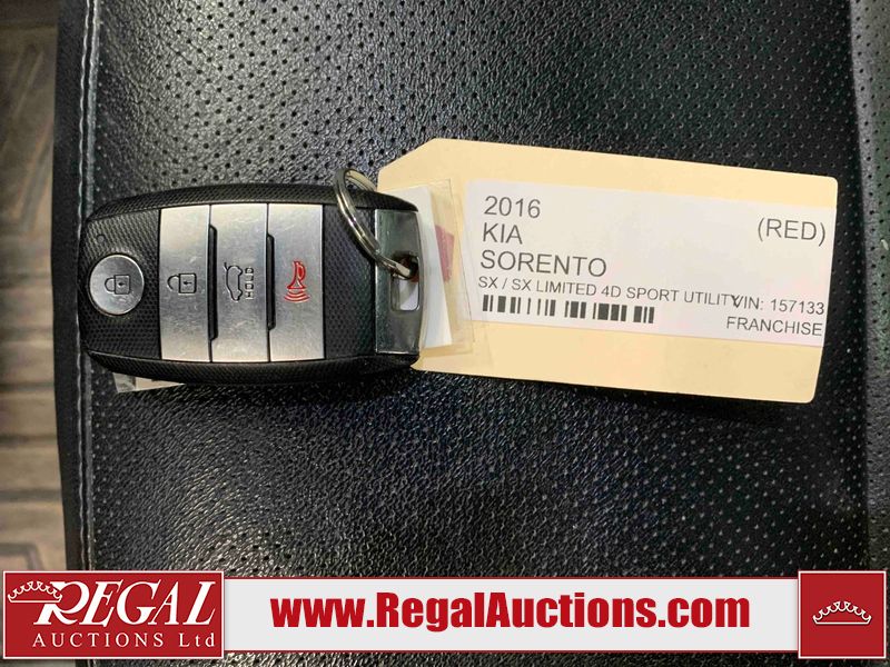 This 2016 KIA SORENTO 4D SPORT UTILITY is powered by a turbocharged 2.0L 4-cylinder gasoline engine and an automatic transmission. It is equipped with all-wheel drive. The SUV has seats for 5 people. The mileage is average considering the SUV's age. The vehicle has high-value options including a sunroof, leather upholstery, power seats, heated seats, navigation, a backup camera, and a power lift gate. The body looks to be in fair condition overall. There are conspicuous scratches on the right rear fender and right rear door. There is pronounced dent damage on the right rear door. There are minimal chips on the front bumper and hood. There is incidental dent damage on the hood and right front door. There are scratches on the left rear fender, rear bumper, and right front door. There are very minor chips in a few areas around the body. There are very minor scratches in a few areas around the body. The interior looks to be in good condition overall. The driver's seat is torn. The center console/armrest is torn. The windshield is cracked. All of the tires have lots of tread remaining. This SUV is being sold by a franchise dealership. The vehicle will be sold with the following declarations: Claims Total $10,000 - $14,999 (See Footnote 1) and Dealership Trade-In (See Footnote 2). Footnotes: 1) The vehicle's total recorded insurance claims history is between $10,000 - $14,999. This is the amount of money that was paid out by an insurance company for repairs to cover claims against the vehicle's insurance policy. This information is provided by CarFax. 2) This vehicle is being sold on behalf of a franchise dealership. Franchise Dealerships are automotive sales companies who are directly connected to an automotive manufacturer like Ford, Tesla, Honda, BMW, or similar. Regal Auctions Ltd. makes no guarantee or warranty, either express or implied, with respect to the data provided in this report. The information has been provided from the consignor and from sources generally believed to be reliable, however the accuracy of this information cannot be guaranteed by Regal Auctions.
