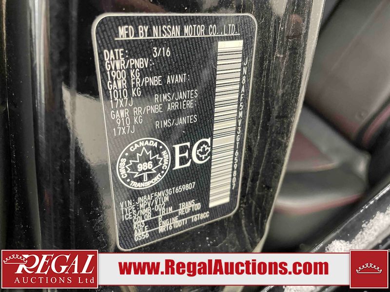 This 2016 NISSAN JUKE SL 4D SPORT UTILTY AWD is powered by a 1.6L 4CYL GAS 4 cylinder gasoline engine and an automatic transmission. It is equipped with four wheel drive. The SUV has seats for 5 people. The SUV has high mileage for its age. The vehicle has high value options including a sunroof, leather upholstery, navigation, and a backup camera. The body looks to be in good condition overall. There are minor scratches on the front bumper. There are very minor chips in many areas around the body. There are very minor scratches in many areas around the body. The interior looks to be in good condition overall. The windshield is cracked. The rear tires are worn. The front tires have lots of tread remaining. This SUV is being sold by an automotive broker. The vehicle will be sold with the following declarations: Claims Total $1000 - $2999 (See Footnote 1). Footnotes: 1) The vehicle's total recorded insurance claims history is between $1,000 - $2,999. This is the amount of money that was paid out by an insurance company for repairs to cover claims against the vehicle's insurance policy. This information is provided by CarFax. Regal Auctions Ltd. makes no guarantee or warranty, either express or implied, with respect to the data provided in this report. The information has been provided from the consignor and from sources generally believed to be reliable, however the accuracy of this information cannot be guaranteed by Regal Auctions.