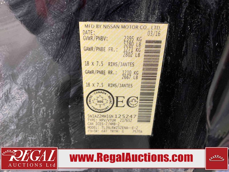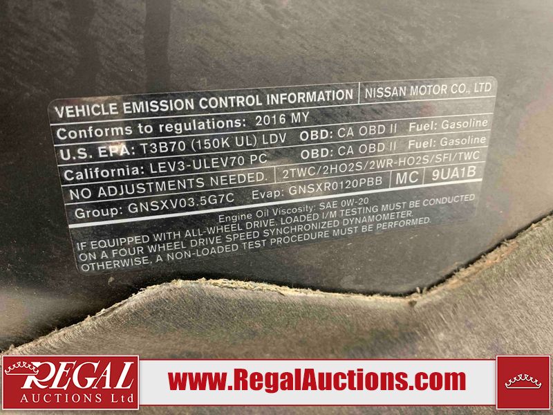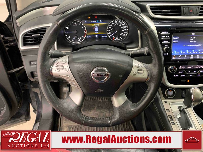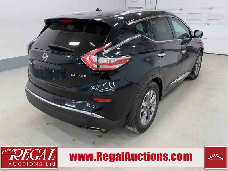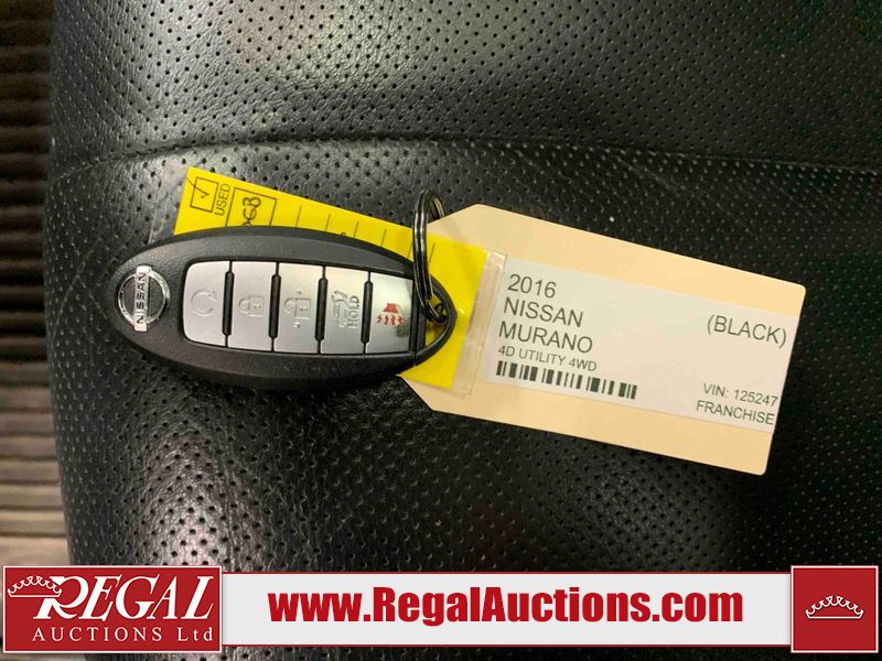 This 2016 NISSAN MURANO SL 4D UTILITY AWD is powered by a 3.5 liter 6-cylinder gasoline engine and an automatic transmission. It is equipped with all-wheel drive. The SUV has seats for 5 people. The mileage is average considering the SUV's age. The vehicle has high-value options, including a sunroof, leather upholstery, power seats, heated seats, navigation, a backup camera, and a power lift gate. The body looks to be in good condition overall. There are noteworthy scratches on the right rear door. There are minor chips on the front bumper. There are scratches on the front bumper, left rear door, left rear fender, rear bumper, right rear fender, and right front door. There is rust on the roof. There is dent damage on the hood. There are chips in a few areas around the body. There are scratches on the left front door. The headlight lenses are hazy. The interior looks to be in good condition overall. The windshield is chipped. All of the tires have lots of tread remaining. This SUV is being sold by a franchise dealership. The vehicle will be sold with the following declarations: Claims Total $3000 - $4999 (See Footnote 1) and Dealership Trade-In (See Footnote 2). Footnotes: 1) The vehicle's total recorded insurance claims history is between $3,000 - $4,999. This is the amount of money that was paid out by an insurance company for repairs to cover claims against the vehicle's insurance policy. This information is provided by CarFax. 2) This vehicle is being sold on behalf of a franchise dealership. Franchise Dealerships are automotive sales companies who are directly connected to an automotive manufacturer like Ford, Tesla, Honda, BMW, or similar. Regal Auctions Ltd. makes no guarantee or warranty, either express or implied, with respect to the data provided in this report. The information has been provided from the consignor and from sources generally believed to be reliable, however the accuracy of this information cannot be guaranteed by Regal Auctions.