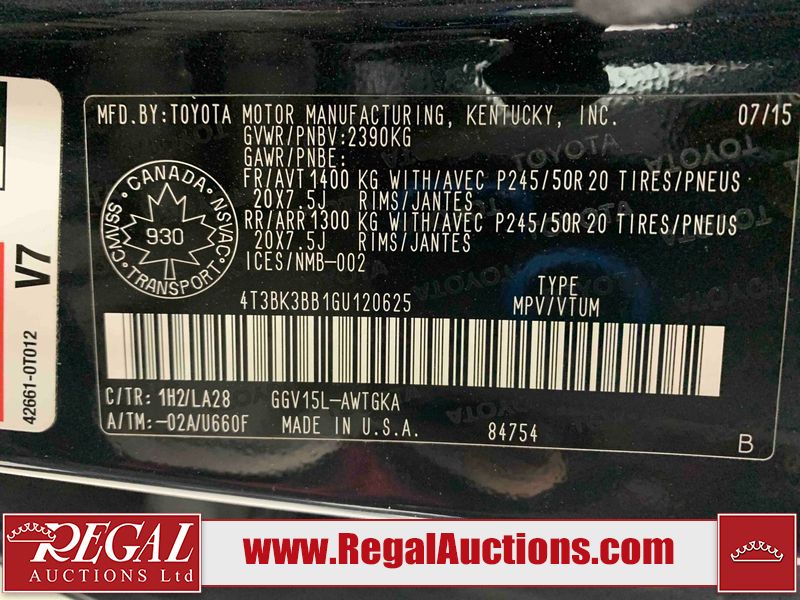 This 2016 TOYOTA VENZA LIMITED 4D UTILITY is powered by a 3.5L V6 gasoline engine and an automatic transmission. It is equipped with all-wheel drive. The SUV has seats for 5 people. The SUV has low mileage for its age. LIMITED is a very popular trim level. The vehicle has high value options including a sunroof, leather upholstery, power seats, heated seats, navigation, and a backup camera. The ABS light is on. The vehicle has some mechanical problems. *BRAKE LIGHTS STUCK ON* *EXCESSIVE OIL CONSUMPTION* (See Footnote 1) The body looks to be in good condition overall. There are minimal chips on the front bumper and hood. There are scratches on the front bumper, left front door, left rear door, left rear fender, rear bumper, right rear fender, right rear door, and right front door. There are very minor scratches in a few areas around the body. There are very minor chips in a few areas around the body. The interior looks to be in good condition overall. The windshield looks to be in good condition. All of the tires have lots of tread remaining. This SUV is being sold by a franchise dealership. The vehicle will be sold with the following declarations: Dealership Trade-In (See Footnote 2), Mechanical Problems (See Footnote 1), and Out of Province - ON (See Footnote 3). Footnotes: 1) We've identified some mechanical problems with the vehicle. However, the vehicle has not undergone a mechanical inspection and our findings are not to be considered a complete evaluation of the vehicle's mechanical condition. Review our Buyer Protection Policy to see how Regal Auctions protects you from undisclosed mechanical problems. 2) This vehicle is being sold on behalf of a franchise dealership. Franchise Dealerships are automotive sales companies who are directly connected to an automotive manufacturer like Ford, Tesla, Honda, BMW, or similar. 3) The vehicle's last registered jurisdiction is Ontario. The purchaser must have the vehicle undergo and pass an Out of Province inspection before it can be registered in Alberta. Regal Auctions Ltd. makes no guarantee or warranty, either express or implied, with respect to the data provided in this report. The information has been provided from the consignor and from sources generally believed to be reliable, however the accuracy of this information cannot be guaranteed by Regal Auctions.
