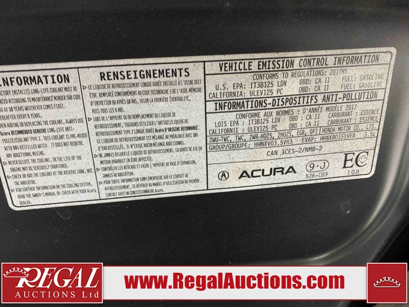 This 2017 ACURA MDX 4D SPORT UTILITY AWD is powered by a 3.5L V6 gasoline engine and an automatic transmission. It is equipped with all-wheel drive. The SUV has seats for 7 people. The SUV has low mileage for its age. The vehicle has high-value options including a sunroof, leather upholstery, power seats, heated seats, navigation, a backup camera, and a power lift gate. The body looks to be in fair condition overall. There is some hail on the hood. There are chips on the front bumper. There is hail on the roof. There are scratches on the left front door, left rear door, rear bumper, right rear fender, right rear door, and right front door. There are very minor chips in many areas around the body. There are very minor scratches in some areas around the body. The interior looks to be in good condition overall. The windshield looks to be in good condition. All of the tires have lots of tread remaining. This SUV is being sold by an automotive broker. The vehicle will be sold with the following declarations: Claims Total Above $20,000 (See Footnote 1) and Hail Damage (See Footnote 2). Footnotes: 1) The vehicle's total recorded insurance claims history is above $20,000. This is the amount of money that was paid out by an insurance company for repairs to cover claims against the vehicle's insurance policy. This information is provided by CarFax. 2) This vehicle shows signs of damage from a hail storm. Hail damage is not always clearly visible in photographs. Regal Auctions Ltd. makes no guarantee or warranty, either express or implied, with respect to the data provided in this report. The information has been provided from the consignor and from sources generally believed to be reliable, however the accuracy of this information cannot be guaranteed by Regal Auctions.
