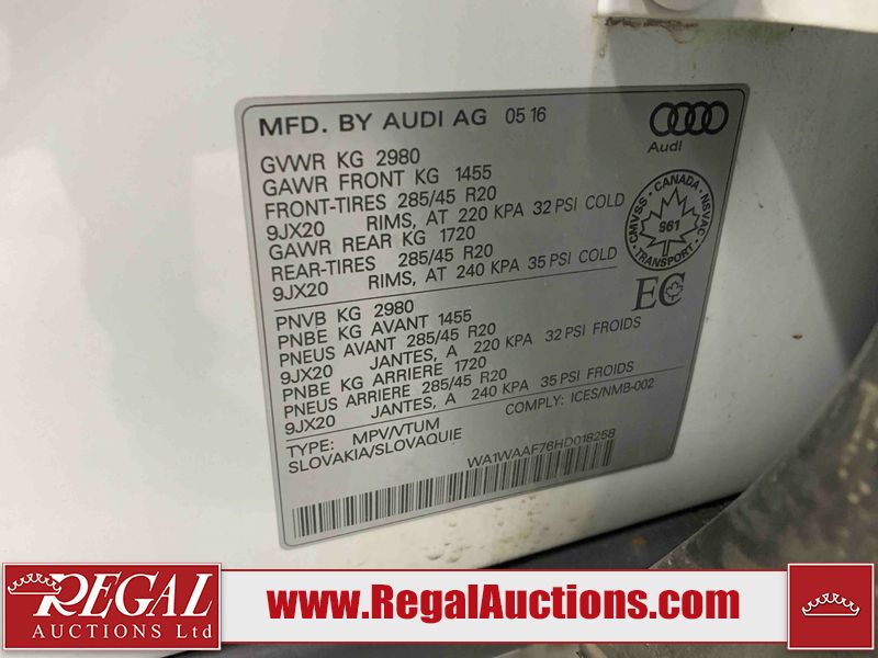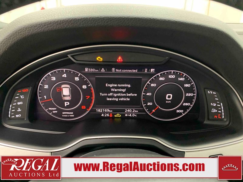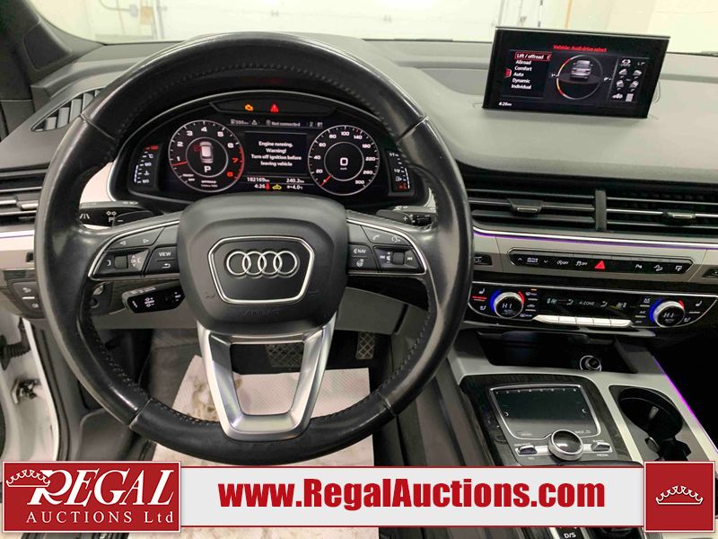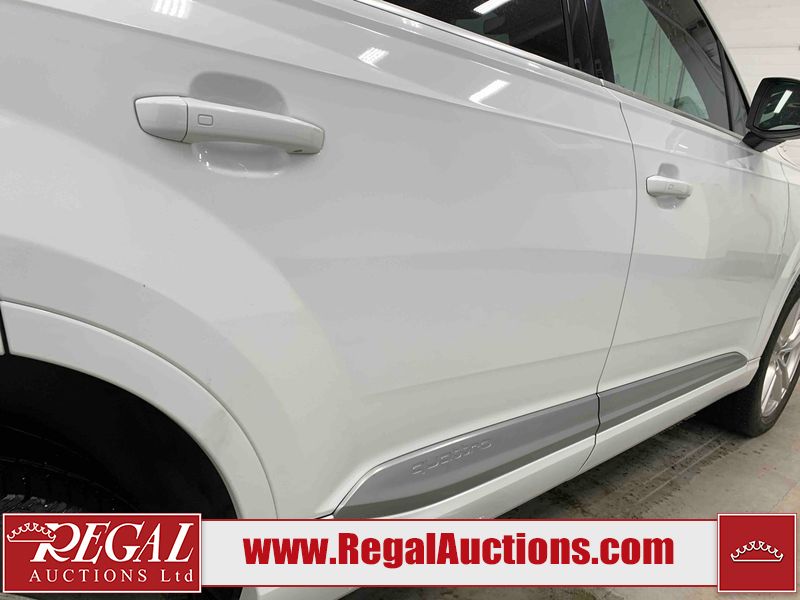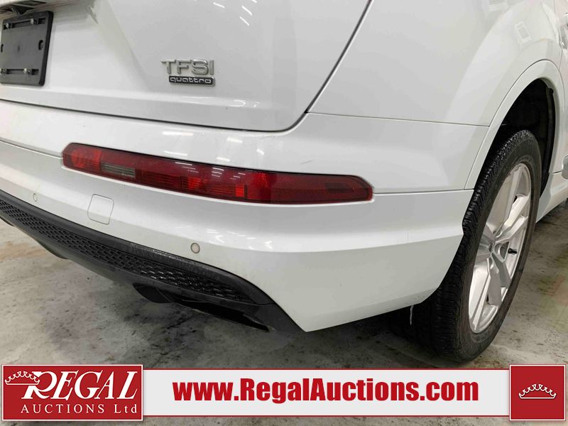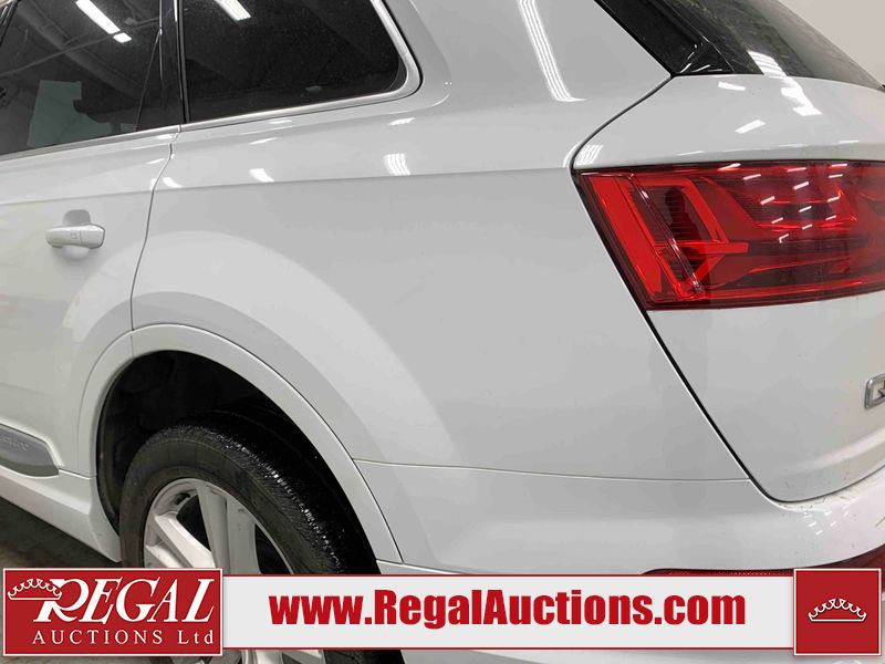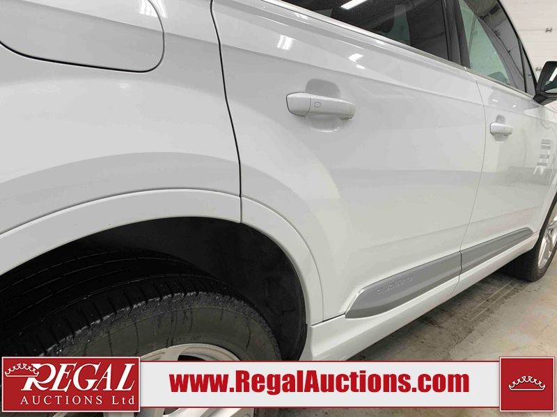 This 2017 AUDI Q7 TECHNIK 4D UTILITY is powered by a 3.0L V6 gasoline engine and an automatic transmission. It is a two wheel drive model. The SUV has seats for 7 people. The mileage is average considering the SUV's age. The vehicle has high value options including a sunroof, leather upholstery, power seats, heated seats, navigation, and a backup camera. The Check Engine and Stability Control lights are on. The body looks to be in good condition overall. There are very minor chips in many areas around the body. There are very minor scratches in many areas around the body. The interior looks to be in good condition overall. The windshield is cracked. The tires are all worn. This SUV is being sold by a franchise dealership. The vehicle will be sold with the following declarations: Claims Total Above $20,000 (See Footnote 1) and Dealership Trade-In (See Footnote 2). Footnotes: 1) The vehicle's total recorded insurance claims history is above $20,000. This is the amount of money that was paid out by an insurance company for repairs to cover claims against the vehicle's insurance policy. This information is provided by CarFax. 2) This vehicle is being sold on behalf of a franchise dealership. Franchise Dealerships are automotive sales companies who are directly connected to an automotive manufacturer like Ford, Tesla, Honda, BMW, or similar. Regal Auctions Ltd. makes no guarantee or warranty, either express or implied, with respect to the data provided in this report. The information has been provided from the consignor and from sources generally believed to be reliable, however the accuracy of this information cannot be guaranteed by Regal Auctions.