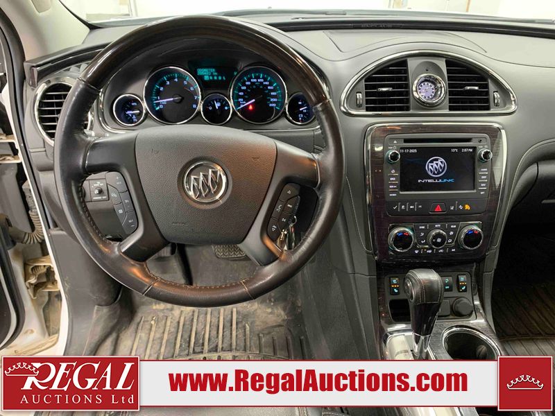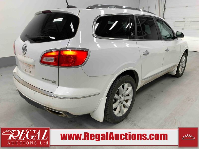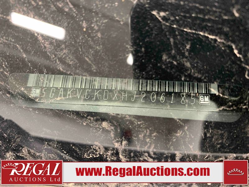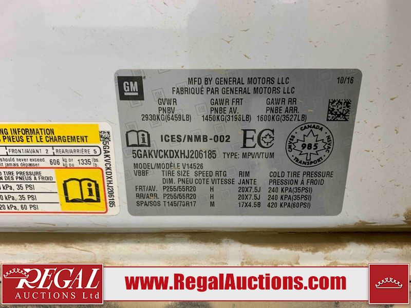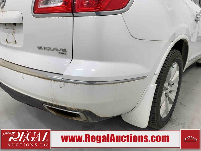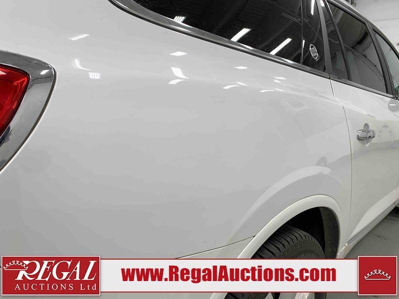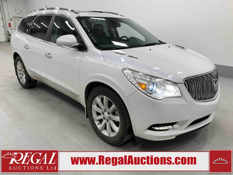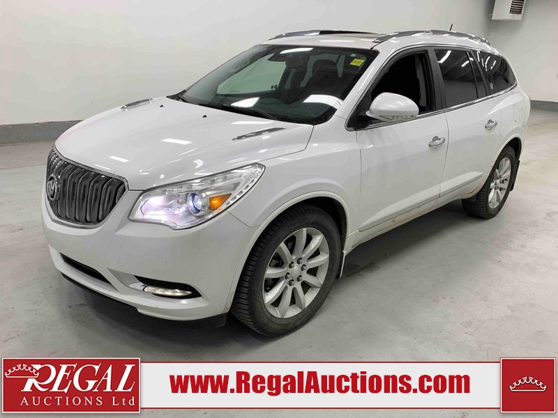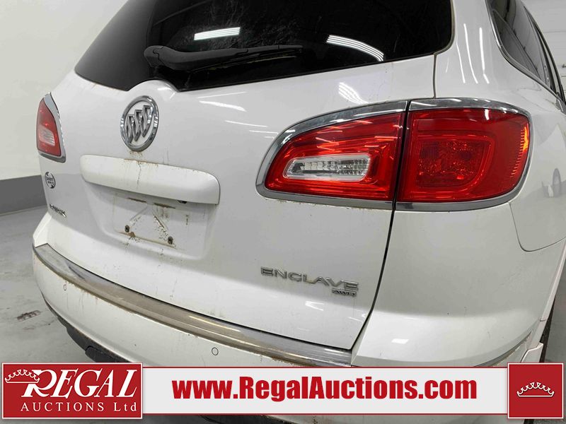 This 2017 BUICK ENCLAVE 4D UTILITY AWD is powered by a 3.6L V6 gasoline engine and an automatic transmission. It is equipped with all-wheel drive. The SUV has seats for 7 people. The SUV has high mileage for its age. The vehicle has high-value options including a sunroof, leather upholstery, power seats, heated seats, navigation, a backup camera, and a power liftgate. The body looks to be in good condition overall. There are slight chips on the front bumper. There is incidental hail on the right rear fender. There are very minor scratches in many areas around the body. There are very minor chips in many areas around the body. The interior looks to be in good condition overall. The windshield is chipped. All of the tires have lots of tread remaining. This SUV is being sold by an automotive broker. The vehicle will be sold with the following declarations: Out of Province - SK (See Footnote 1). Footnotes: 1) The vehicle's last registered jurisdiction is Saskatchewan. The purchaser must have the vehicle undergo and pass an Out of Province inspection before it can be registered in Alberta. Regal Auctions Ltd. makes no guarantee or warranty, either express or implied, with respect to the data provided in this report. The information has been provided from the consignor and from sources generally believed to be reliable, however the accuracy of this information cannot be guaranteed by Regal Auctions.