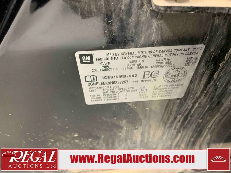 This 2017 CHEVROLET EQUINOX LS 4D UTILITY AWD 2.4L is powered by a 4 cylinder gasoline engine and an automatic transmission. It is equipped with four wheel drive. The SUV has seats for 5 people. The mileage is average considering the SUV's age. The vehicle has high value options including a sunroof, power seats, and a backup camera. The body looks to be in fair condition overall. There are incidental chips on the front bumper, hood, left front fender, left rear fender, rear bumper, right rear fender, right rear door, right front door, and right front fender. There are scratches on the front bumper, hood, left rear fender, rear bumper, right rear fender, right rear door, right front door, and right front fender. The left front fender, left front door, and left rear door have been repainted. There is paint peeling on the left front door. There are very minor chips in many areas around the body. There are very minor scratches in some areas around the body. The interior looks to be in fair condition overall. The dashboard, rear seats, and doors are dirty. The carpet is dirty. The roofliner is dirty. The windshield is chipped. The front tires and the driver's side rear tire are all worn. The passenger side rear tire has lots of tread left.