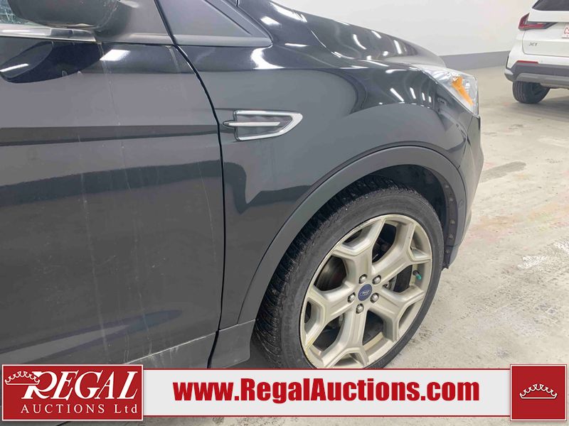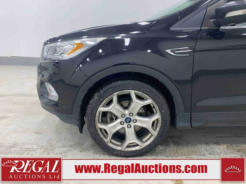This 2017 FORD ESCAPE TITANIUM 4D UTILITY AWD 2.0L is powered by a turbocharged 4 cylinder gasoline engine and an automatic transmission. It is equipped with four wheel drive. The SUV has seats for 5 people. The SUV has low mileage for its age. The vehicle has high value options including a sunroof, leather upholstery, power seats, heated seats, navigation, a backup camera, and a power lift gate. The body looks to be in fair condition overall. There are minimal chips on the front bumper, grille, hood, roof, left front fender, left front door, left rear door, rear bumper, rear door, and right front fender. There are very minor scratches in many areas around the body. There is very minor dent damage in a few areas around the body. There are very minor chips in some areas around the body. The interior looks to be in good condition overall. The carpet is dirty. The windshield is cracked. The tires are all worn.