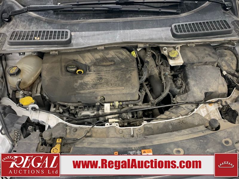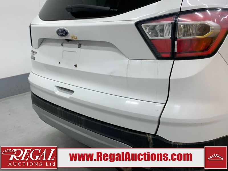 This 2017 FORD ESCAPE S 4D UTILITY AWD 1.5L is powered by a turbocharged 4 cylinder gasoline engine and an automatic transmission. It is equipped with four wheel drive. The SUV has seats for 5 people. The SUV has low mileage for its age. The vehicle has high value options including a backup camera. The Check Engine and Tire Pressure lights are on. The body looks to be in rough condition overall. The front bumper is cracked. There are chips on the front bumper, roof, and rear bumper. There are slight scratches on the front bumper, left front fender, left rear door, left rear fender, and rear bumper. There is dent damage on the hood, left front fender, left front door, left rear door, left rear fender, rear door, right rear door, and right front fender. There is rust on the rear door. There are very minor chips in many areas around the body. There are very minor scratches in many areas around the body. There is very minor dent damage on the right rear fender. The interior looks to be in fair condition overall. The driver's seat and passenger seat are stained. The carpet is dirty. The windshield is cracked. The tires are all worn.
