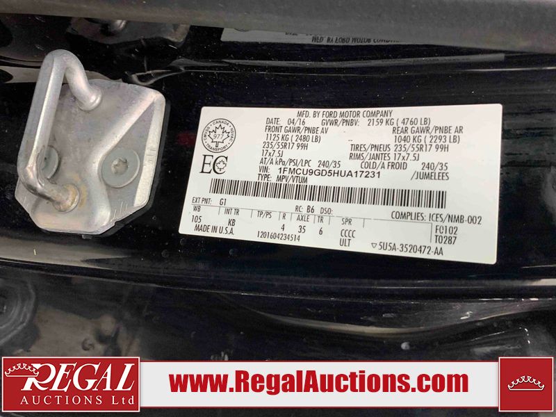 This 2017 FORD ESCAPE SE 4D UTILITY 4WD 1.5L is powered by a turbocharged 4 cylinder gasoline engine and an automatic transmission. It is equipped with four wheel drive. The SUV has seats for 5 people. The SUV has low mileage for its age. The vehicle has high value options including heated seats, a backup camera, and a power lift gate. The Tire Pressure light is on. The body looks to be in fair condition overall. There are incidental chips on the front bumper and hood. There are minor scratches on the right rear door. There are very minor scratches in many areas around the body. There are very minor chips in many areas around the body. The interior looks to be in good condition overall. The dashboard, driver's seat, passenger seat, rear seats, and doors are dirty. The windshield is cracked. All of the tires have lots of tread remaining. This SUV is being sold by an automotive broker. The vehicle will be sold with the following declarations: Claims Total $3000 - $4999 (See Footnote 1). Footnotes: 1) The vehicle's total recorded insurance claims history is between $3,000 - $4,999. This is the amount of money that was paid out by an insurance company for repairs to cover claims against the vehicle's insurance policy. This information is provided by CarFax. Regal Auctions Ltd. makes no guarantee or warranty, either express or implied, with respect to the data provided in this report. The information has been provided from the consignor and from sources generally believed to be reliable, however the accuracy of this information cannot be guaranteed by Regal Auctions.
