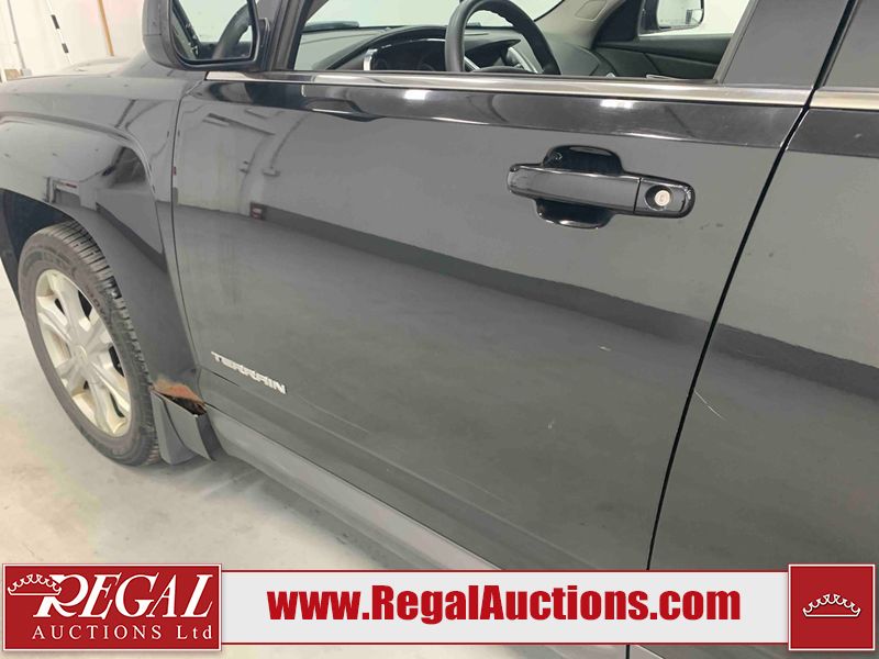 This 2017 GMC TERRAIN SLE1 4D UTILITY AWD 2.4L is powered by 4 cylinder gasoline engine and an automatic transmission. It is a all wheel drive model. The SUV has seats for 5 people. The mileage is average considering the SUV's age. The vehicle has high value options including power seats and a backup camera. The Check Engine light is on. The body looks to be in rough condition overall. The front bumper, rear bumper, and right rear fender are cracked. There is severe rust on the left front fender. The right rear door and right front door have been repainted poorly. There is pronounced paint peeling on the right rear door. The front bumper fascia is misaligned. There are chips on the grille, hood, roof, left front door, left rear door, left rear fender, and rear bumper. There are minimal scratches on the hood, left front door, left rear door, left rear fender, and rear bumper. The right rear fender and right front fender have been repainted. There are very minor chips in many areas around the body. There are very minor scratches in many areas around the body. There is very minor dent damage in a few areas around the body. The interior looks to be in good condition overall. The carpet is dirty. The windshield is chipped. All of the tires have lots of tread remaining.