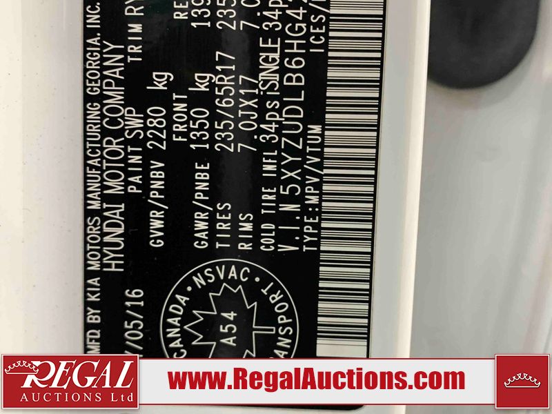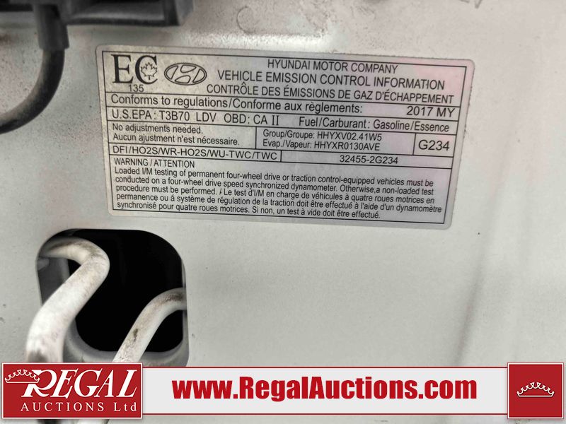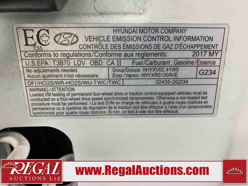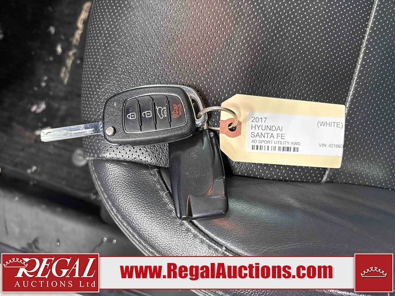 This 2017 HYUNDAI SANTA FE 4D SPORT UTILITY is powered by a 2.4L 4 cylinder gasoline engine and an automatic transmission. It is equipped with all wheel drive. The SUV has seats for 5 people. The SUV has low mileage for its age. The vehicle has high value options including a sunroof, leather upholstery, power seats, heated seats, a backup camera, and a power lift gate. The body looks to be in fair condition overall. The front bumper is cracked. There are conspicuous scratches on the left front door and left rear door. There are very minor chips in many areas around the body. There are very minor scratches in many areas around the body. The interior looks to be in good condition overall. The windshield looks to be in good condition. All of the tires have lots of tread remaining. This SUV is being sold by an automotive broker. Regal Auctions Ltd. makes no guarantee or warranty, either express or implied, with respect to the data provided in this report. The information has been provided from the consignor and from sources generally believed to be reliable, however the accuracy of this information cannot be guaranteed by Regal Auctions.