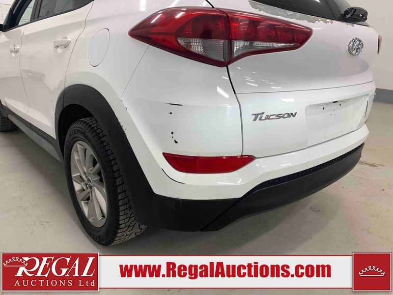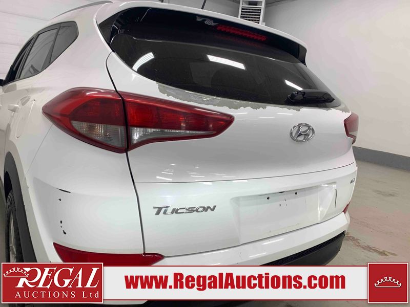 This 2017 HYUNDAI TUCSON PREMIUM 4D UTILITY 4WD 2.0L is powered by a 4 cylinder gasoline engine and an automatic transmission. It is equipped with four wheel drive. The SUV has seats for 5 people. The mileage is average considering the SUV's age. The vehicle has high value options including heated seats and a backup camera. The body looks to be in rough condition overall. There is very bad paint peeling on the roof and rear door. The rear door is cracked. There are incidental chips on the front bumper, hood, roof, left front fender, left front door, left rear door, rear bumper, right rear door, and right front fender. There are minor scratches on the front bumper and rear bumper. There is minor paint peeling on the front bumper and rear bumper. There is dent damage on the left rear door. There are very minor chips in many areas around the body. There are very minor scratches in many areas around the body. There is very minor dent damage in a few areas around the body. The interior looks to be in fair condition overall. The windshield is in good condition. All of the tires have lots of tread remaining.