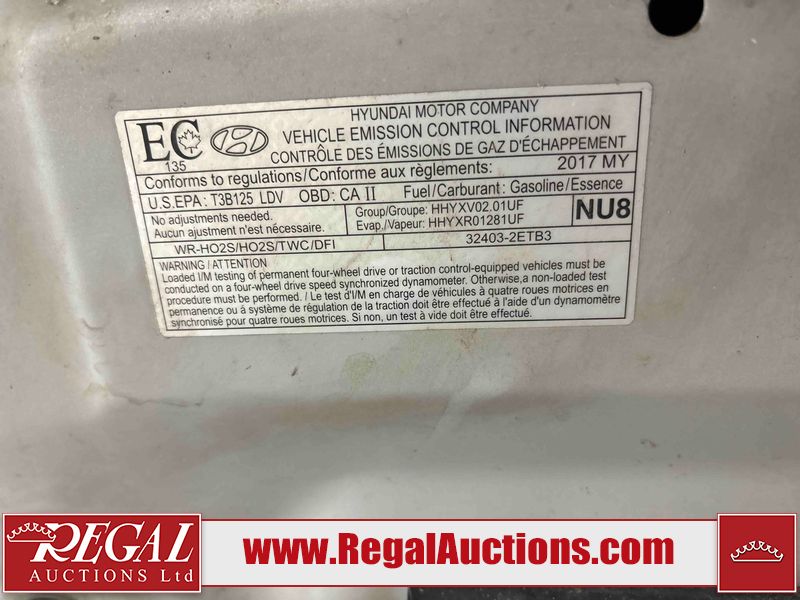 This 2017 HYUNDAI TUCSON 4D UTILITY AWD is powered by a 2.0L 4-cylinder gasoline engine and an automatic transmission. It is equipped with all-wheel drive. The SUV has seats for 5 people. The SUV has low mileage for its age. The vehicle has high-value options including a sunroof, leather upholstery, power seats, heated seats, navigation, and a backup camera. The body looks to be in good condition overall. The rear door is broken. There are minor chips on the hood. There are scratches on the rear bumper. There are very minor chips in many areas around the body. There are very minor scratches in many areas around the body. There is very minor dent damage in a few areas around the body. The interior looks to be in good condition overall. The windshield is chipped. All of the tires have lots of tread remaining. This SUV is being sold by an automotive broker. Regal Auctions Ltd. makes no guarantee or warranty, either express or implied, with respect to the data provided in this report. The information has been provided from the consignor and from sources generally believed to be reliable, however the accuracy of this information cannot be guaranteed by Regal Auctions.