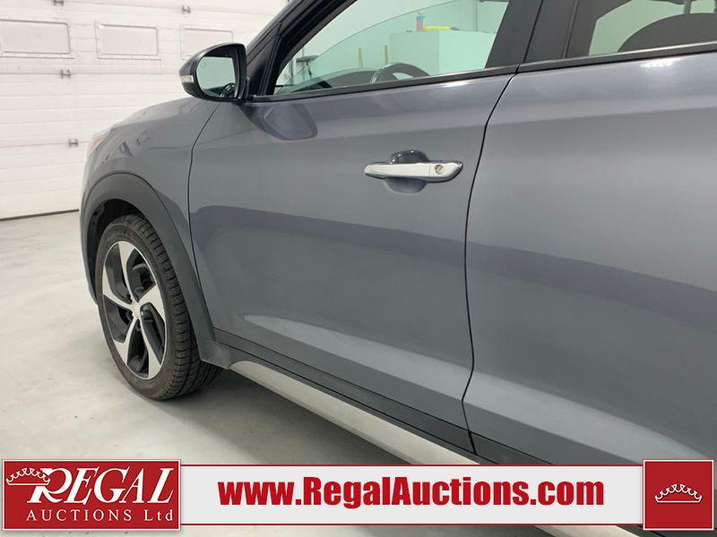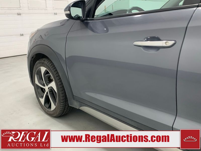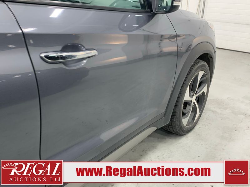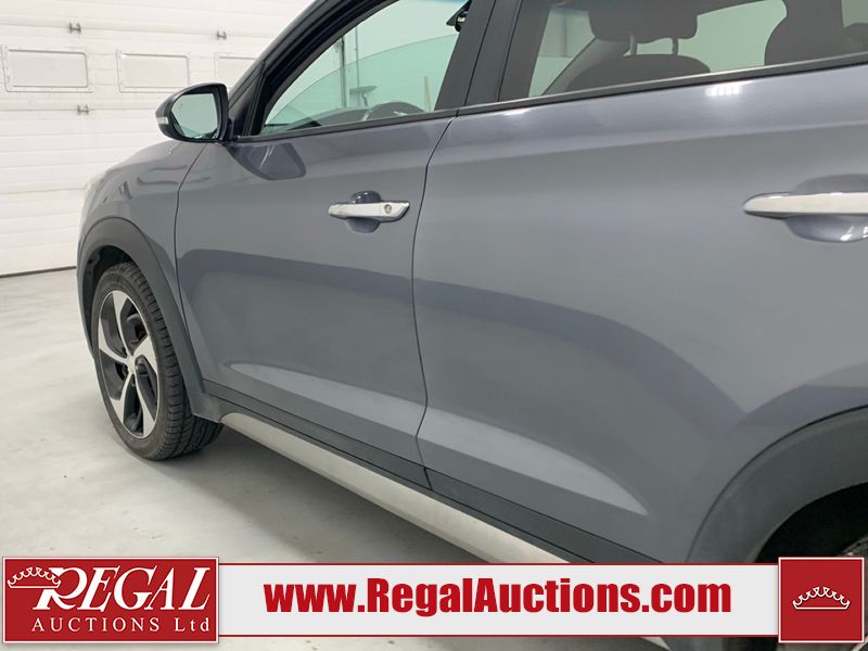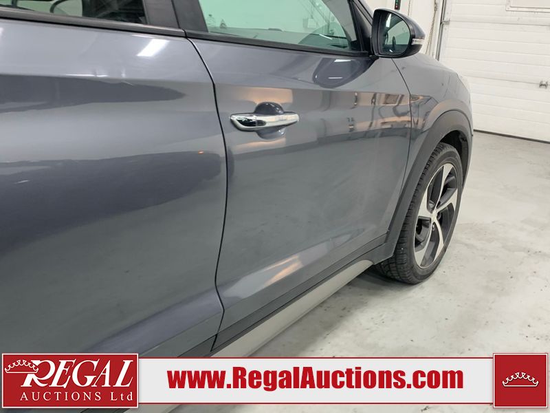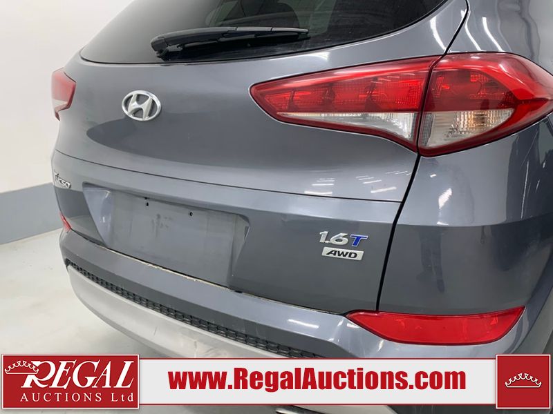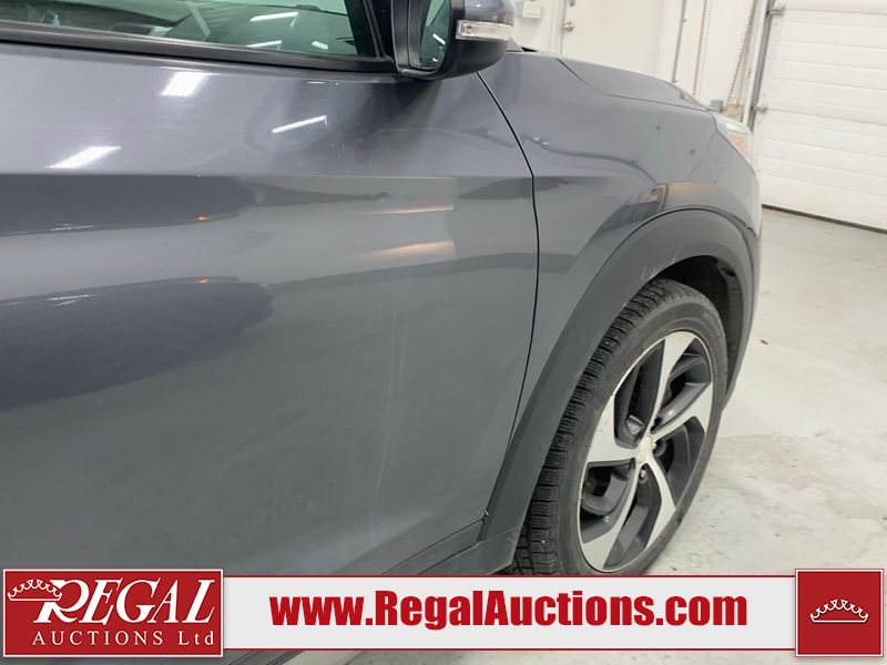 This 2017 HYUNDAI TUCSON SE 4D UTILITY AWD 1.6L is powered by a turbocharged 4 cylinder gasoline engine and an automatic transmission. It is equipped with four wheel drive. The SUV has seats for 5 people. The SUV has low mileage for its age. The vehicle has high value options including a sunroof, leather upholstery, power seats, a backup camera, and a power lift gate. The body looks to be in fair condition overall. There is some hail on the right rear fender. There are incidental chips on the front bumper. There are minimal scratches on the front bumper. There is dent damage on the right rear door. There are very minor chips in many areas around the body. There are very minor scratches in many areas around the body. The drivers door latch is broken. The interior looks to be in fair condition overall. The driver's seat is worn. The carpet is dirty. The windshield is chipped. The tires are all worn.