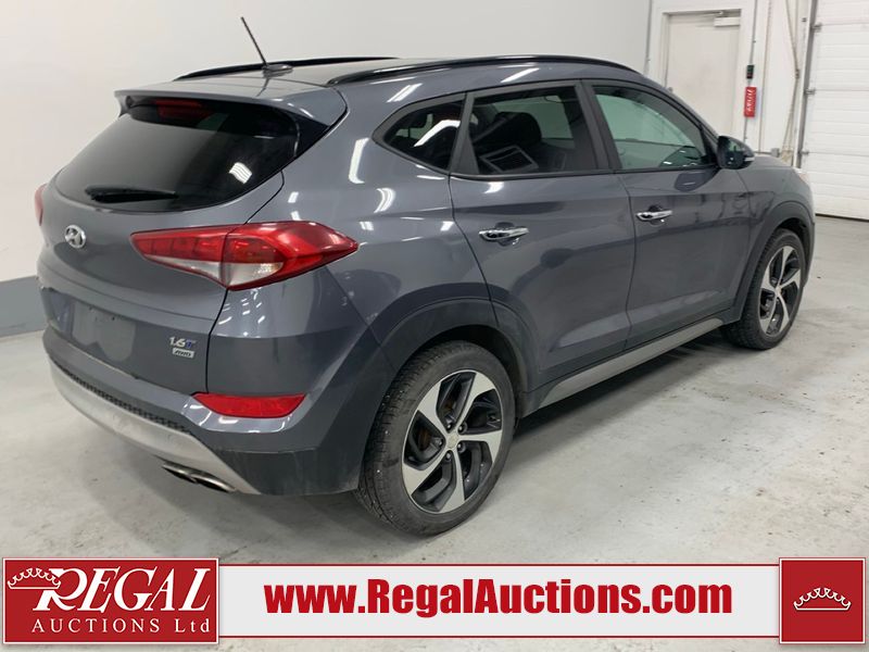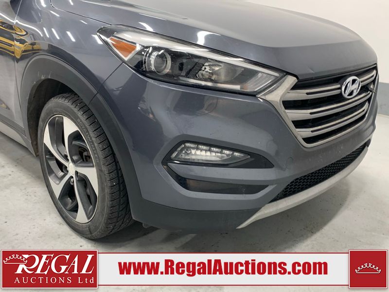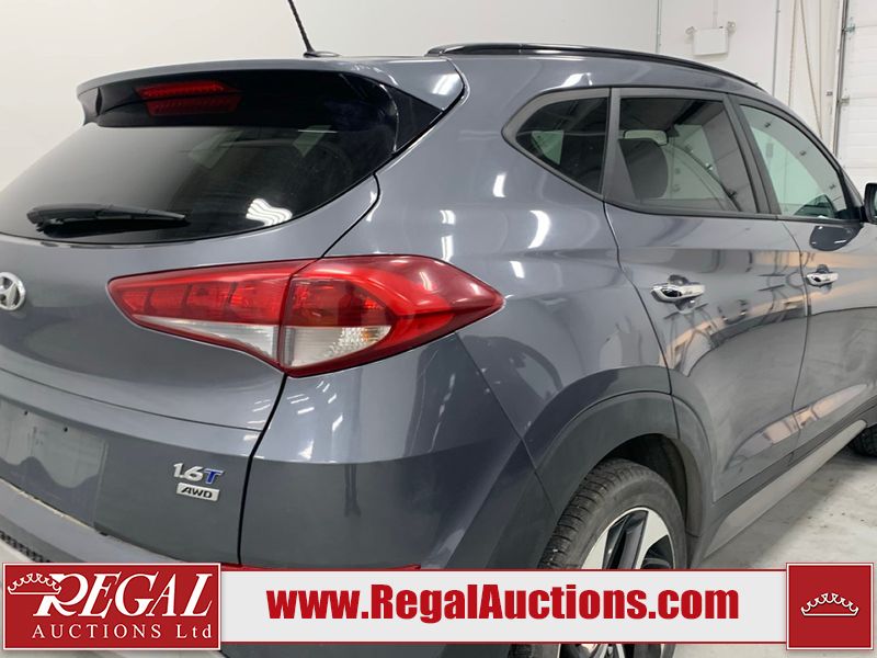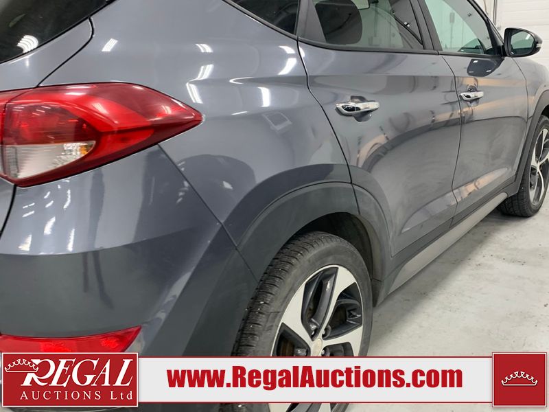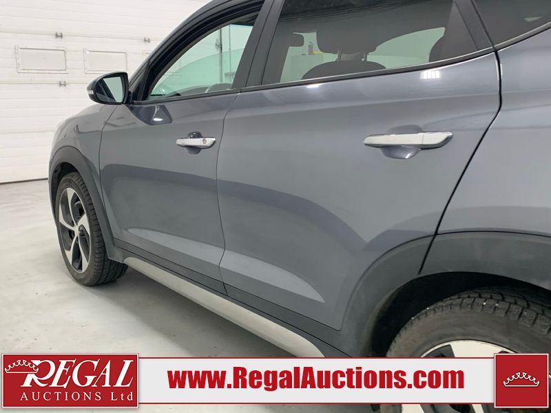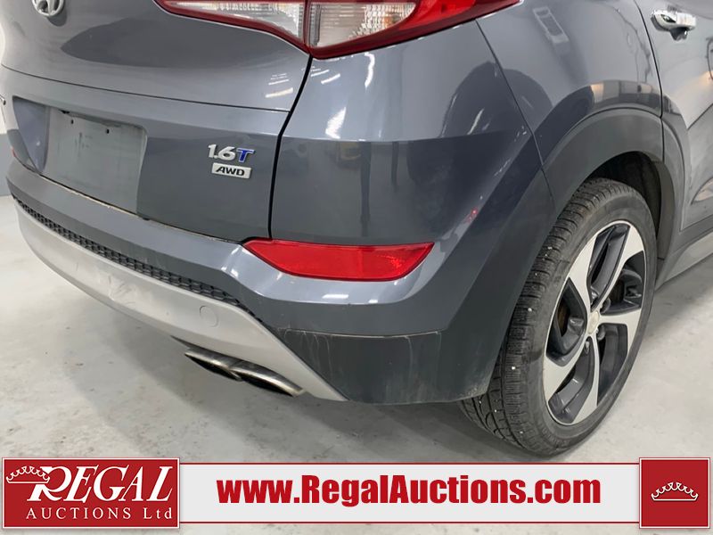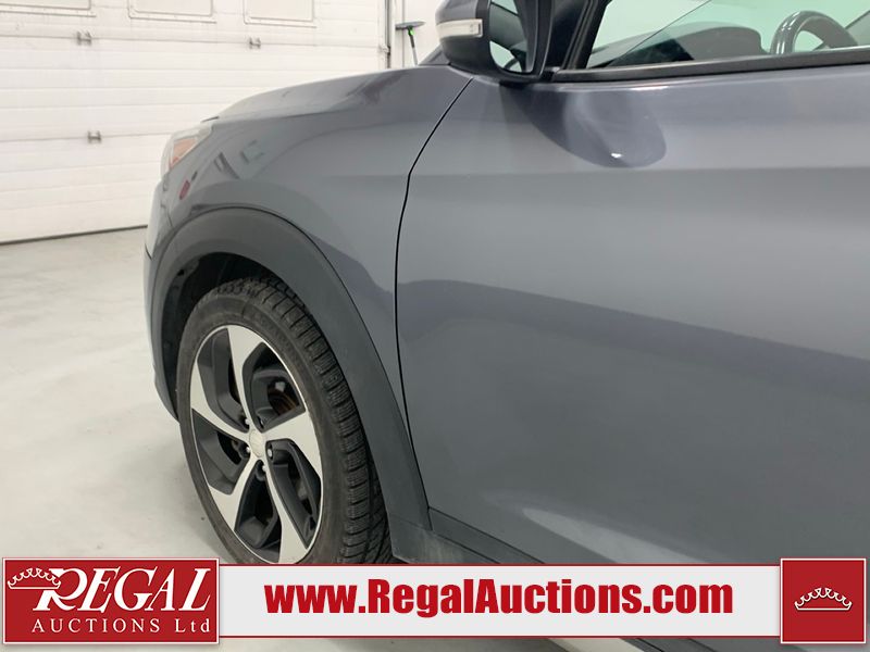 This 2017 HYUNDAI TUCSON SE 4D UTILITY AWD 1.6L is powered by a turbocharged 4 cylinder gasoline engine and an automatic transmission. It is equipped with four wheel drive. The SUV has seats for 5 people. The SUV has low mileage for its age. The vehicle has high value options including a sunroof, leather upholstery, power seats, a backup camera, and a power lift gate. The body looks to be in fair condition overall. There is some hail on the right rear fender. There are incidental chips on the front bumper. There are minimal scratches on the front bumper. There is dent damage on the right rear door. There are very minor chips in many areas around the body. There are very minor scratches in many areas around the body. The drivers door latch is broken. The interior looks to be in fair condition overall. The driver's seat is worn. The carpet is dirty. The windshield is chipped. The tires are all worn.