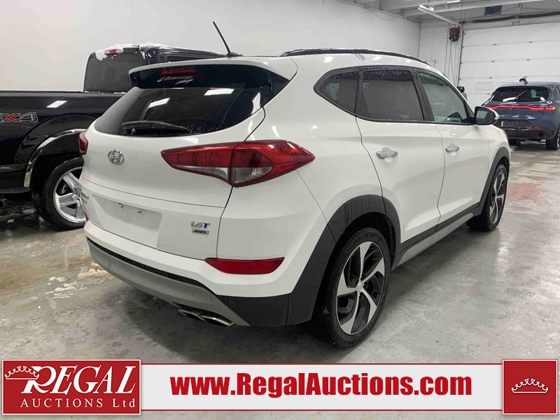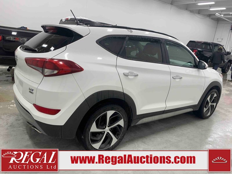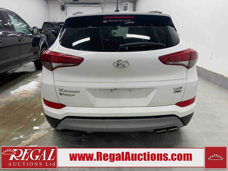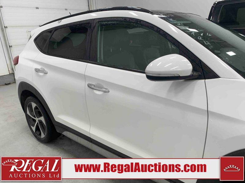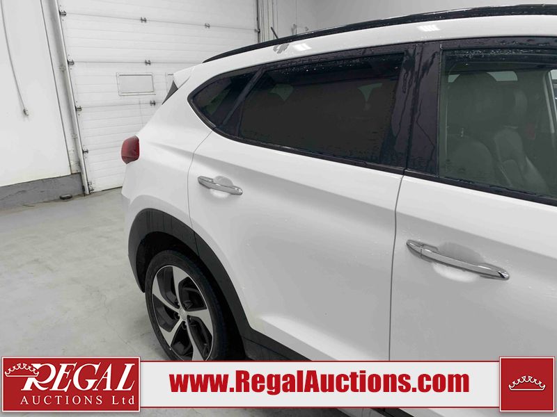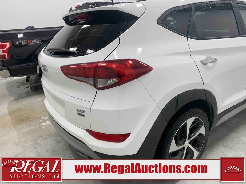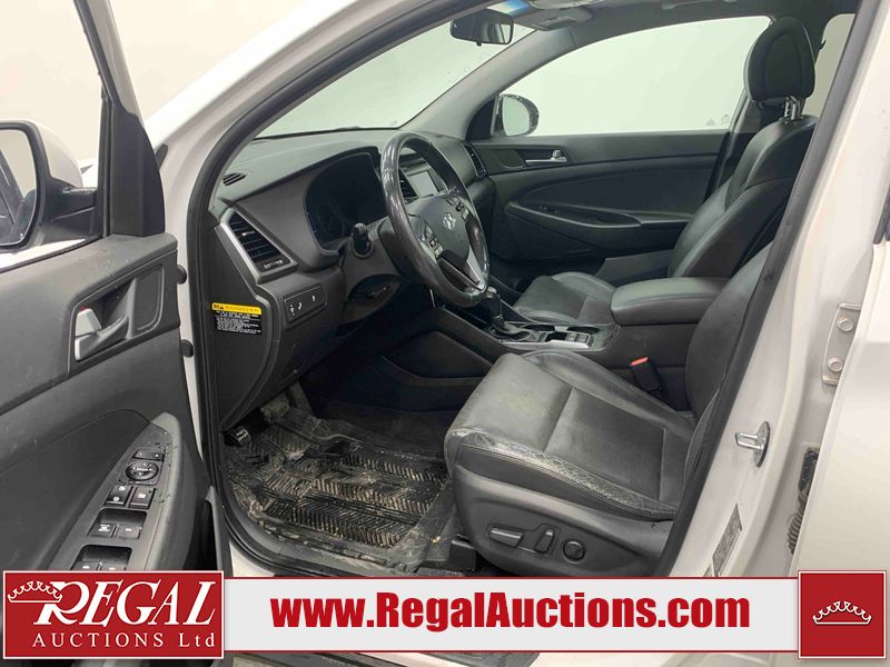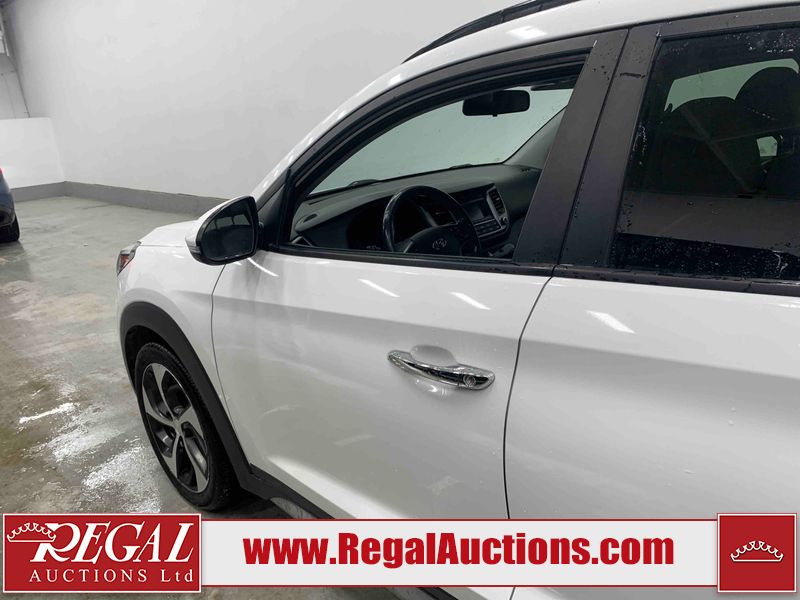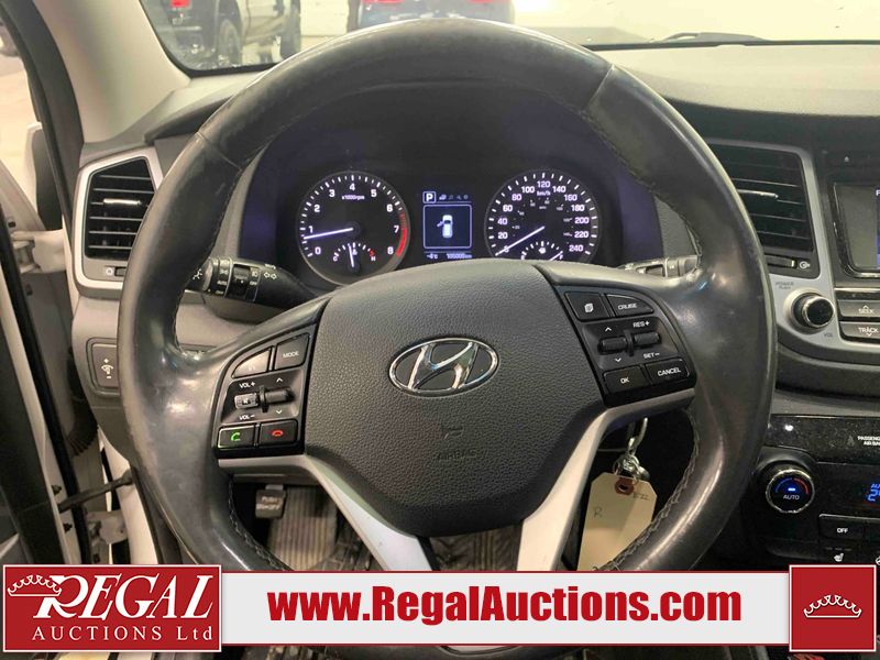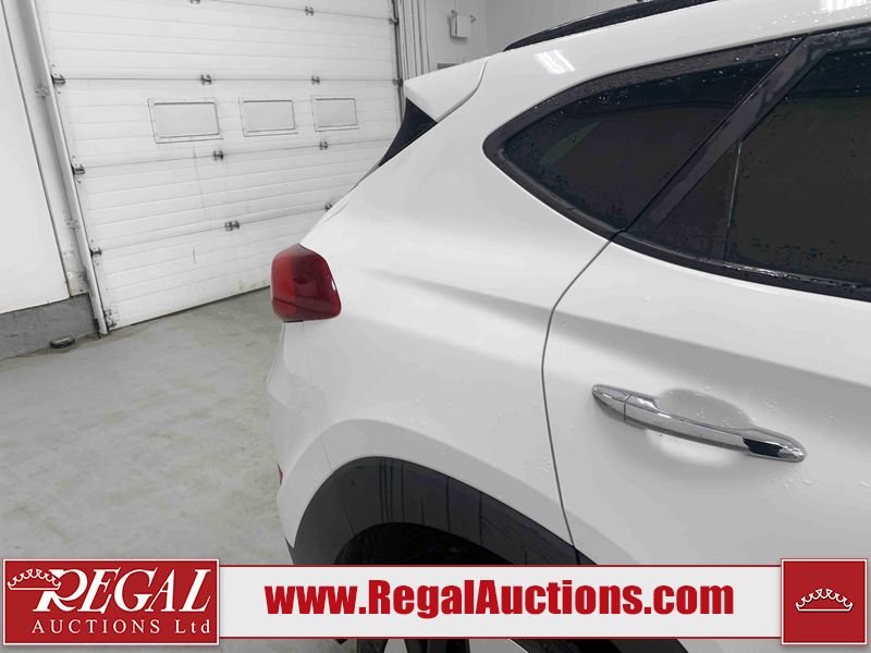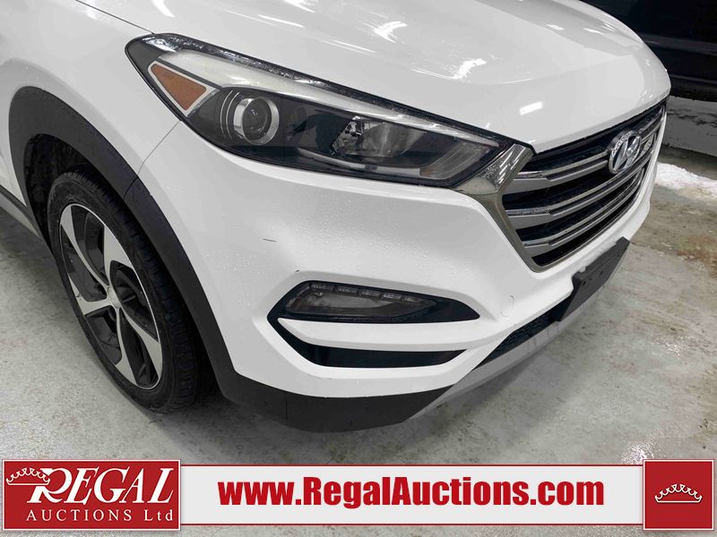 This 2017 HYUNDAI TUCSON SE 4D UTILITY 4WD 1.6L is powered by a turbocharged 4 cylinder gasoline engine and an automatic transmission. It is equipped with four wheel drive. The SUV has seats for 5 people. The SUV has low mileage for its age. The vehicle has high value options including a sunroof, leather upholstery, power seats, heated seats, and a backup camera. The body looks to be in good condition overall. There is pronounced paint peeling on the roof. There are scratches on the front bumper. There are chips on the hood. There are very minor chips in many areas around the body. There are very minor scratches in many areas around the body. There is very minor dent damage on the left front fender. The interior looks to be in fair condition overall. The driver's seat is worn. The rear seats are dirty. The carpet is dirty. The windshield is chipped. All of the tires have lots of tread remaining.