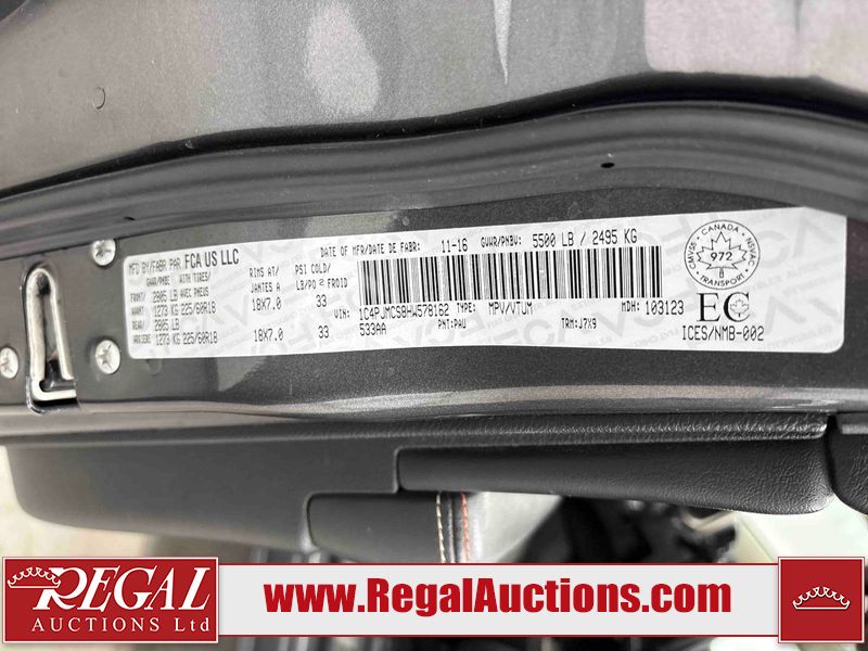 This 2017 JEEP CHEROKEE 4D SPORT UTILITY is powered by a 3.2L V6 gasoline engine and an automatic transmission. It is equipped with four-wheel drive. The SUV has seats for 5 people. The SUV has low mileage for its age. The vehicle has high-value options including a sunroof, power seats, and a backup camera. The body looks to be in fair condition overall. The front bumper has been repainted poorly. There are scratches on the left rear fender, right rear fender, right rear door, and right front fender. There are very minor chips in many areas around the body. There are very minor scratches in many areas around the body. The interior looks to be in good condition overall. The windshield is chipped. All of the tires have lots of tread remaining. This SUV is being sold by an automotive broker. Regal Auctions Ltd. makes no guarantee or warranty, either express or implied, with respect to the data provided in this report. The information has been provided from the consignor and from sources generally believed to be reliable, however the accuracy of this information cannot be guaranteed by Regal Auctions.