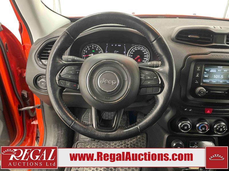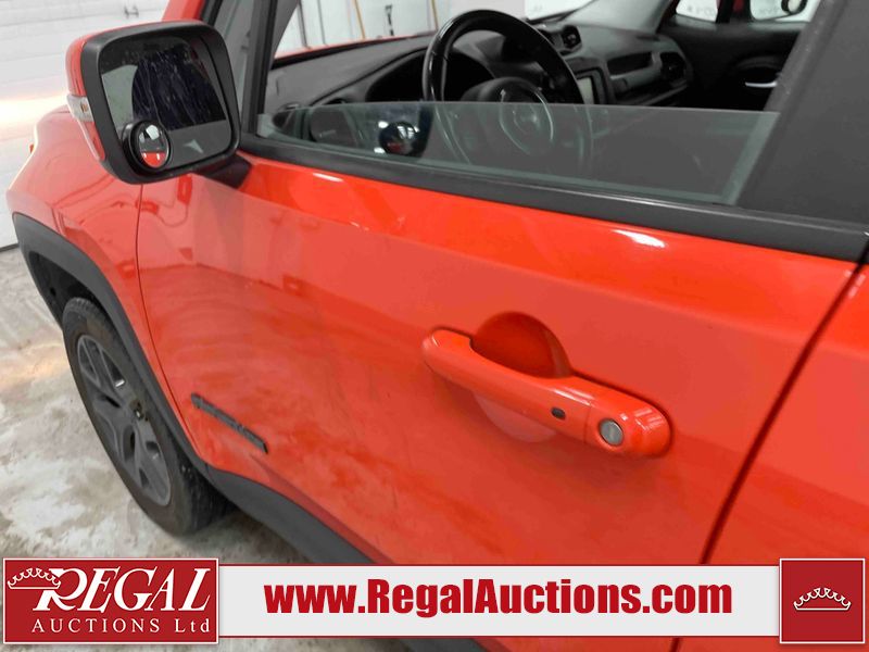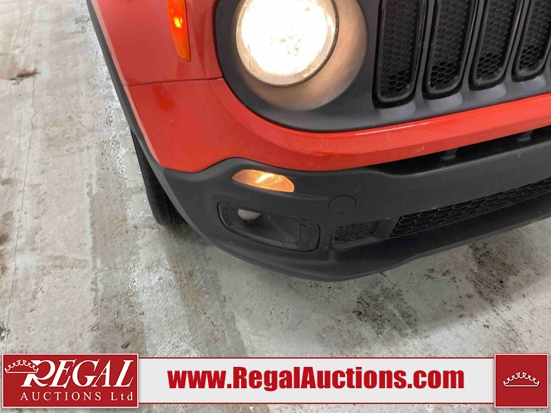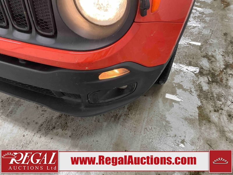 This 2017 JEEP RENEGADE NORTH 4D UTILITY 4WD 2.4L is powered by a 4 cylinder gasoline engine and an automatic transmission. It is equipped with four wheel drive. The SUV has seats for 5 people. The SUV has low mileage for its age. The vehicle has high value options including heated seats and a backup camera. The Tire Pressure light is on. The body looks to be in rough condition overall. There is noteworthy hail on the roof, left rear door, and left rear fender. There are slight chips on the front bumper, grille, hood, roof, and right front fender. There are minimal scratches on the front bumper, hood, and right front fender. There is hail on the hood, left front fender, left front door, rear door, and right rear fender. There are very minor scratches in many areas around the body. There are very minor chips in many areas around the body. The interior looks to be in fair condition overall. The passenger seat is stained. The carpet is dirty. There is burn hole damage to the front seat. The windshield is chipped. All of the tires have lots of tread remaining.