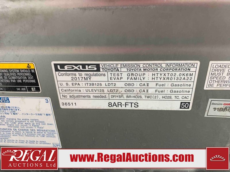 This 2017 LEXUS NX 200T 4D UTILITY is powered by a turbocharged 2.0L 4-cylinder gasoline engine and an automatic transmission. It is equipped with all-wheel drive. The SUV has seats for 5 people. The SUV has low mileage for its age. The vehicle has high-value options including a sunroof, leather upholstery, power seats, heated seats, navigation, and a backup camera. The body looks to be in good condition overall. There are very minor chips in many areas around the body. There are very minor scratches in many areas around the body. The interior looks to be in good condition overall. The windshield looks to be in good condition. The passenger side front tire is nearly bald and should be replaced. The rest of the tires are all worn. This SUV is being sold by an automotive broker. The vehicle will be sold with the following declarations: Claims Total $5000 - $9999 (See Footnote 2). Footnotes: 1) We've identified some mechanical problems with the vehicle. However, the vehicle has not undergone a mechanical inspection and our findings are not to be considered a complete evaluation of the vehicle's mechanical condition. Review our Buyer Protection Policy to see how Regal Auctions protects you from undisclosed mechanical problems. 2) The vehicle's total recorded insurance claims history is between $5,000 - $9,999. This is the amount of money that was paid out by an insurance company for repairs to cover claims against the vehicle's insurance policy. This information is provided by CarFax. Regal Auctions Ltd. makes no guarantee or warranty, either express or implied, with respect to the data provided in this report. The information has been provided from the consignor and from sources generally believed to be reliable, however the accuracy of this information cannot be guaranteed by Regal Auctions.