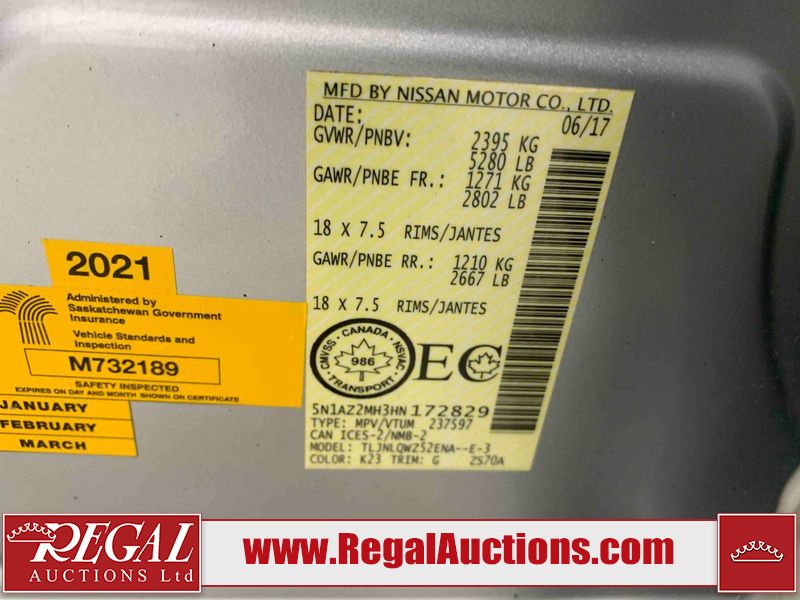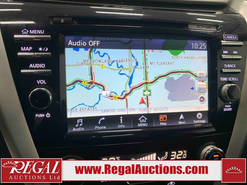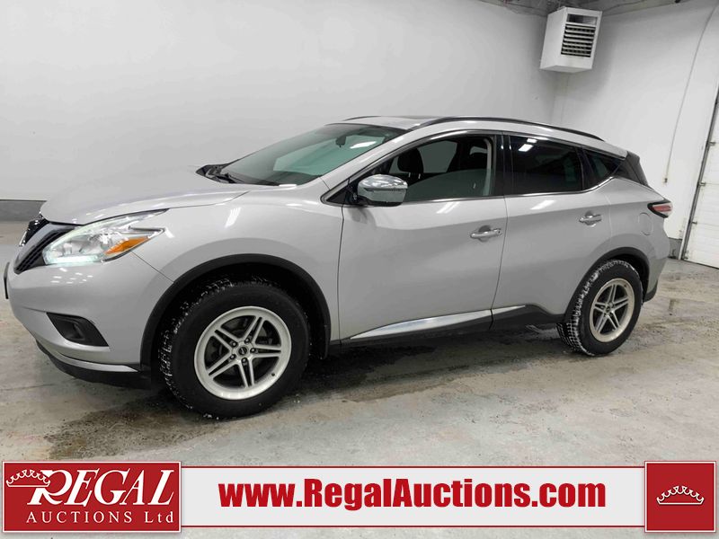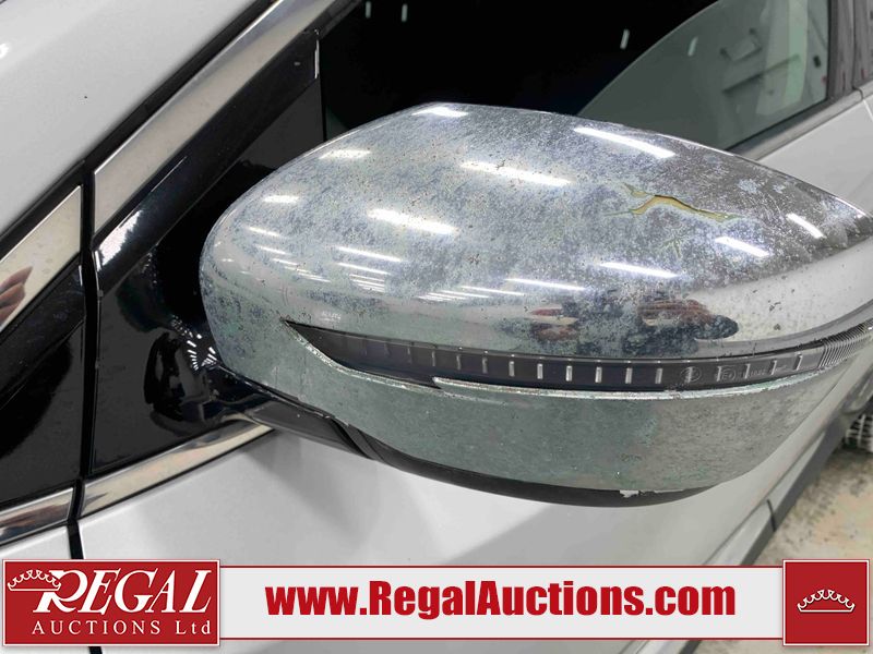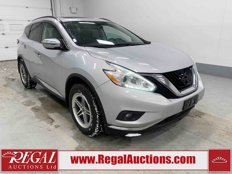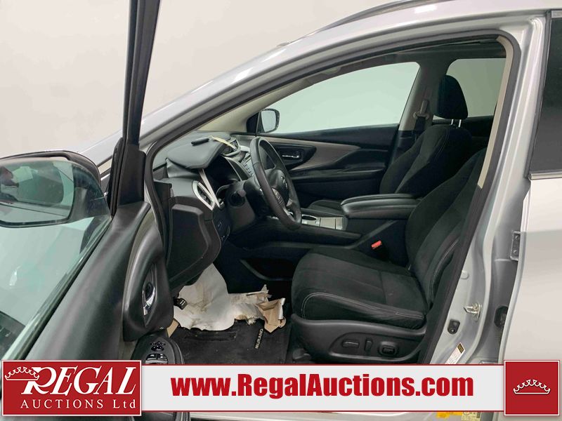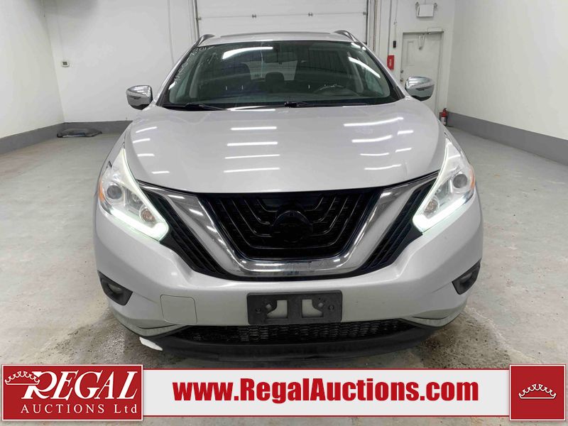 This 2017 NISSAN MURANO SV 4D UTILITY 4WD 3.5L is powered by a 6 cylinder gasoline engine and an automatic transmission. It is equipped with four wheel drive. The SUV has seats for 5 people. The SUV has high mileage for its age. The vehicle has high value options including a sunroof, power seats, heated seats, navigation, a backup camera, and a power lift gate. The body looks to be in fair condition overall. There are chips on the front bumper, grille, hood, left front fender, left front door, rear bumper, right rear fender, and right front fender. There are scratches on the front bumper, hood, rear bumper, and right rear fender. The grille has parts missing. There is minor paint peeling on the roof. There are very minor chips in many areas around the body. There are very minor scratches in many areas around the body. There is very minor dent damage on the right rear door. The interior looks to be in fair condition overall. There are a fair amount of cigarette burns on the driver's seat and passenger seat. The carpet is dirty. The windshield is damaged. The driver side mirror housing is broken. The passenger side mirror housing is broken. All of the tires have lots of tread remaining. Aftermarket alloy rims with tires have been mounted, the factory alloys are missing.