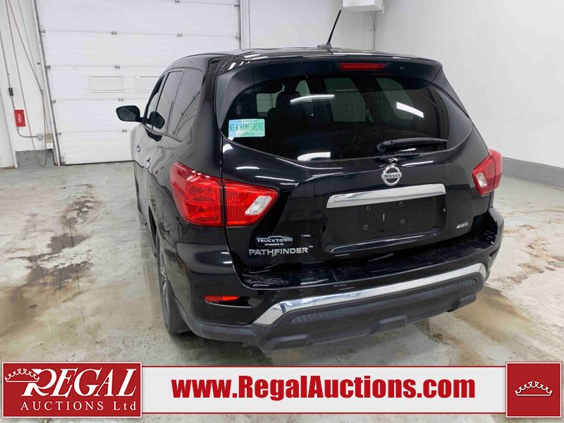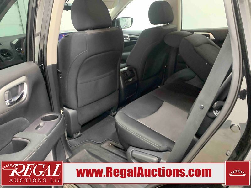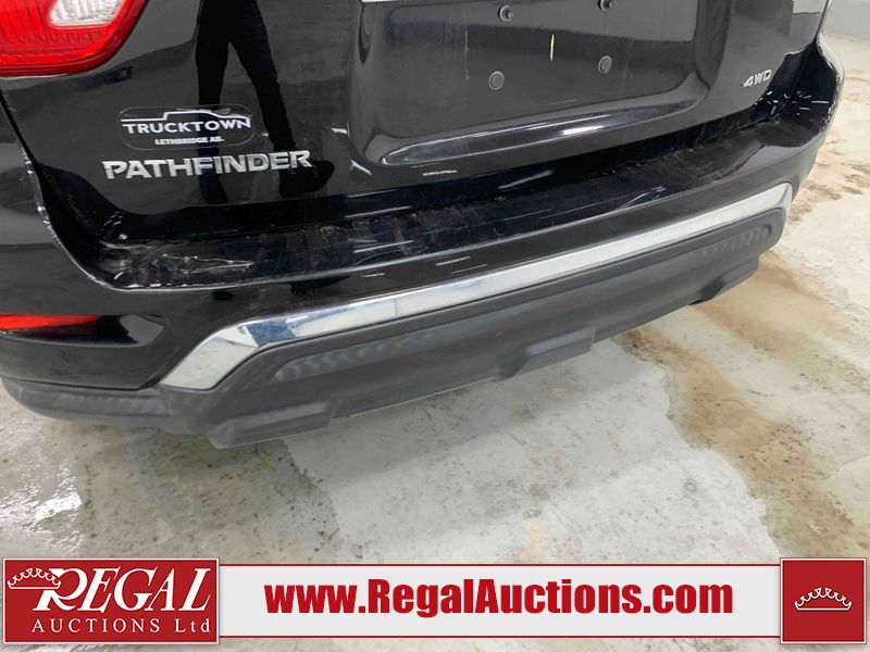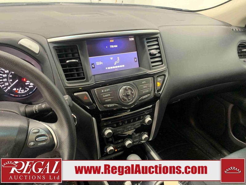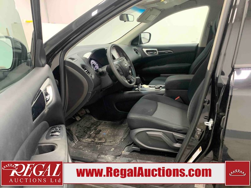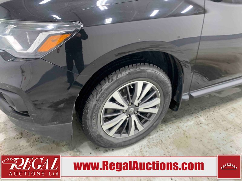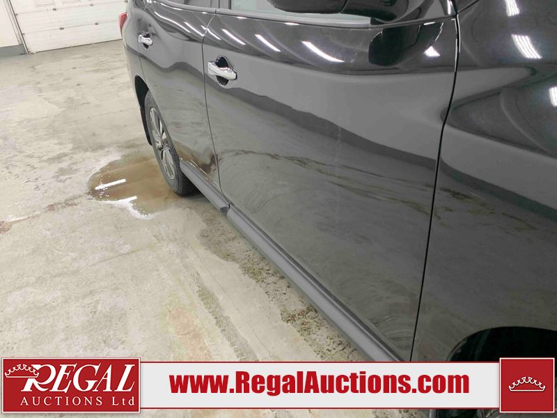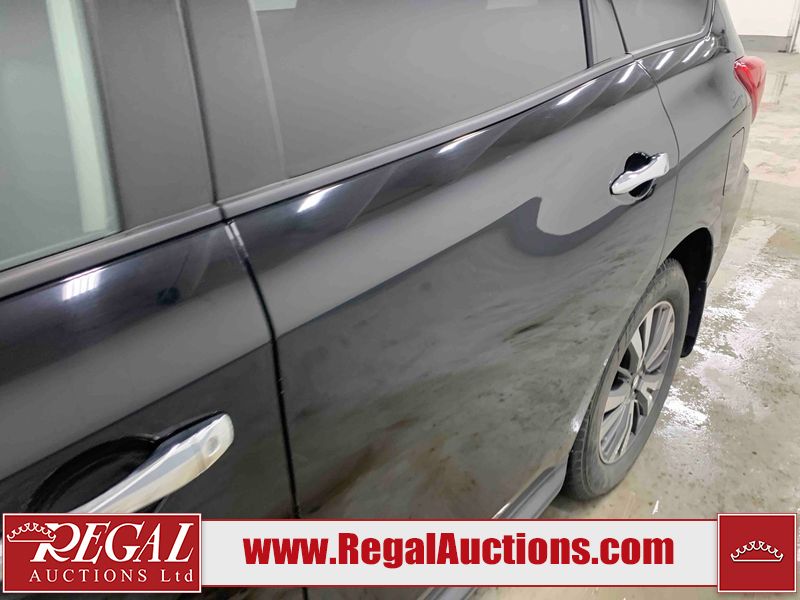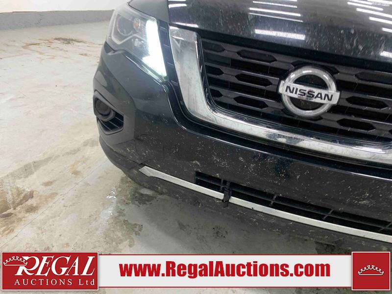 This 2017 NISSAN PATHFINDER S 4D UTILITY 4WD 3.5L is powered by a 6 cylinder gasoline engine and an automatic transmission. It is equipped with four wheel drive. The SUV has seats for 7 people. The SUV has low mileage for its age. The vehicle has high value options including power seats and a backup camera. The body looks to be in fair condition overall. There are chips on the front bumper, hood, roof, left front fender, left rear door, rear bumper, rear door, and right rear door. There are scratches on the front bumper, hood, left rear door, and rear bumper. There are very minor chips in many areas around the body. There are very minor scratches in many areas around the body. The interior looks to be in fair condition overall. The driver's seat and passenger seat are stained. The carpet is dirty. The windshield is cracked. All of the tires have lots of tread remaining.