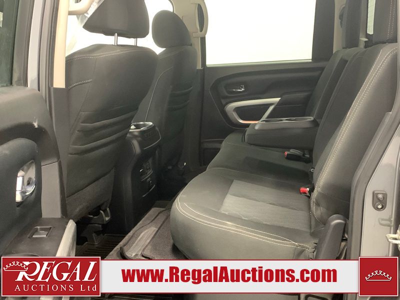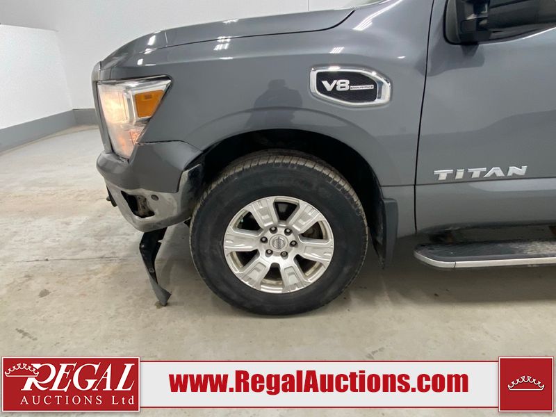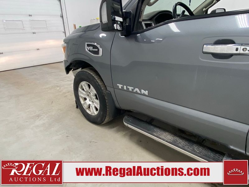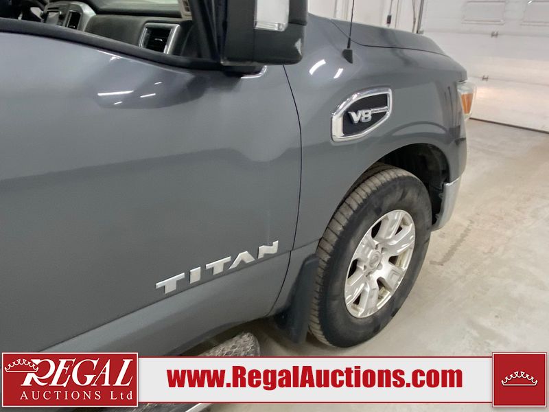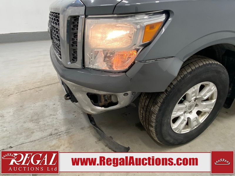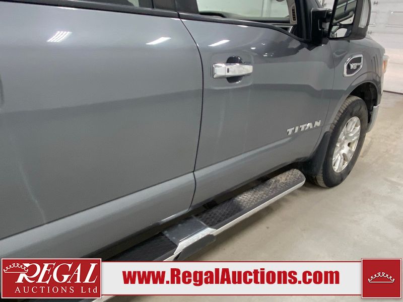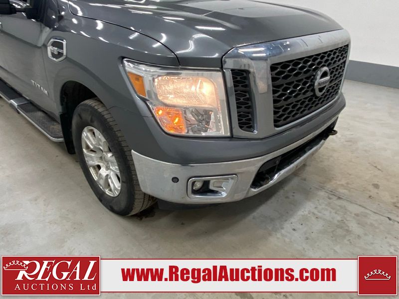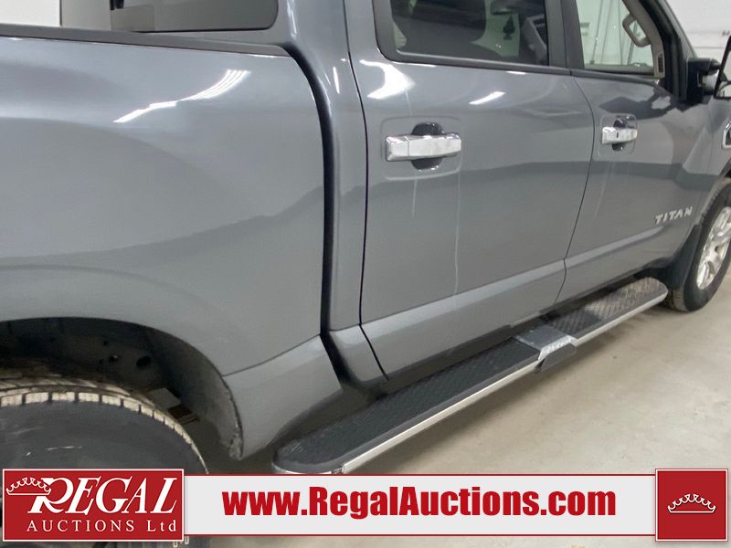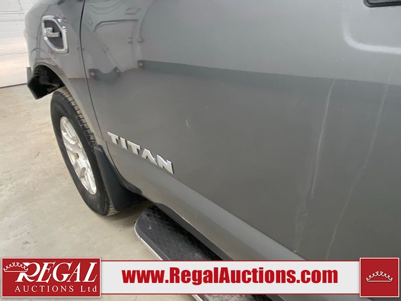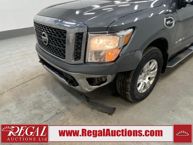 This 2017 NISSAN TITAN SV CREW CAB SWB 4WD 5.6L is powered by a 8 cylinder gasoline engine and an automatic transmission. It is equipped with four wheel drive. The SUV has seats for 5 people. The mileage is average considering the SUV's age. The vehicle has high value options including power seats, heated seats, navigation, and a backup camera. There may be possible frame damage to the unit. The body looks to be in rough condition overall. The front bumper is cracked. There is fascia misaligned damage to the front bumper. There is severe dent damage on the front bumper. There is extensive hail on the roof. The right rear fender has been repainted poorly. There is conspicuous hail on the hood and left rear fender. There are slight chips on the grille, hood, roof, rear bumper, rear door, right rear fender, and right front fender. There is dent damage on the left front fender and left front door. There are slight scratches on the left front door, left rear fender, rear door, right rear fender, right rear door, and right front door. There are very minor scratches in many areas around the body. There are very minor chips in many areas around the body. There is very minor dent damage on the left rear door. The interior looks to be in fair condition overall. The driver's seat, passenger seat, and rear seats are stained. The dashboard and doors are dirty. The carpet is dirty. The windshield is cracked. The passenger side front tire and the driver's side rear tire are both worn. The other tires have lots of tread remaining. The right rear tire has a steel rim mounted, the factory alloy is missing.
