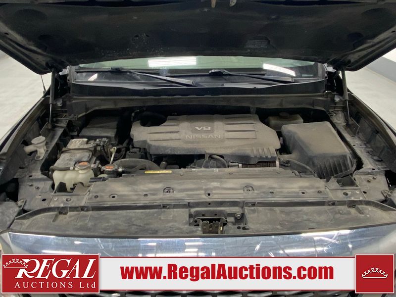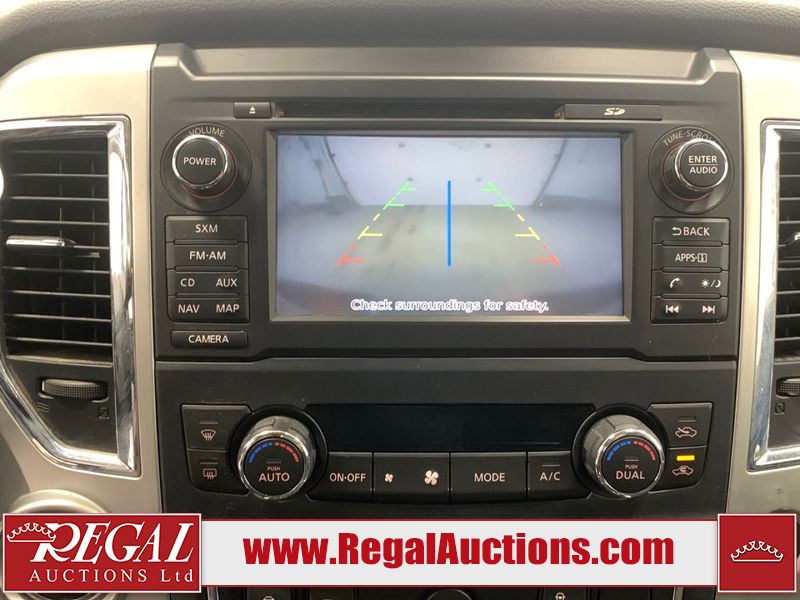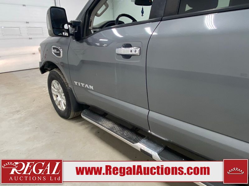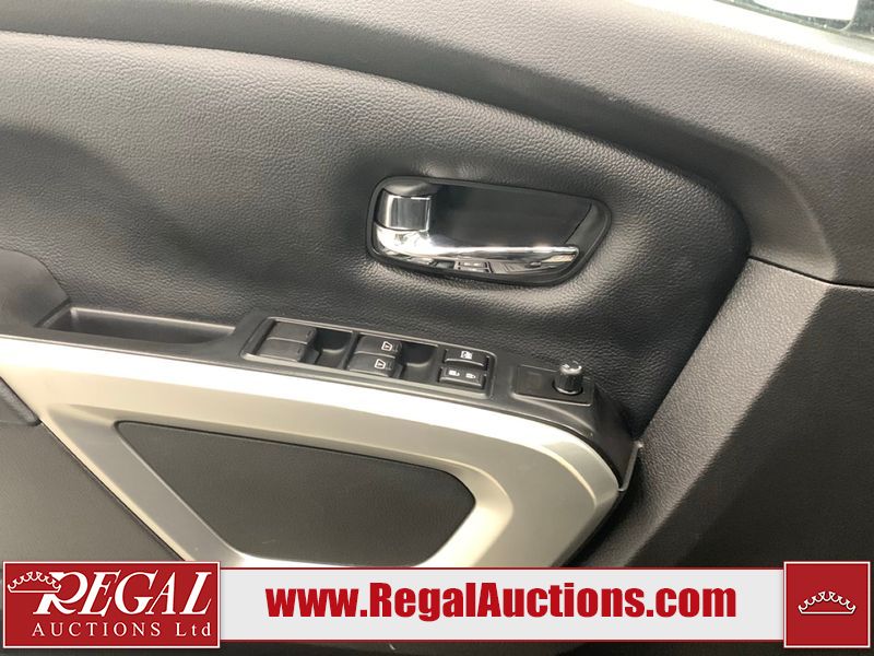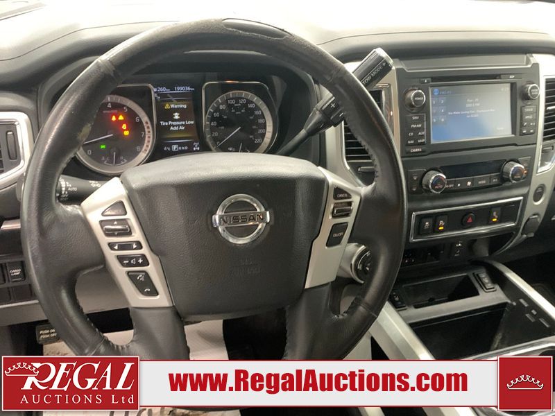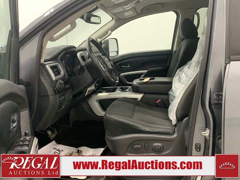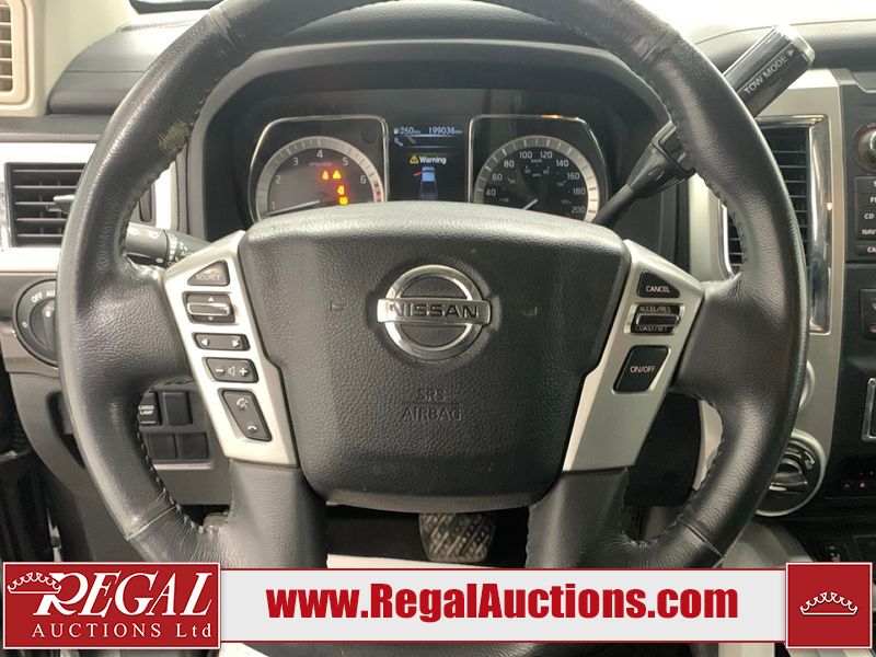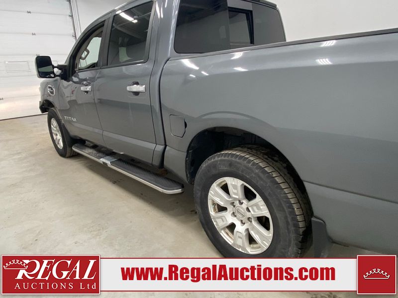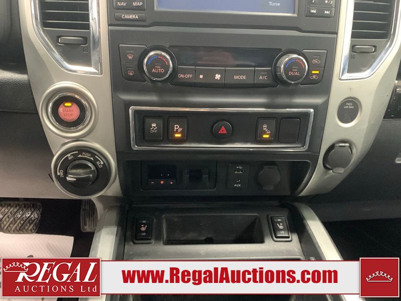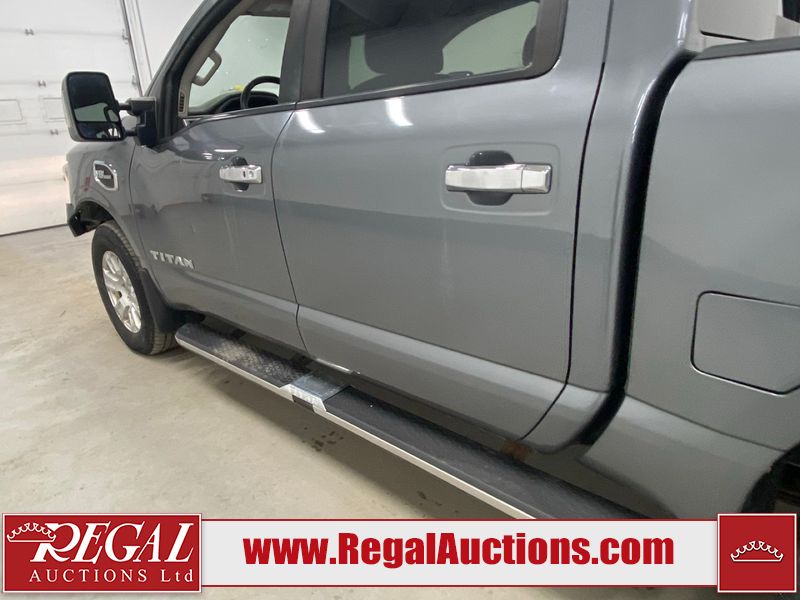 This 2017 NISSAN TITAN SV CREW CAB SWB 4WD 5.6L is powered by a 8 cylinder gasoline engine and an automatic transmission. It is equipped with four wheel drive. The SUV has seats for 5 people. The mileage is average considering the SUV's age. The vehicle has high value options including power seats, heated seats, navigation, and a backup camera. There may be possible frame damage to the unit. The body looks to be in rough condition overall. The front bumper is cracked. There is fascia misaligned damage to the front bumper. There is severe dent damage on the front bumper. There is extensive hail on the roof. The right rear fender has been repainted poorly. There is conspicuous hail on the hood and left rear fender. There are slight chips on the grille, hood, roof, rear bumper, rear door, right rear fender, and right front fender. There is dent damage on the left front fender and left front door. There are slight scratches on the left front door, left rear fender, rear door, right rear fender, right rear door, and right front door. There are very minor scratches in many areas around the body. There are very minor chips in many areas around the body. There is very minor dent damage on the left rear door. The interior looks to be in fair condition overall. The driver's seat, passenger seat, and rear seats are stained. The dashboard and doors are dirty. The carpet is dirty. The windshield is cracked. The passenger side front tire and the driver's side rear tire are both worn. The other tires have lots of tread remaining. The right rear tire has a steel rim mounted, the factory alloy is missing.