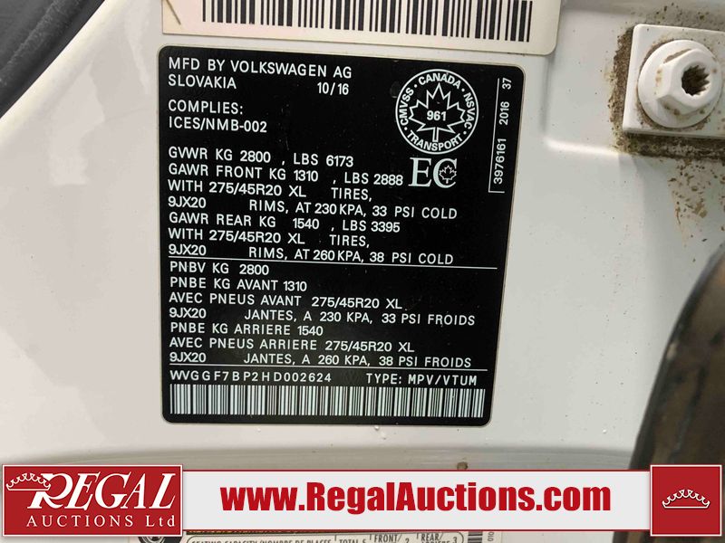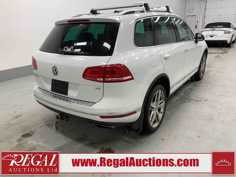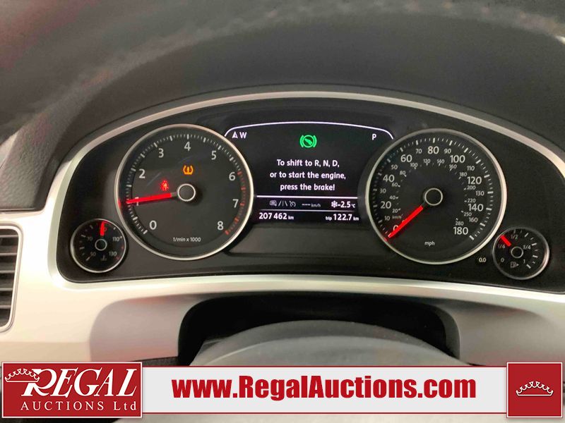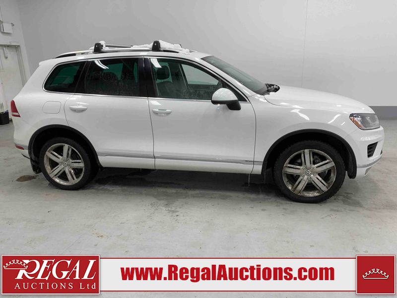 This 2017 VOLKSWAGEN TOUAREG 4D UTILITY is powered by a 280HP 3.6L 6CYL GAS 6 cylinder gasoline engine and an automatic transmission. The SUV has seats for 5 people. The SUV has high mileage for its age. The vehicle has high-value options including a sunroof, leather upholstery, power seats, heated seats, navigation, and a power lift gate. The body looks to be in good condition overall. There are slight chips on the front bumper, hood, and left front fender. There are minor scratches on the rear bumper. There is slight rust on the right rear fender. There are very minor scratches in many areas around the body. There are very minor chips in many areas around the body. The interior looks to be in good condition overall. The windshield looks to be in good condition. All of the tires have lots of tread remaining. This SUV is being sold by an automotive broker. The vehicle will be sold with the following declarations: Claims Total $3000 - $4999 (See Footnote 1) and Out of Province - BC (See Footnote 2). Footnotes: 1) The vehicle's total recorded insurance claims history is between $3,000 - $4,999. This is the amount of money that was paid out by an insurance company for repairs to cover claims against the vehicle's insurance policy. This information is provided by CarFax. 2) The vehicle's last registered jurisdiction is British Columbia. The purchaser must have the vehicle undergo and pass an Out of Province inspection before it can be registered in Alberta. Regal Auctions Ltd. makes no guarantee or warranty, either express or implied, with respect to the data provided in this report. The information has been provided from the consignor and from sources generally believed to be reliable, however the accuracy of this information cannot be guaranteed by Regal Auctions.