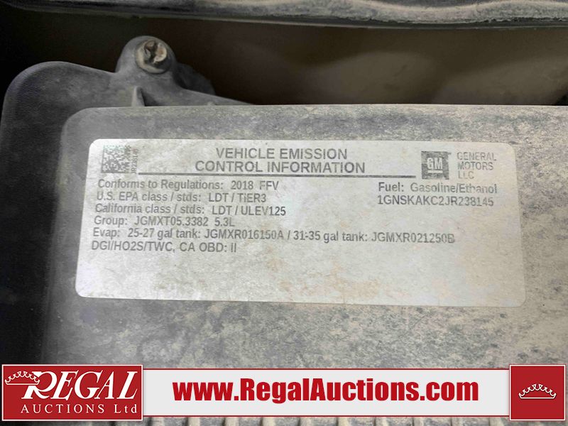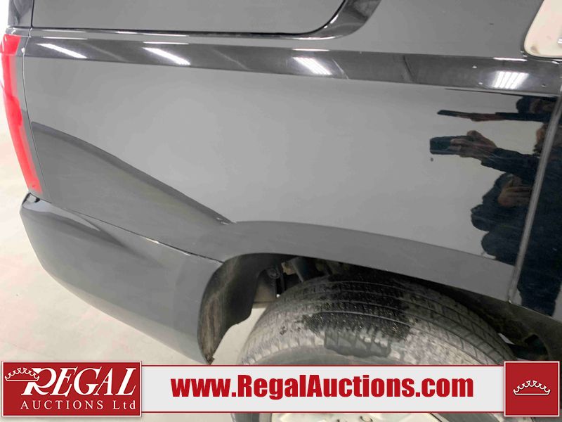 This 2018 CHEVROLET TAHOE LS 4D UTILITY 4WD 5.3L is powered by a 8 cylinder gasoline engine and an automatic transmission. It is equipped with four wheel drive. The SUV has seats for 8 people. The mileage is average considering the SUV's age. The vehicle has high value options including power seats and a backup camera. The body looks to be in rough condition overall. The fascia is cracked on the front bumper. There is some hail on the hood, roof, left rear fender, right front door, and right front fender. There are chips on the front bumper, hood, left front fender, left front door, left rear fender, rear bumper, rear door, right rear fender, right rear door, right front door, and right front fender. There are slight scratches on the front bumper, hood, left front door, left rear door, rear bumper, rear door, right rear fender, and right rear door. There is minimal dent damage on the rear door and right rear door. There are very minor chips in a few areas around the body. There is very minor dent damage in some areas around the body. There are very minor scratches in some areas around the body. The interior looks to be in rough condition overall. The driver's seat is torn. The driver's seat and passenger seat are stained. There are some cigarette burns on the rear seats. The dashboard, driver's seat, passenger seat, rear seats, and doors are dirty. The carpet is dirty. The windshield is cracked. Both rear tires and the driver's side front tire are nearly bald and should be replaced.