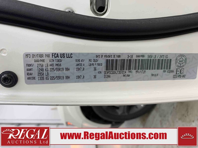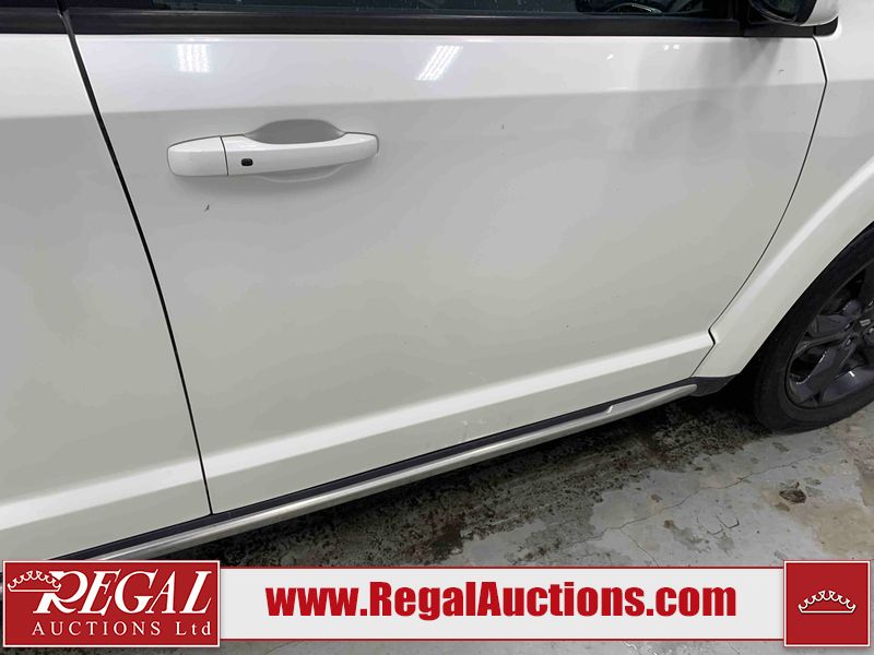 This 2018 DODGE JOURNEY CROSSROAD 4D UTILITY FWD 3.6L is powered by a 6 cylinder gasoline engine and an automatic transmission. It is a two wheel drive model. The SUV has seats for 7 people. The SUV has low mileage for its age. The vehicle has high value options including a sunroof, leather upholstery, power seats, heated seats, a DVD Player, navigation, and a backup camera. The entertainment screen is cracked and inoperable. The body looks to be in fair condition overall. There is misaligned damage to the front bumper. There are minor chips on the front bumper, grille, hood, roof, left front door, left rear door, rear bumper, and right front fender. There are scratches on the front bumper. There is slight paint peeling on the left front door. There are very minor scratches in many areas around the body. There are very minor chips in many areas around the body. The interior looks to be in fair condition overall. The driver's seat and passenger seat are worn. The rear seats are stained. The carpet is dirty. The windshield is cracked. The passenger side front tire is nearly bald and should be replaced. The rest of the tires are all worn.