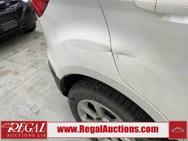 This 2018 FORD ECOSPORT SE 4D UTILITY FWD 1.0L is powered by a 3 cylinder gasoline engine and an automatic transmission. It is a two wheel drive model. The SUV has seats for 5 people. The SUV has low mileage for its age. The vehicle has high value options including a sunroof, power seats, heated seats, and a backup camera. The body looks to be in fair condition overall. There is some rust on the roof. There are chips on the front bumper, hood, roof, left rear door, left rear fender, rear bumper, and rear door. There are minor scratches on the front bumper, rear bumper, rear door, right rear fender, and right rear door. There is incidental dent damage on the right rear fender and right rear door. There are very minor chips in many areas around the body. There are very minor scratches in many areas around the body. There is scratches moderate damage to the driver mirror. The interior looks to be in good condition overall. The windshield is cracked. All of the tires have lots of tread remaining.