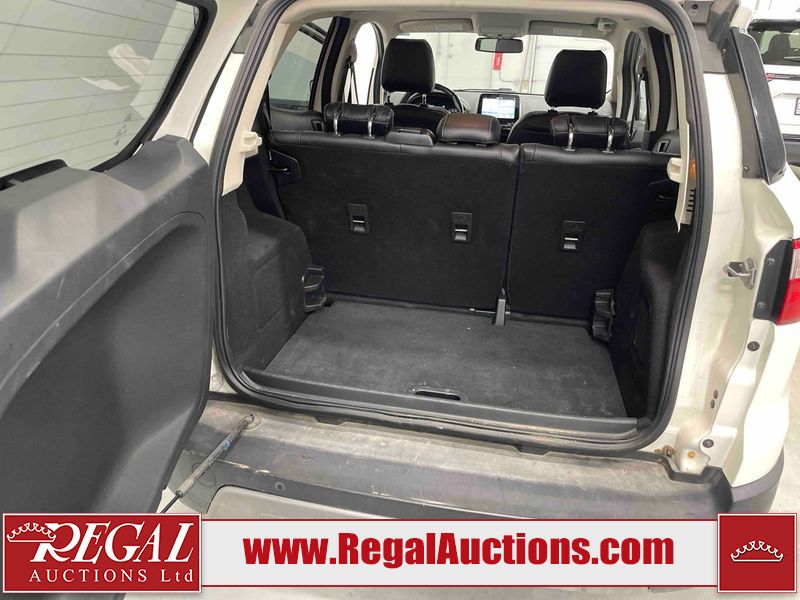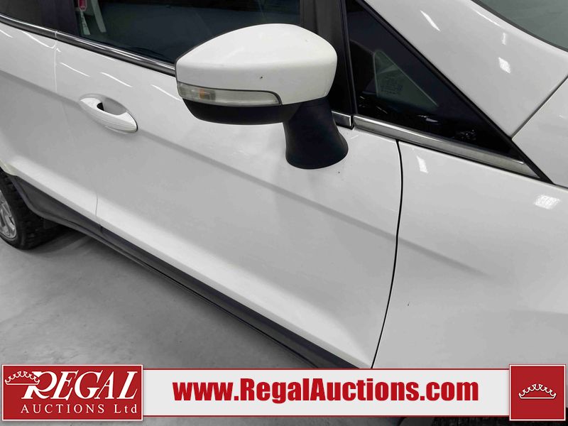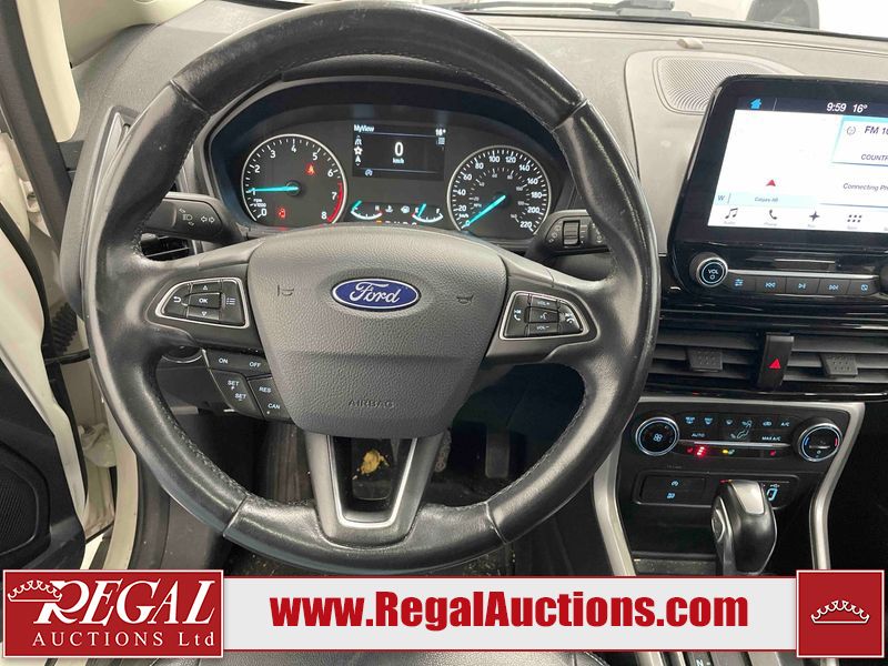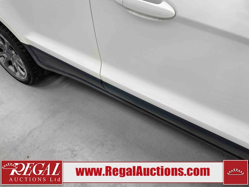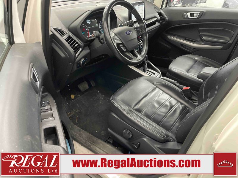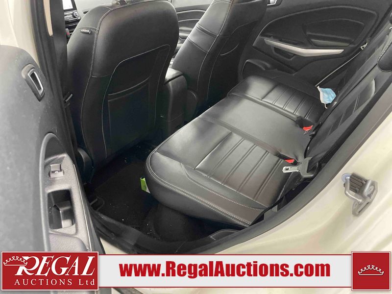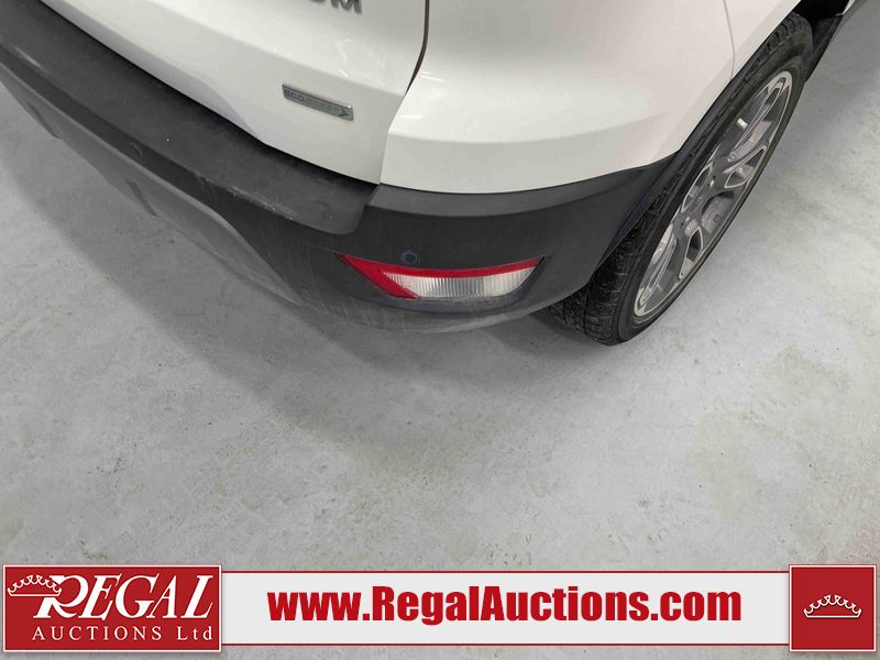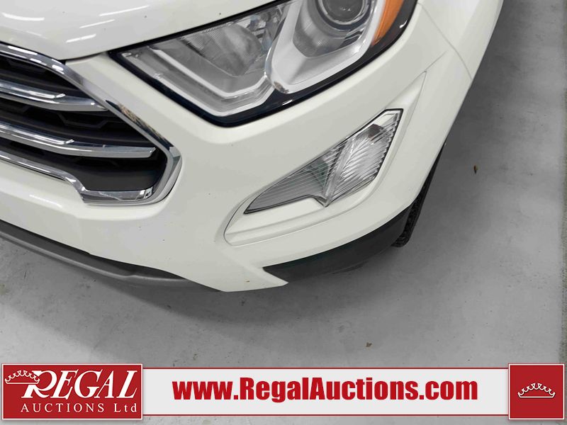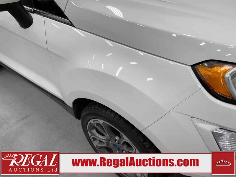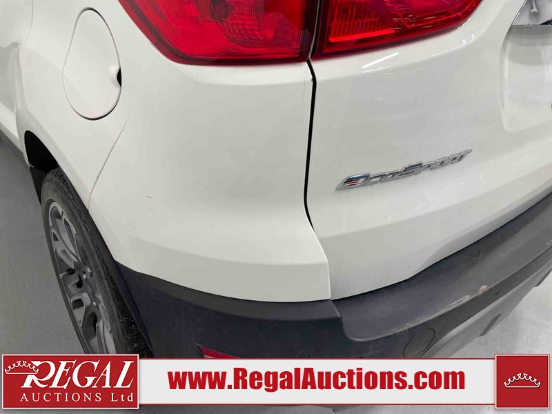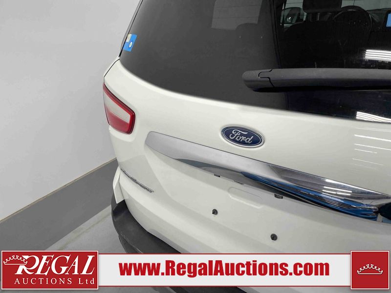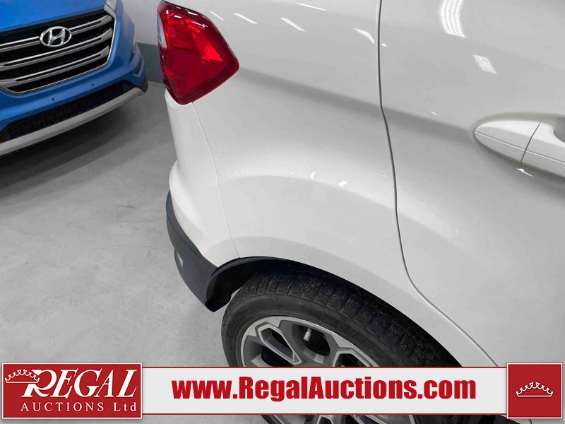 This 2018 FORD ECOSPORT TITANUM 4D UTILITY AWD 1.0L is powered by a turbocharged 3 cylinder gasoline engine and an automatic transmission. It is a two wheel drive model. The SUV has seats for 5 people. The SUV has low mileage for its age. The vehicle has high value options including a sunroof, leather upholstery, power seats, navigation, and a backup camera. The body looks to be in fair condition overall. The roof has been repainted poorly. There are minimal chips on the front bumper, hood, left rear fender, and rear bumper. There is paint peeling on the rear bumper. There are very minor scratches in many areas around the body. There are very minor chips in many areas around the body. The interior looks to be in good condition overall. The carpet is dirty. The windshield is chipped. All of the tires have lots of tread remaining.