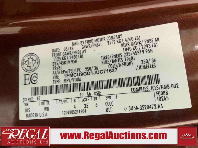 This 2018 FORD ESCAPE SE 4D UTILITY AWD 1.5L is powered by a turbocharged 4 cylinder gasoline engine and an automatic transmission. It is equipped with four wheel drive. The SUV has seats for 5 people. The mileage is average considering the SUV's age. The vehicle has high value options including leather upholstery, power seats, a backup camera, and a power lift gate. The body looks to be in fair condition overall. There are slight chips on the front bumper, hood, left front fender, left front door, left rear door, rear door, right rear fender, right rear door, and right front door. There are incidental scratches on the hood, left front door, left rear door, and rear door. There are very minor scratches in many areas around the body. There are very minor chips in many areas around the body. There is very minor dent damage on the left front door. The interior looks to be in fair condition overall. The driver's seat is worn. The carpet is dirty. The windshield looks to be in good condition. All of the tires have lots of tread remaining. There's another set of tires in the rear.