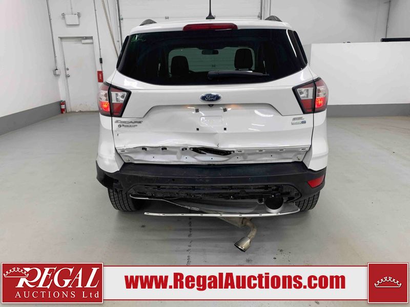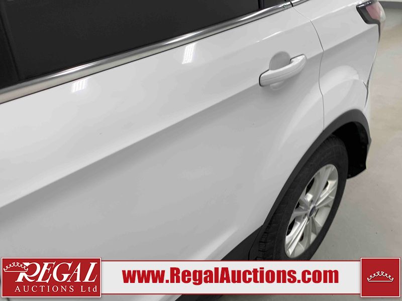 This 2018 FORD ESCAPE SEL 4D UTILITY 4WD 1.5L is powered by a 4 cylinder gasoline engine and an automatic transmission. It is equipped with four wheel drive. The SUV has seats for 5 people. The mileage is average considering the SUV's age. The vehicle has high value options including a sunroof, leather upholstery, power seats, heated seats, navigation, and a backup camera. The vehicle has some mechanical problems. The suspension is broken. The body looks to be in rough condition overall. The front bumper and rear bumper are broken. There are considerable scratches on the rear bumper. There is severe dent damage on the rear door. There is considerable paint peeling on the rear door. The grille is cracked. There is conspicuous hail on the hood, roof, left front door, left rear door, and left rear fender. There are moderate scratches on the rear door. There are chips on the front bumper. There are scratches on the front bumper, hood, roof, left front door, left rear door, left rear fender, right rear fender, right front door, and right front fender. There is minimal dent damage on the left front door, left rear door, right rear door, and right front door. There is incidental rust on the rear door. There are very minor chips in many areas around the body. There are very minor scratches in a few areas around the body. The interior looks to be in good condition overall. The windshield looks to be in good condition. All of the tires have lots of tread remaining. The exhaust is bent and will require repair. The left rear fender rubs the tire.