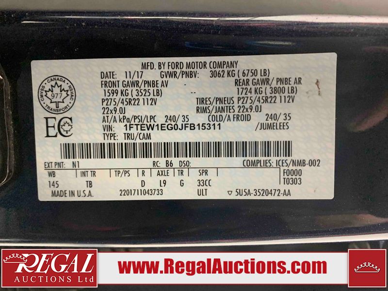 This 2018 FORD F-150 LIMITED SUPERCREW is powered by a turbocharged 3.5L V6 gasoline engine and an automatic transmission. It is equipped with four-wheel drive. The SUV has seats for 5 people. The SUV has high mileage for its age. LIMITED is a very popular trim level. The vehicle has high-value options including leather upholstery, power seats, heated seats, navigation, and a backup camera. The Tire Pressure light is on. The vehicle has some mechanical problems. *TRANSMISSION NOISE* (See Footnote 1) The body looks to be in fair condition overall. There is a fair amount of rust on the front bumper. There are chips on the front bumper, hood, left front fender, left front door, left rear door, left rear fender, right rear fender, right front door, and right front fender. There are incidental scratches on the hood, left front fender, left rear fender, rear bumper, right rear fender, and right rear door. There are very minor chips in a few areas around the body. There are very minor scratches in some areas around the body. There is very minor dent damage on the right front door. The interior looks to be in good condition overall. The windshield is chipped. The windshield is cracked. The driver side mirror is broken. All of the tires have lots of tread remaining. This SUV is being sold by a franchise dealership. The vehicle will be sold with the following declarations: Dealership Trade-In (See Footnote 2) and Mechanical Problems (See Footnote 1). Footnotes: 1) We've identified some mechanical problems with the vehicle. However, the vehicle has not undergone a mechanical inspection and our findings are not to be considered a complete evaluation of the vehicle's mechanical condition. Review our Buyer Protection Policy to see how Regal Auctions protects you from undisclosed mechanical problems. 2) This vehicle is being sold on behalf of a franchise dealership. Franchise Dealerships are automotive sales companies who are directly connected to an automotive manufacturer like Ford, Tesla, Honda, BMW, or similar. Regal Auctions Ltd. makes no guarantee or warranty, either express or implied, with respect to the data provided in this report. The information has been provided from the consignor and from sources generally believed to be reliable, however the accuracy of this information cannot be guaranteed by Regal Auctions.