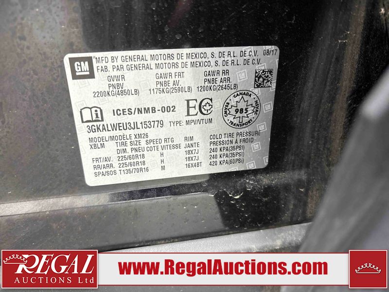 This 2018 GMC TERRAIN 4D SPORT UTILITY AWD is powered by a 1.6L 4-cylinder diesel engine and an automatic transmission. It is equipped with all-wheel drive. The SUV has seats for 5 people. The mileage is average considering the SUV's age. The vehicle has high-value options including leather upholstery, power seats, and a backup camera. The Tire Pressure and Maintenance lights are on. The body looks to be in fair condition overall. The hood, roof, left front fender, front right fender, and left front door have been repainted poorly. There is incidental rust on the roof. There are slight scratches on the rear bumper and right rear door. There are very minor chips in many areas around the body. There are very minor scratches in many areas around the body. There is very minor dent damage on the right rear fender. The fog lights are broken. The interior looks to be in good condition overall. The dashboard is torn. The windshield is chipped. All of the tires have lots of tread remaining. This SUV is being sold by an automotive broker. The vehicle will be sold with the following declarations: Claims Total Above $20,000 (See Footnote 2), Rebuilt Status (See Footnote 3), and Salvage Status (See Footnote 4). Footnotes: 1) We've identified some mechanical problems with the vehicle. However, the vehicle has not undergone a mechanical inspection and our findings are not to be considered a complete evaluation of the vehicle's mechanical condition. Review our Buyer Protection Policy to see how Regal Auctions protects you from undisclosed mechanical problems. 2) The vehicle's total recorded insurance claims history is above $20,000. This is the amount of money that was paid out by an insurance company for repairs to cover claims against the vehicle's insurance policy. This information is provided by CarFax. 3) This vehicle has been rebuilt from salvage. 4) This vehicle has been flagged a total loss. It cannot be registered until it undergoes and passes a salvage inspection. Regal Auctions Ltd. makes no guarantee or warranty, either express or implied, with respect to the data provided in this report. The information has been provided from the consignor and from sources generally believed to be reliable, however the accuracy of this information cannot be guaranteed by Regal Auctions.